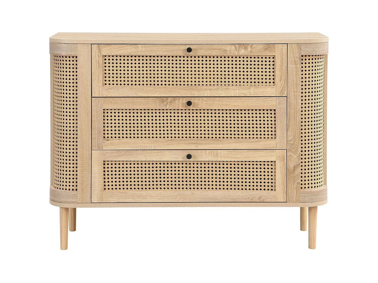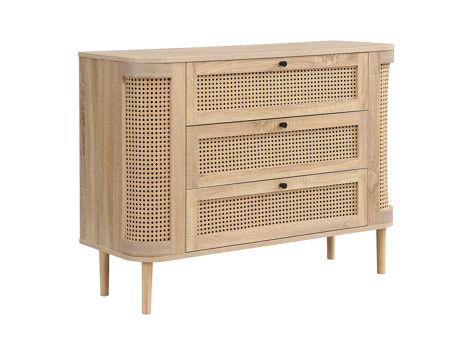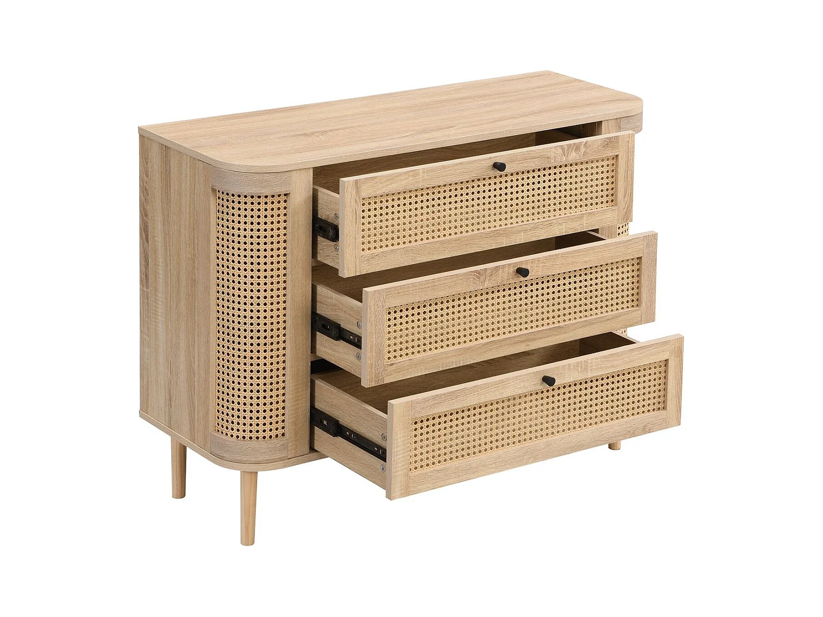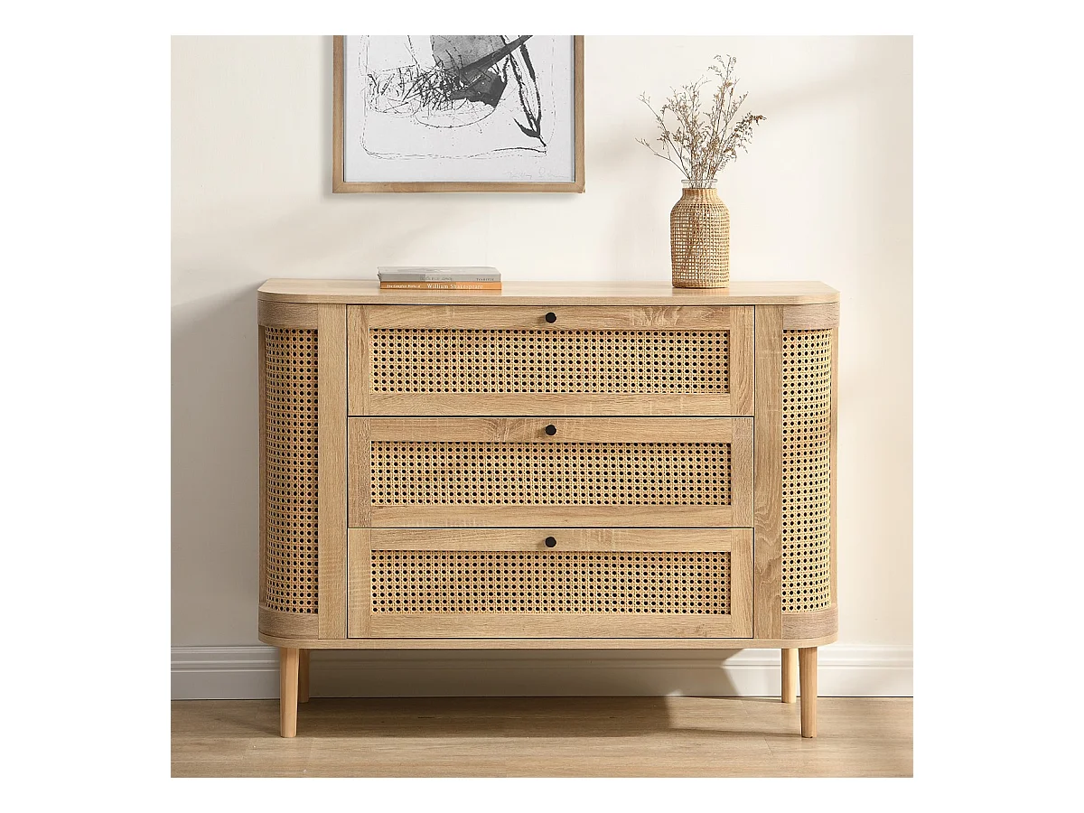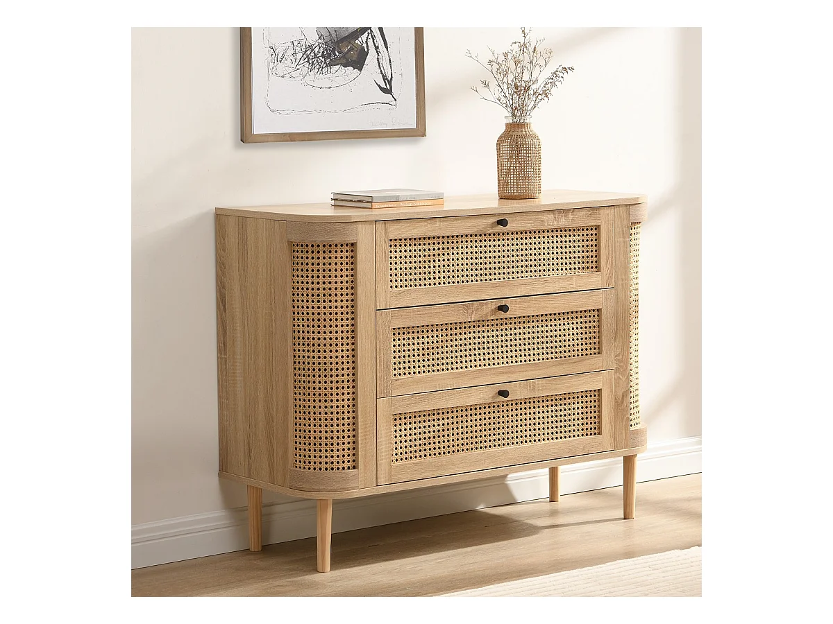 Commode 3 tiroirs couleur chêne et cannage 105 cm - Bali