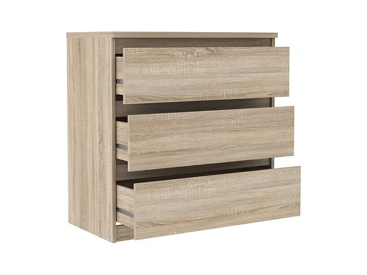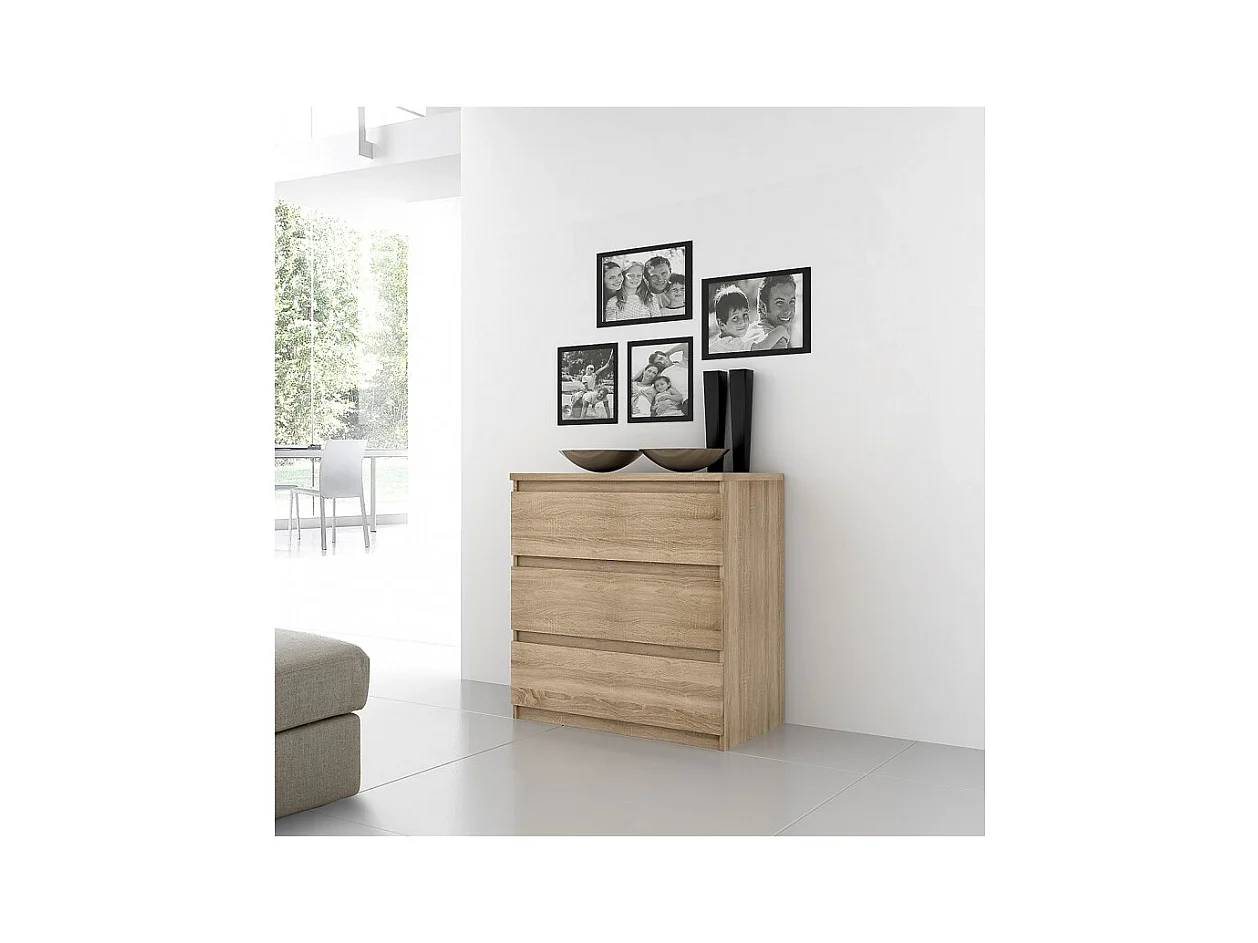 Commode 3 tiroirs décor chêne clair texturé - BENNY