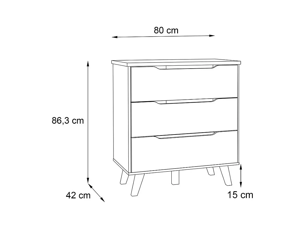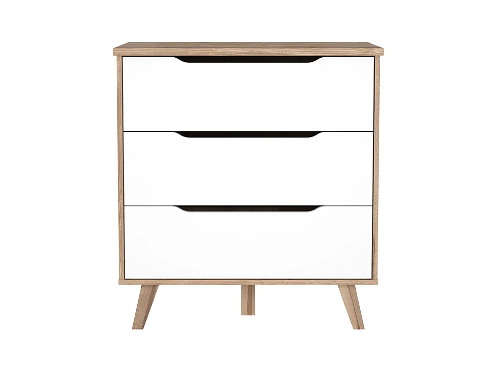 Commode 3 tiroirs décor chêne et blanc pieds bois massif - ALBANE