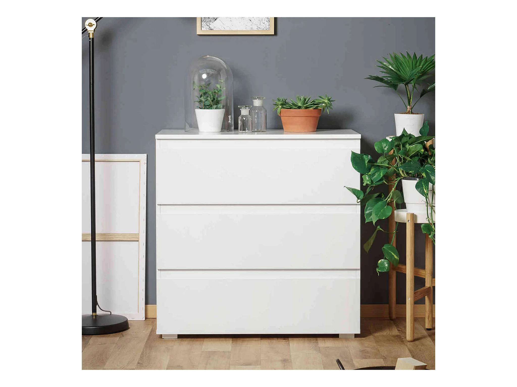 Commode 3 tiroirs en bois blanc - CO7017