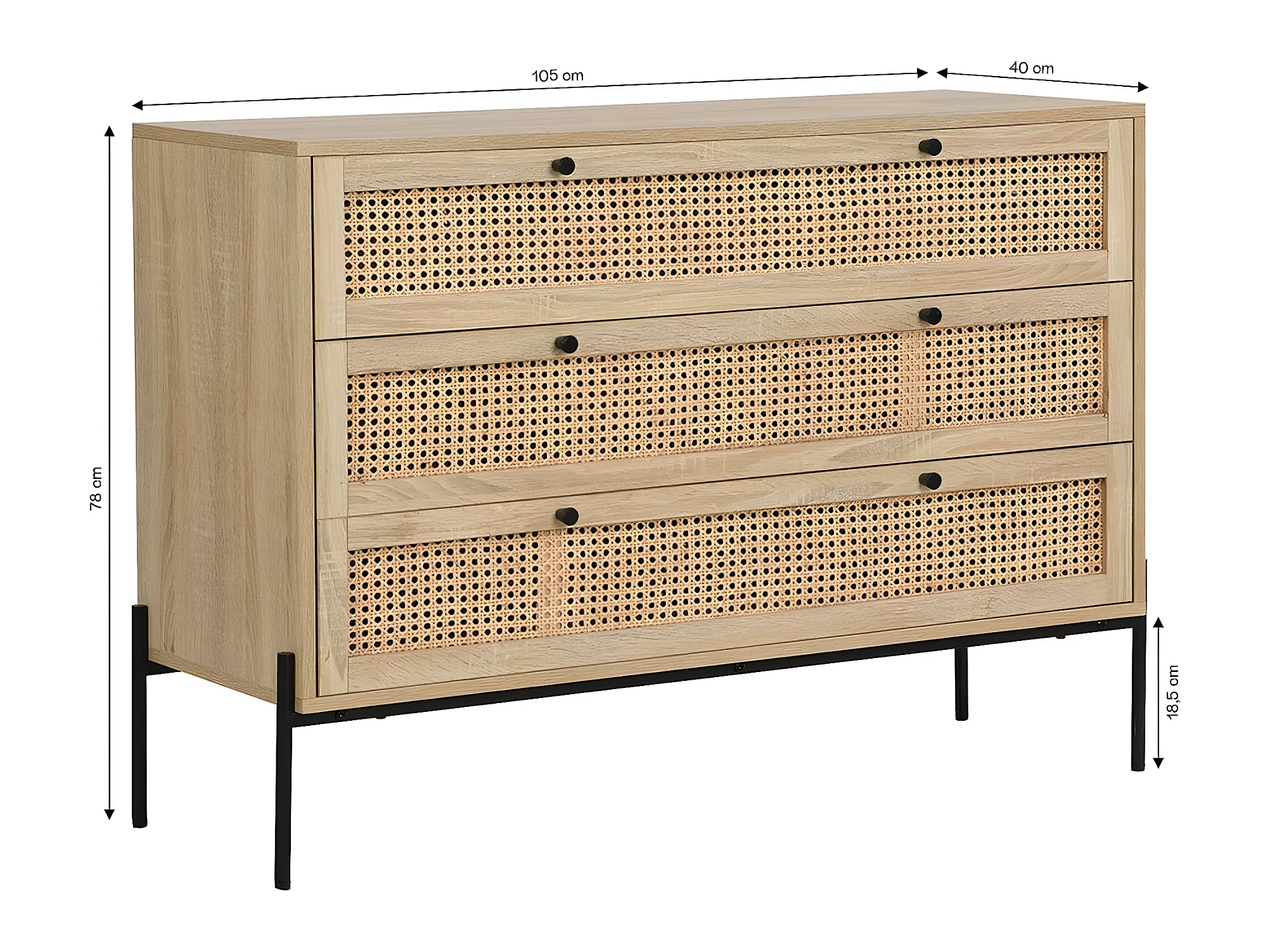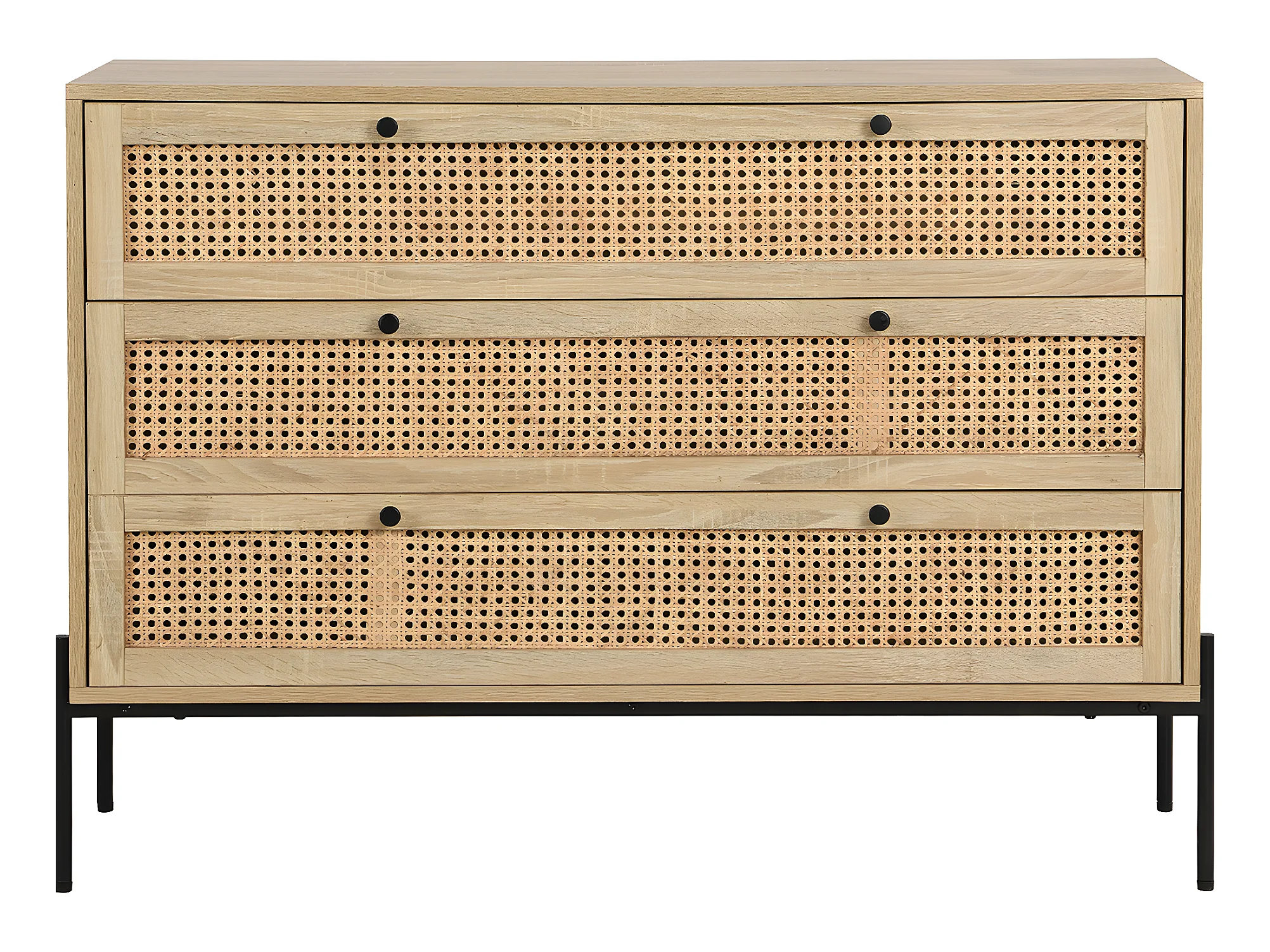 Commode 3 tiroirs en cannage naturel et effet chêne 105 cm - Iris