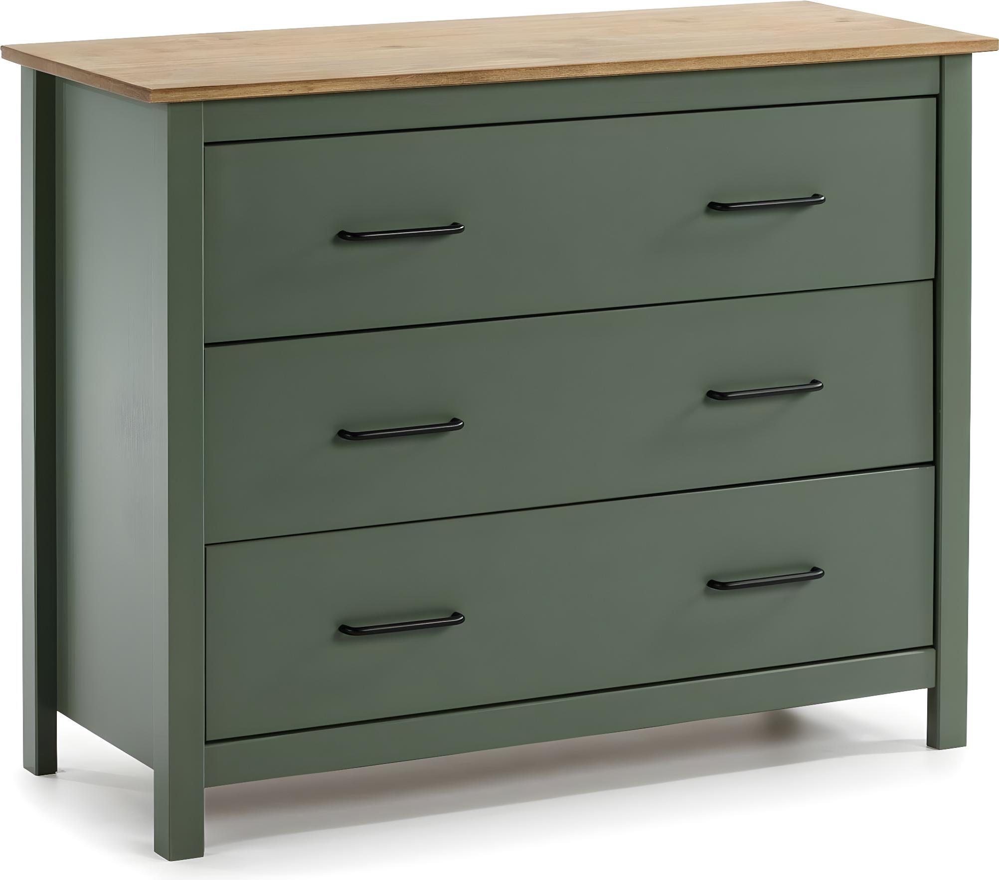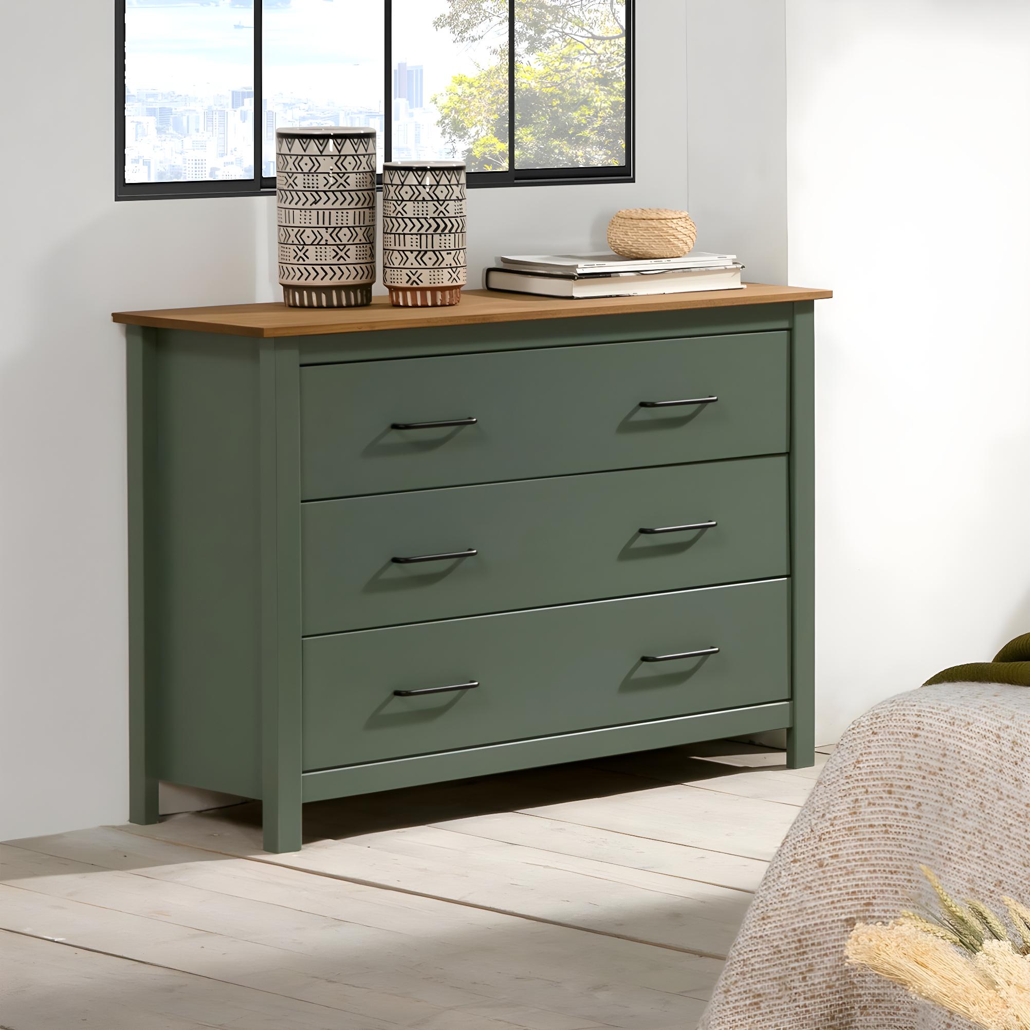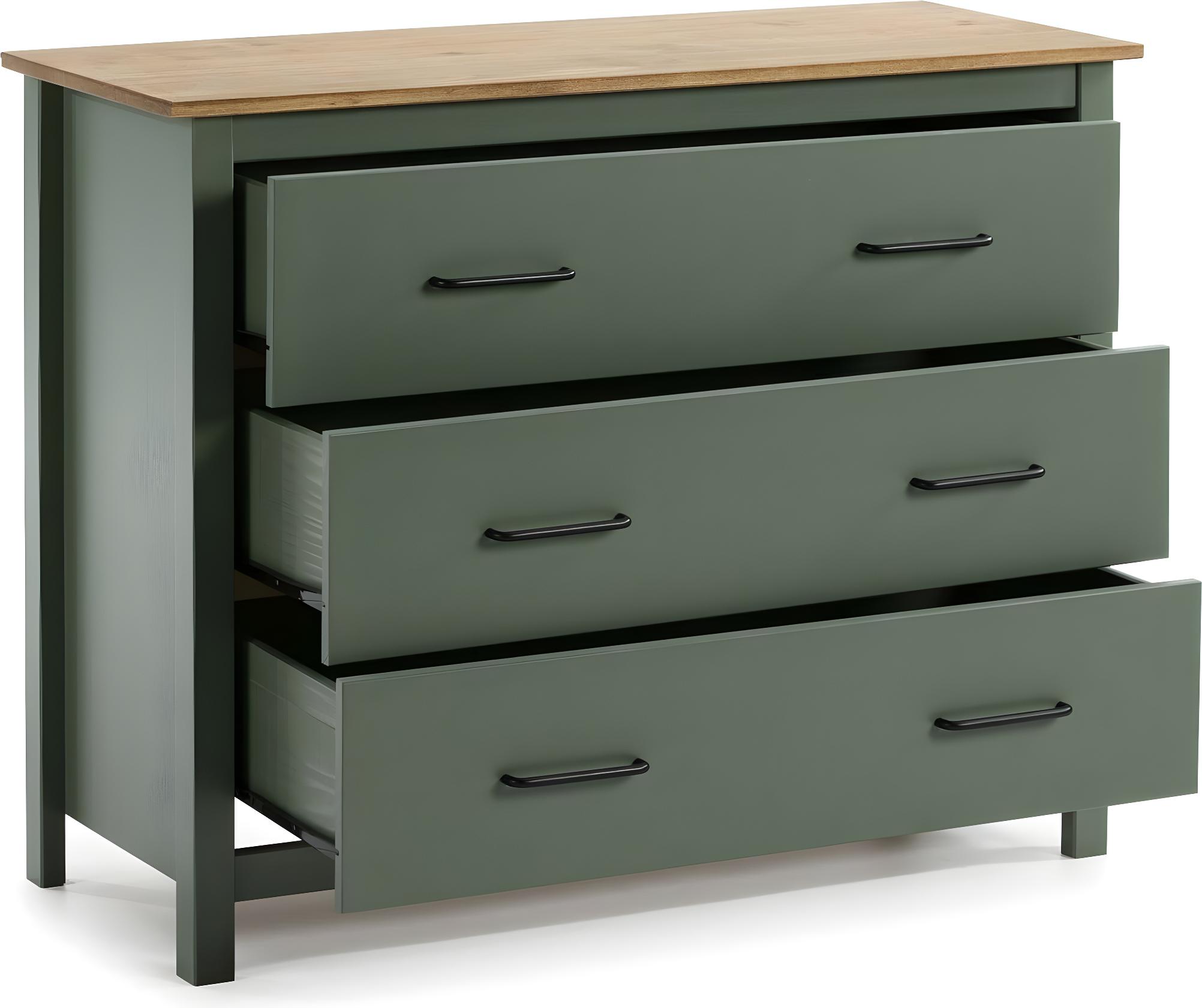 Commode 3 tiroirs en bois massif vert L100xH80 cm - Ida