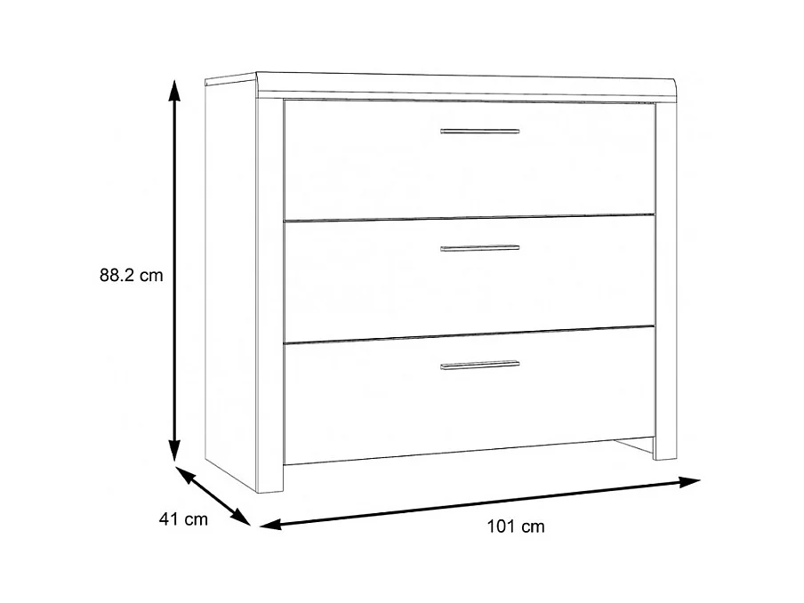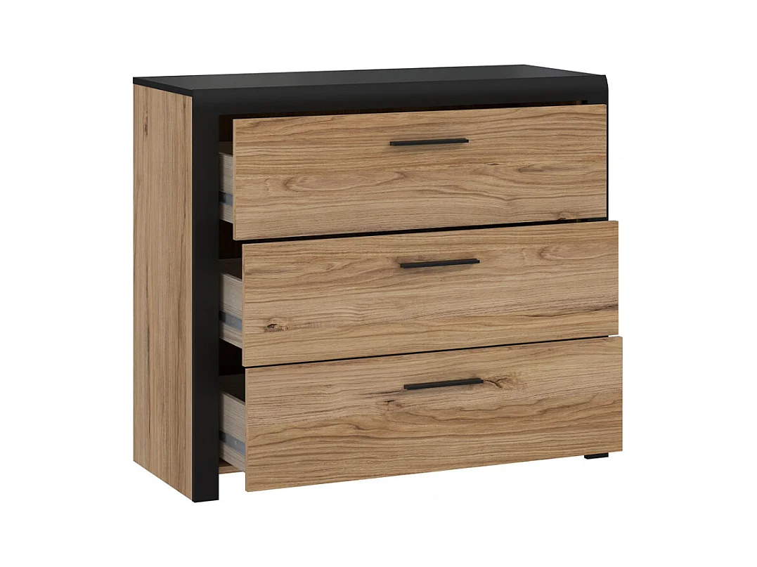 Commode 100 cm 3 tiroirs décor bois de chêne et noir - KAMILA