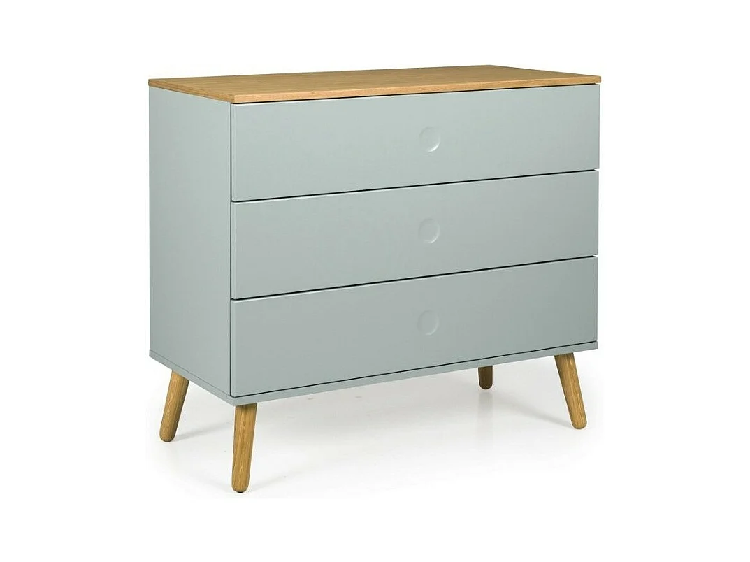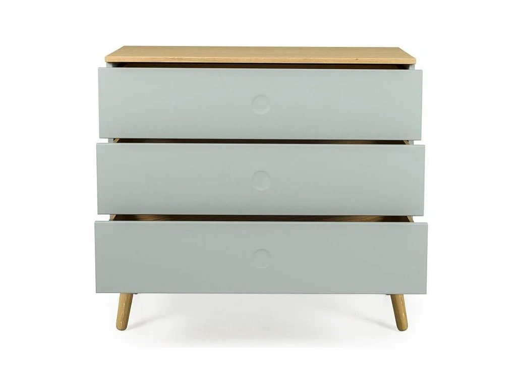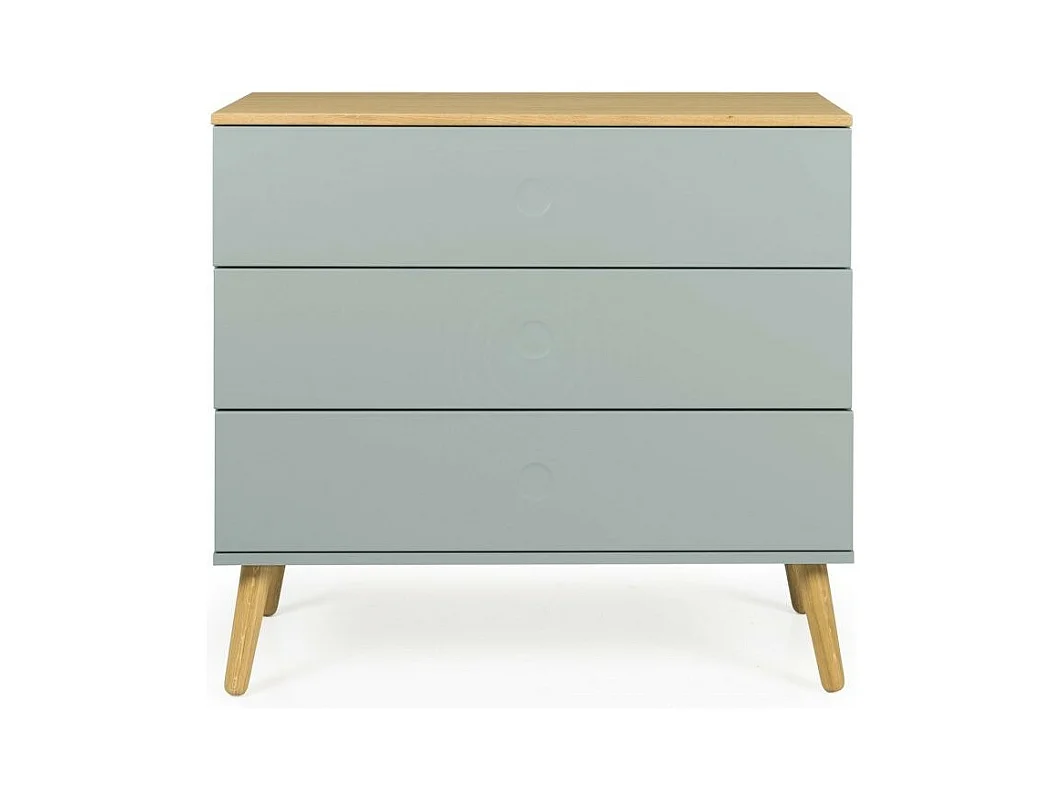 Commode 3 tiroirs laqué vert et pieds chêne massif clair Pecas