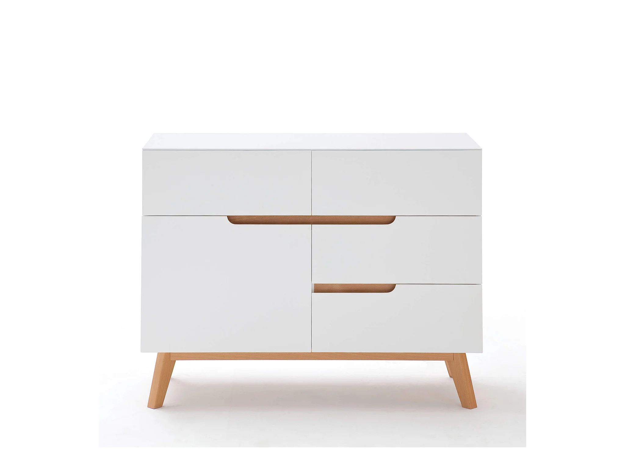 Commode 4 tiroirs 1 porte en bois blanc et chêne - CO16001-1