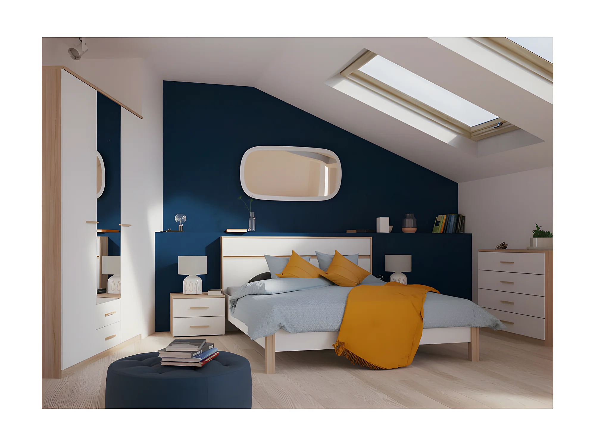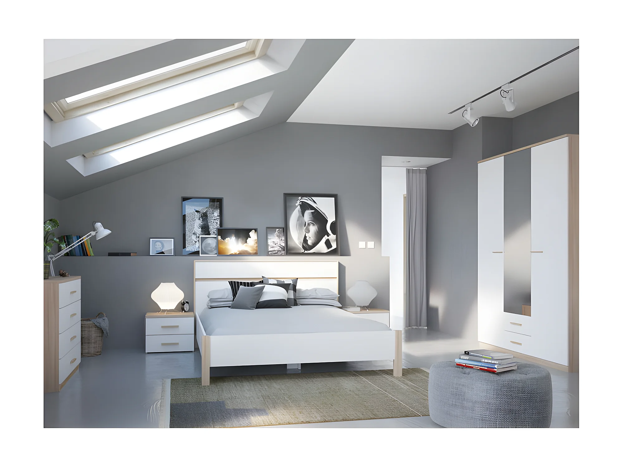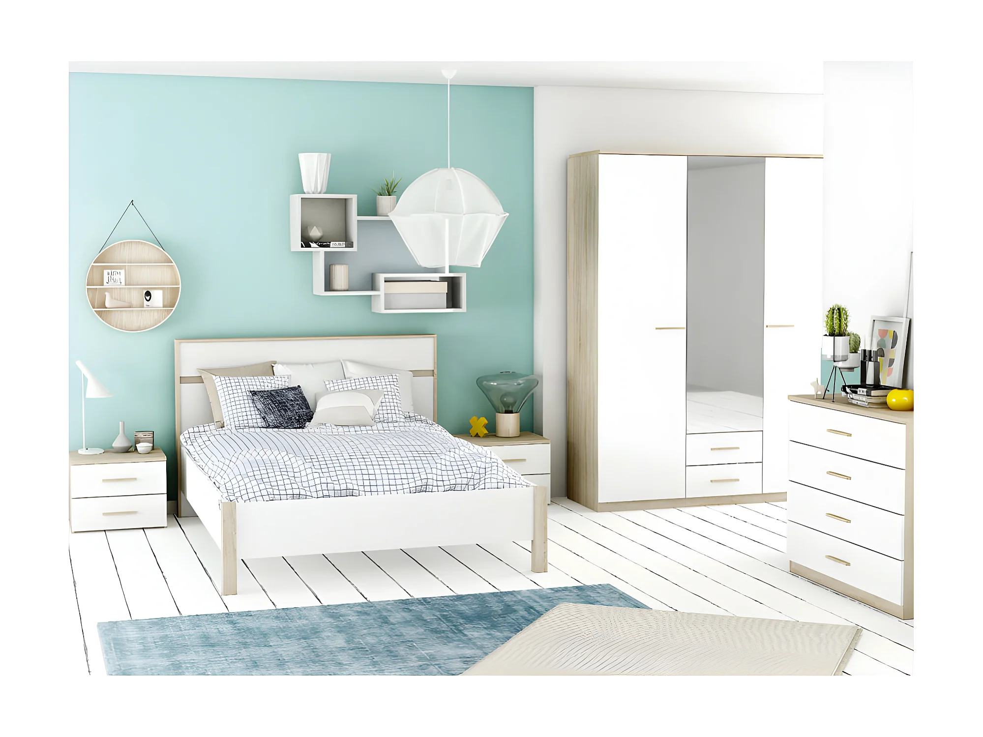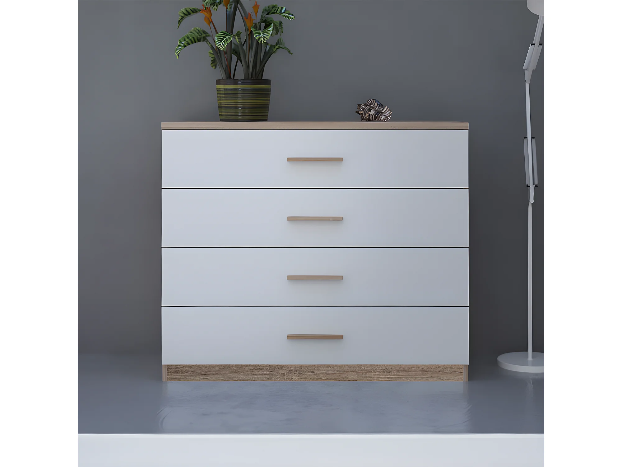 Commode 4 tiroirs Blanc/Chêne - STAYA - L 100 x l 42 x H 85 cm