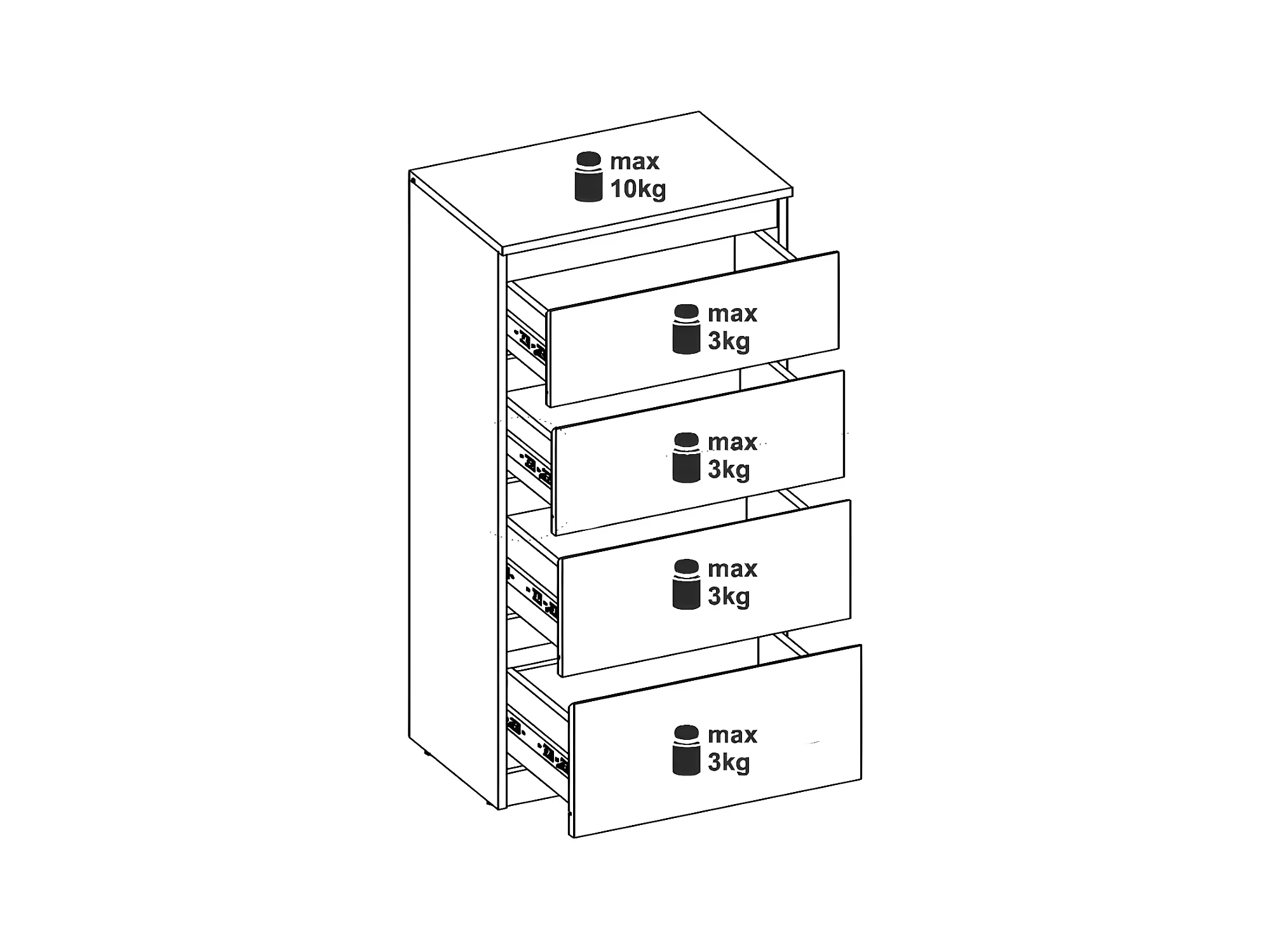 Commode 4 tiroirs Bois clair - QIZ - L 54.5 x l 35 x H 105 cm