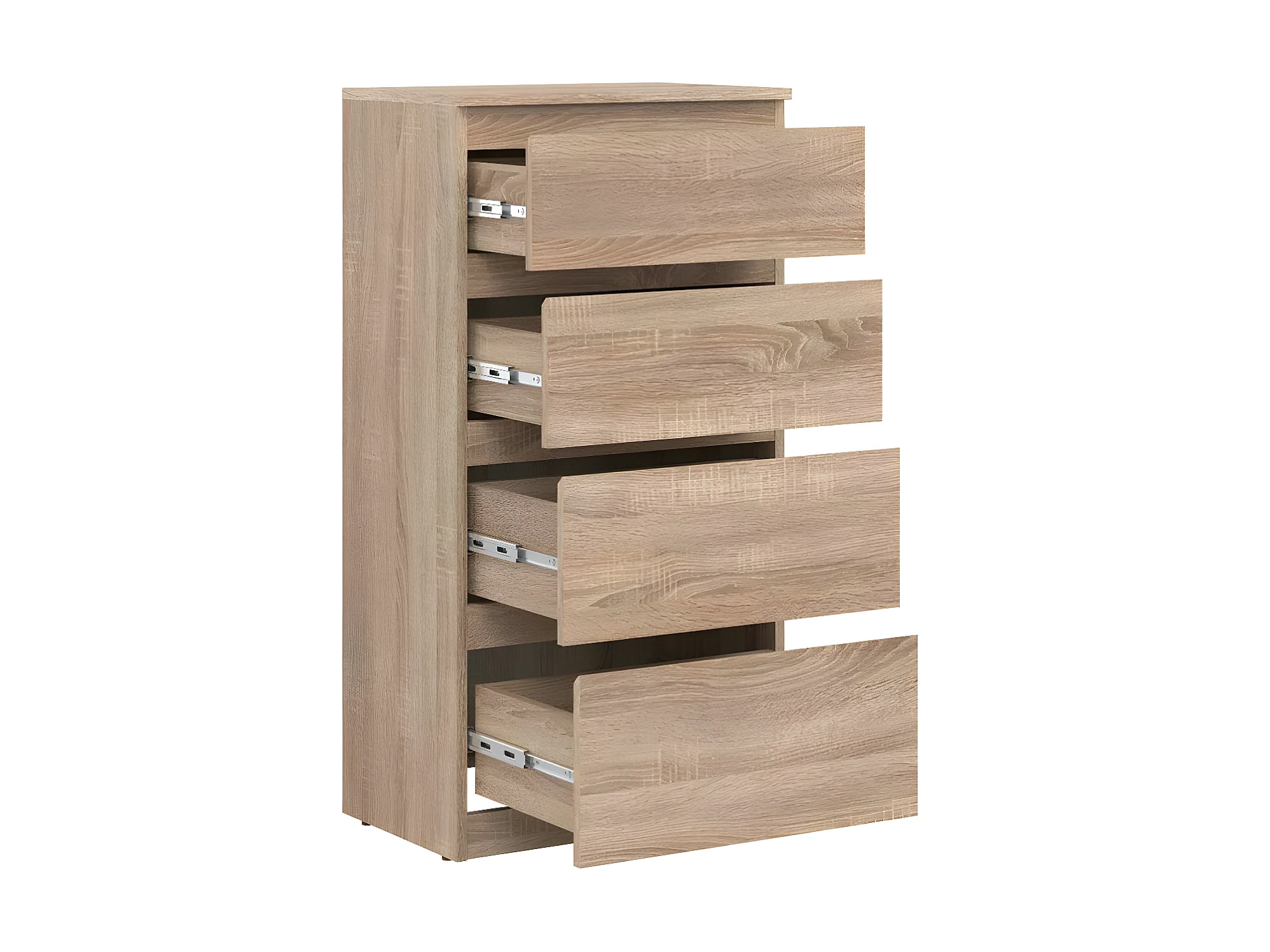 Commode 4 tiroirs Chêne clair - QIZ - L 54.5 x l 35 x H 105 cm