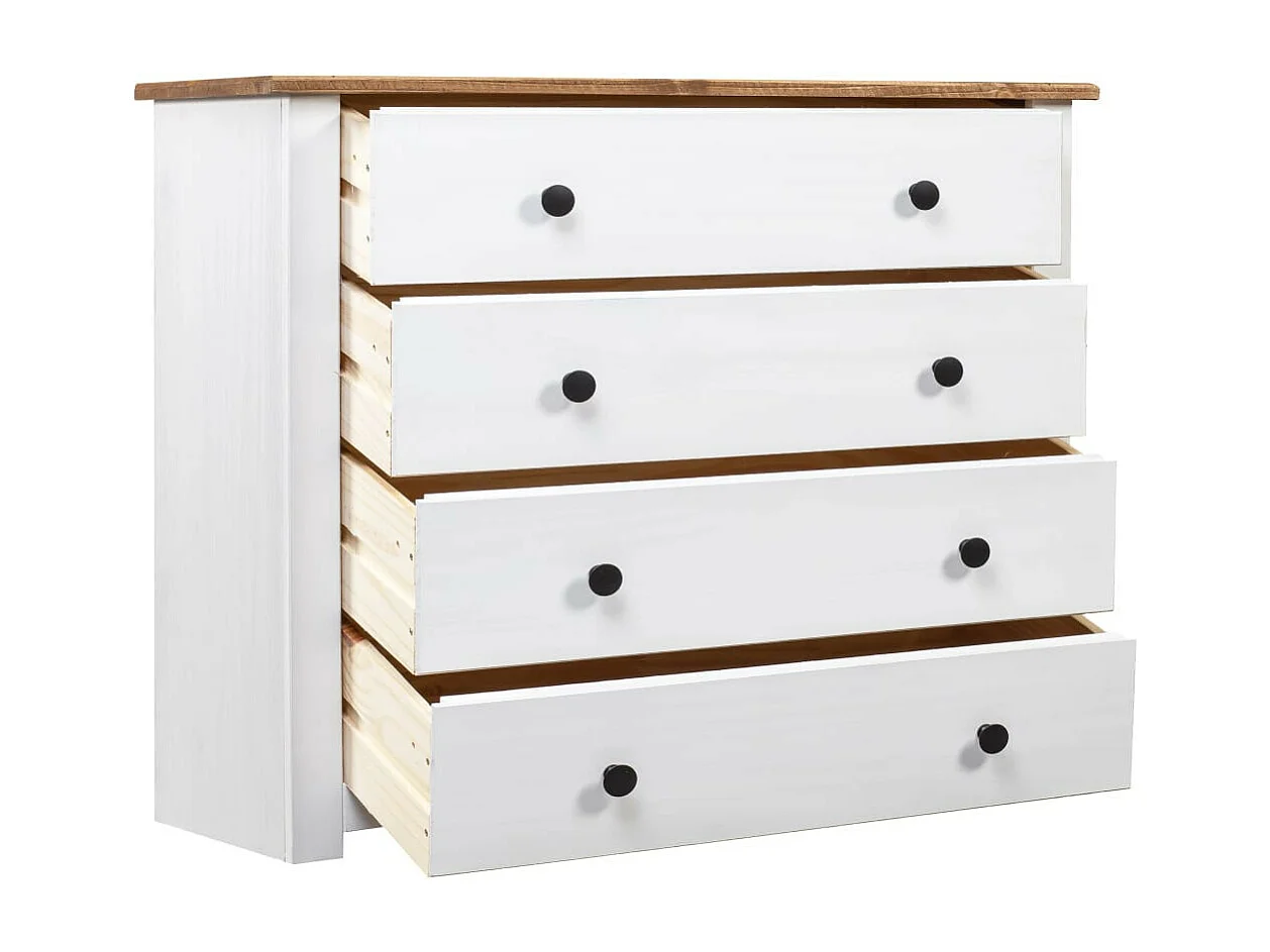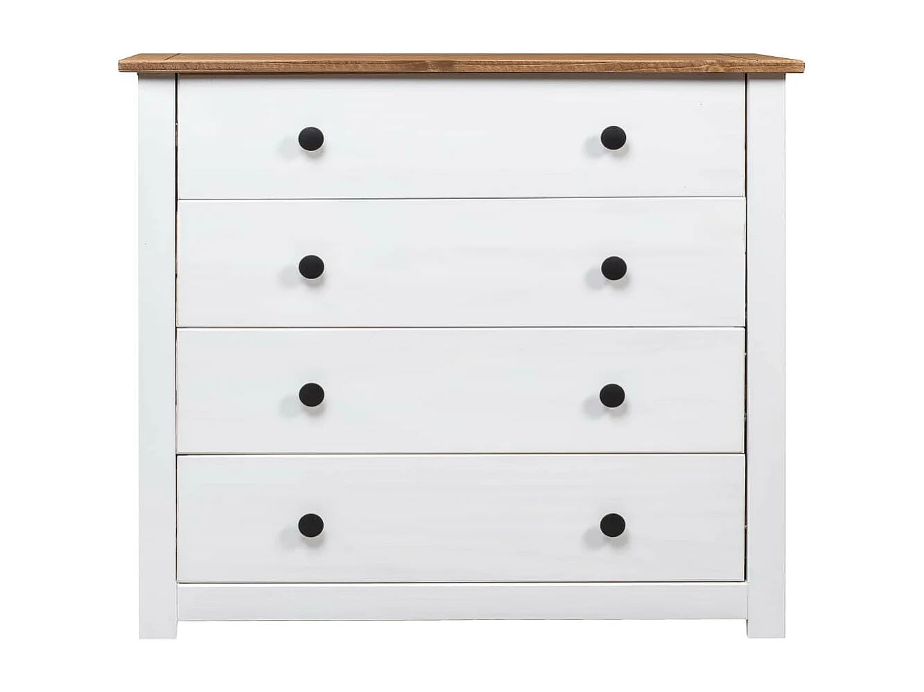 Commode 4 tiroirs en bois de pin massif Autika 80cm – Élégance rustique et praticité-Couleur Blanc