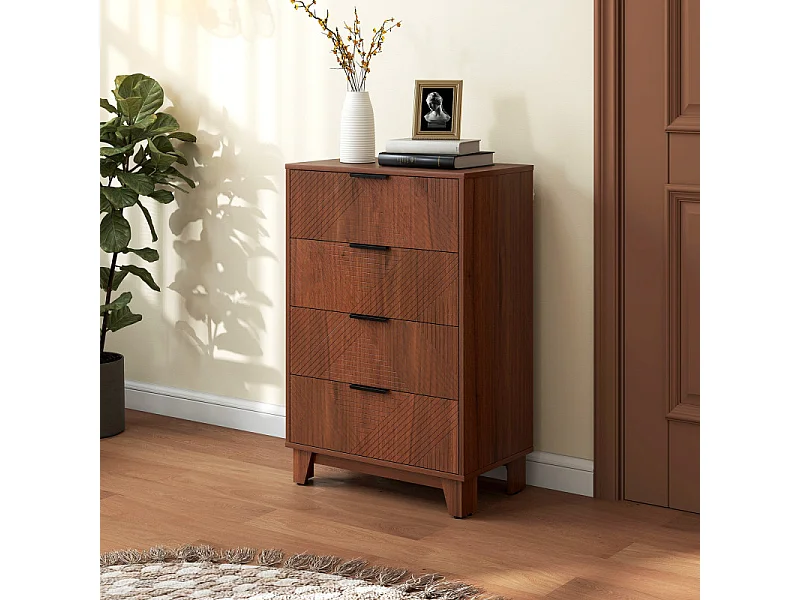 Commode 4 tiroirs PESO effet bois de noyer sculpté