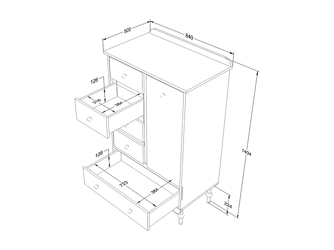 Commode 5 tiroirs 1 porte Babushka Olive