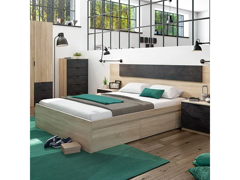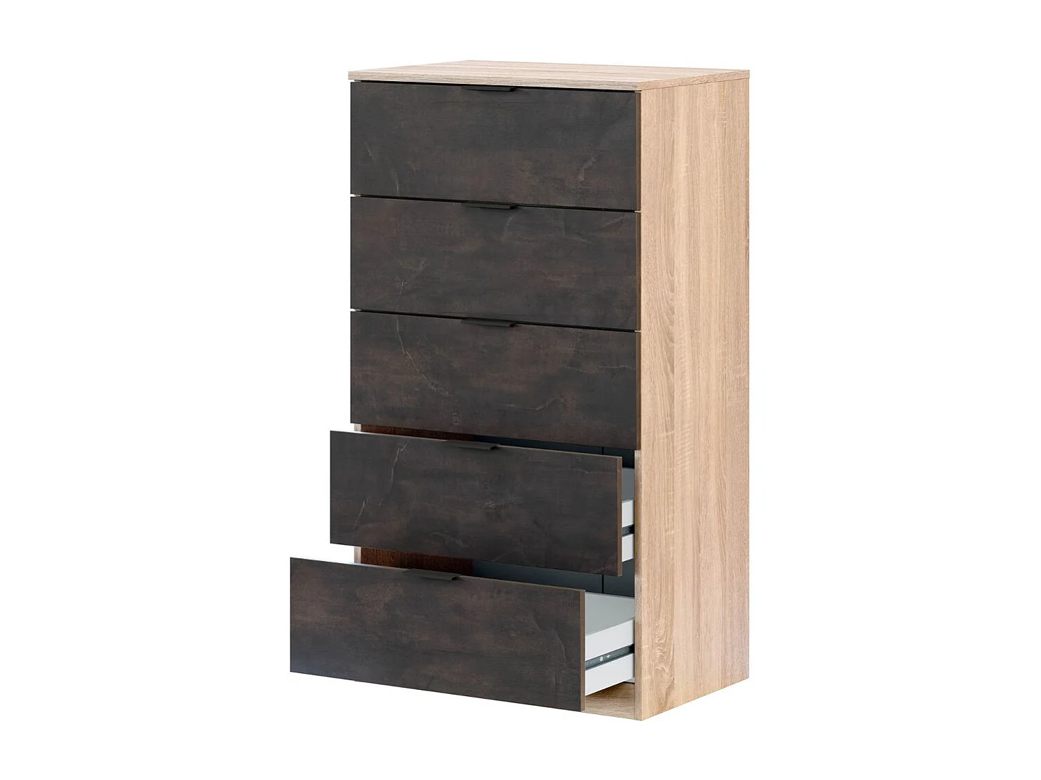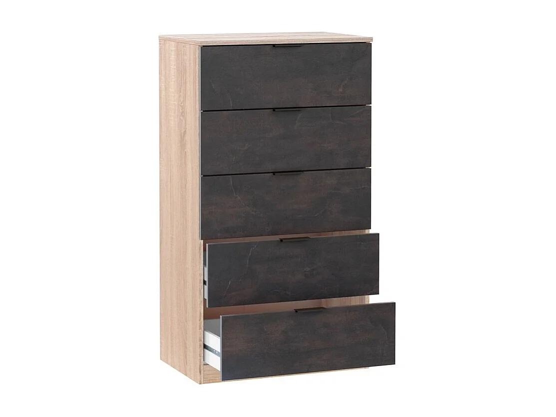 Commode 5 tiroirs, commode industrielle en oxyde de chêne canadien, 110x60x40 cm