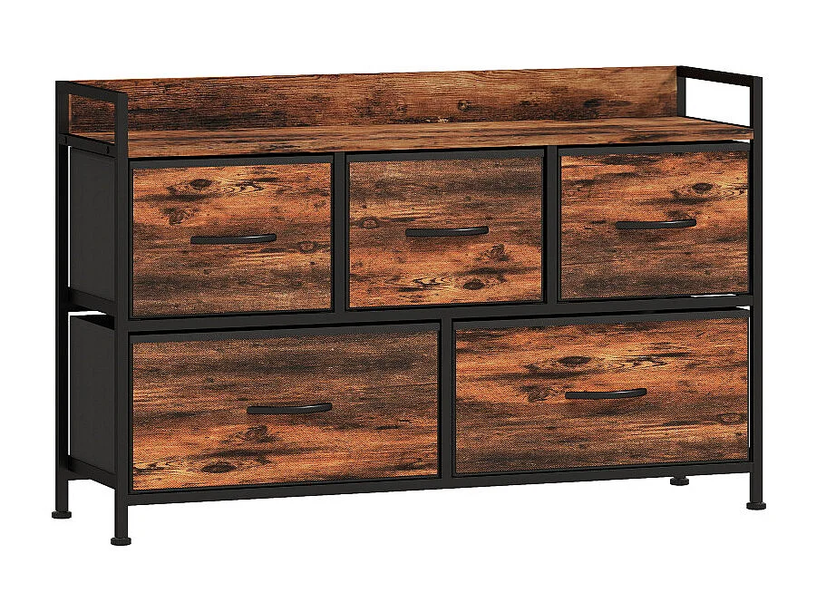 Commode 5 tiroirs DELGADA métal noir et aspect bois