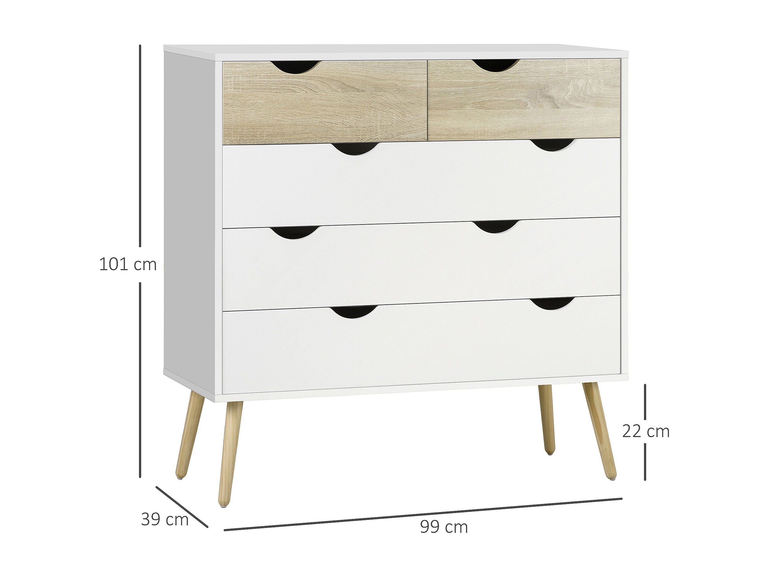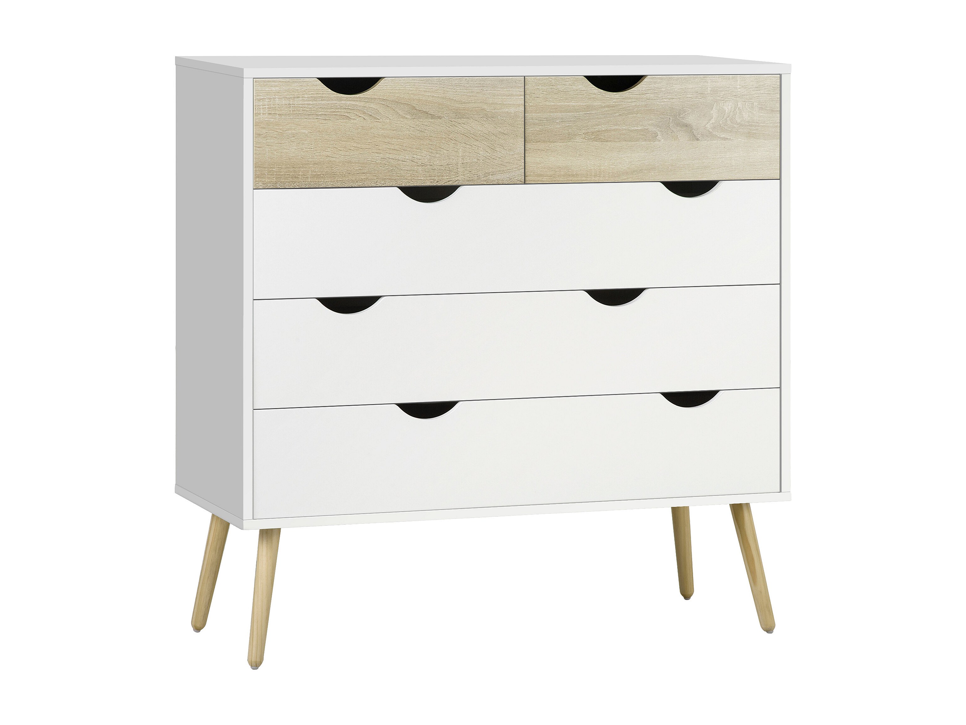 Commode 5 tiroirs design scandinave meuble de rangement chambre panneau de particules 99 x 39 x 101 cm blanc aspect chêne clair
