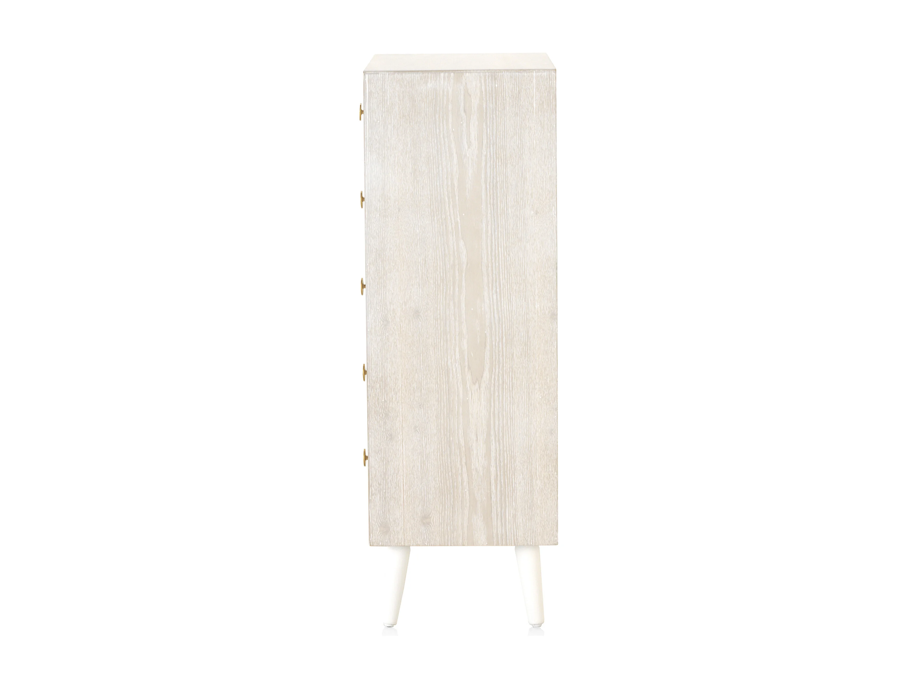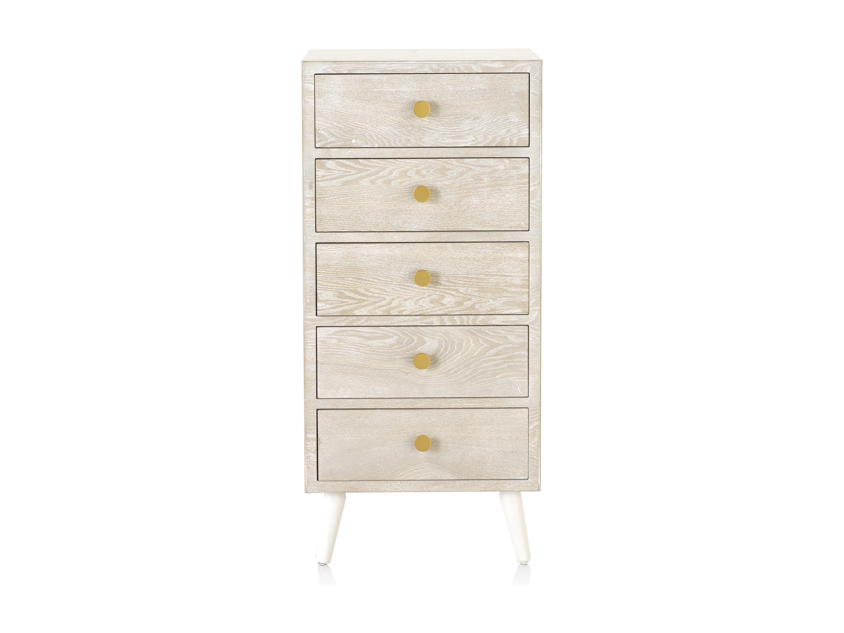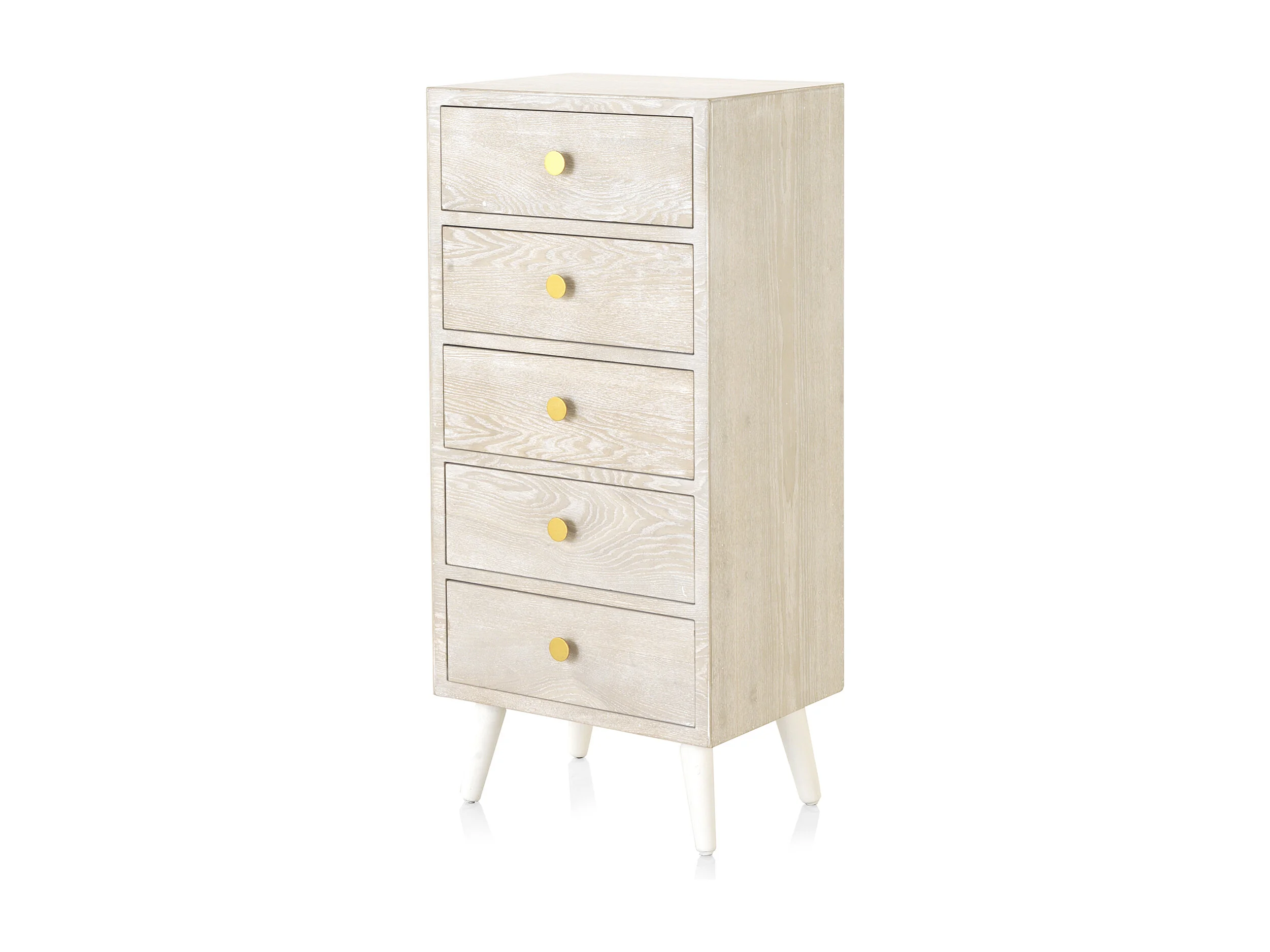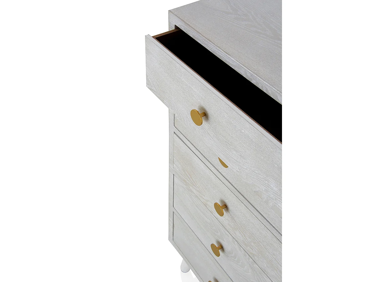 Suffitier à 5 tiroirs plaqué en bois de frêne patiné blanc