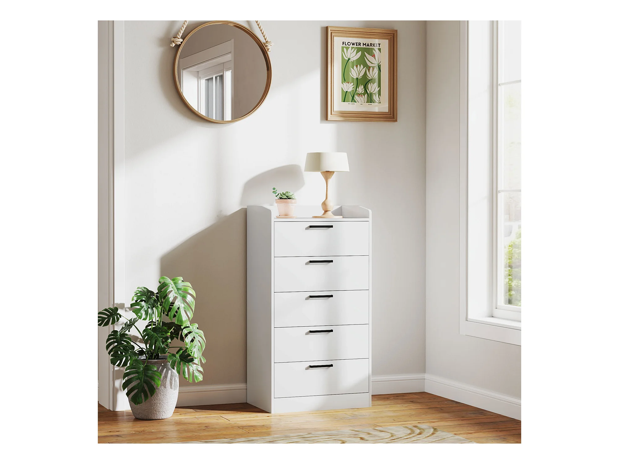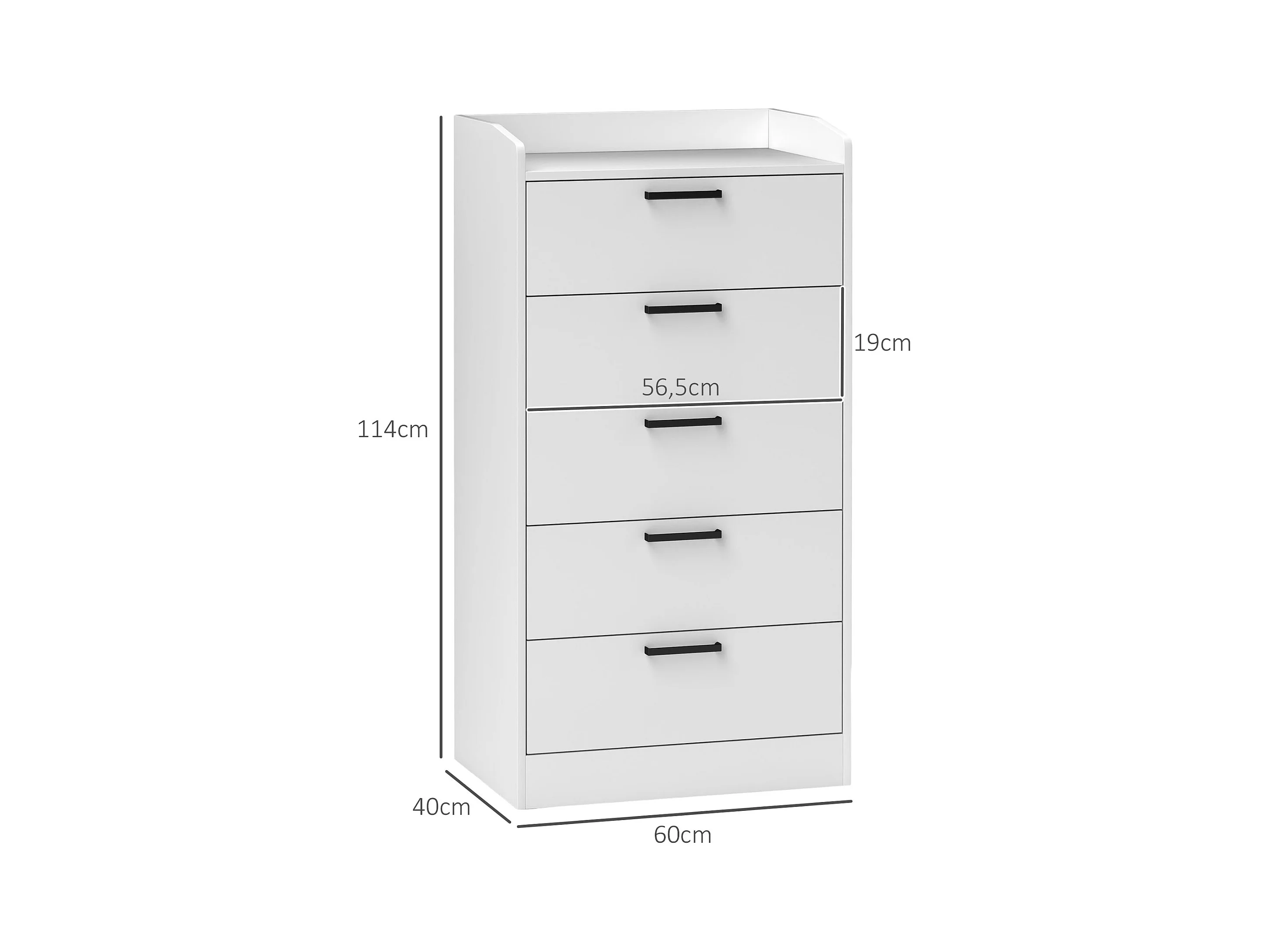 Commode Mesquite, Commode 5 tiroirs, Commode pour chambre à coucher, Commode moderne, 60x40h110 cm, Blanc