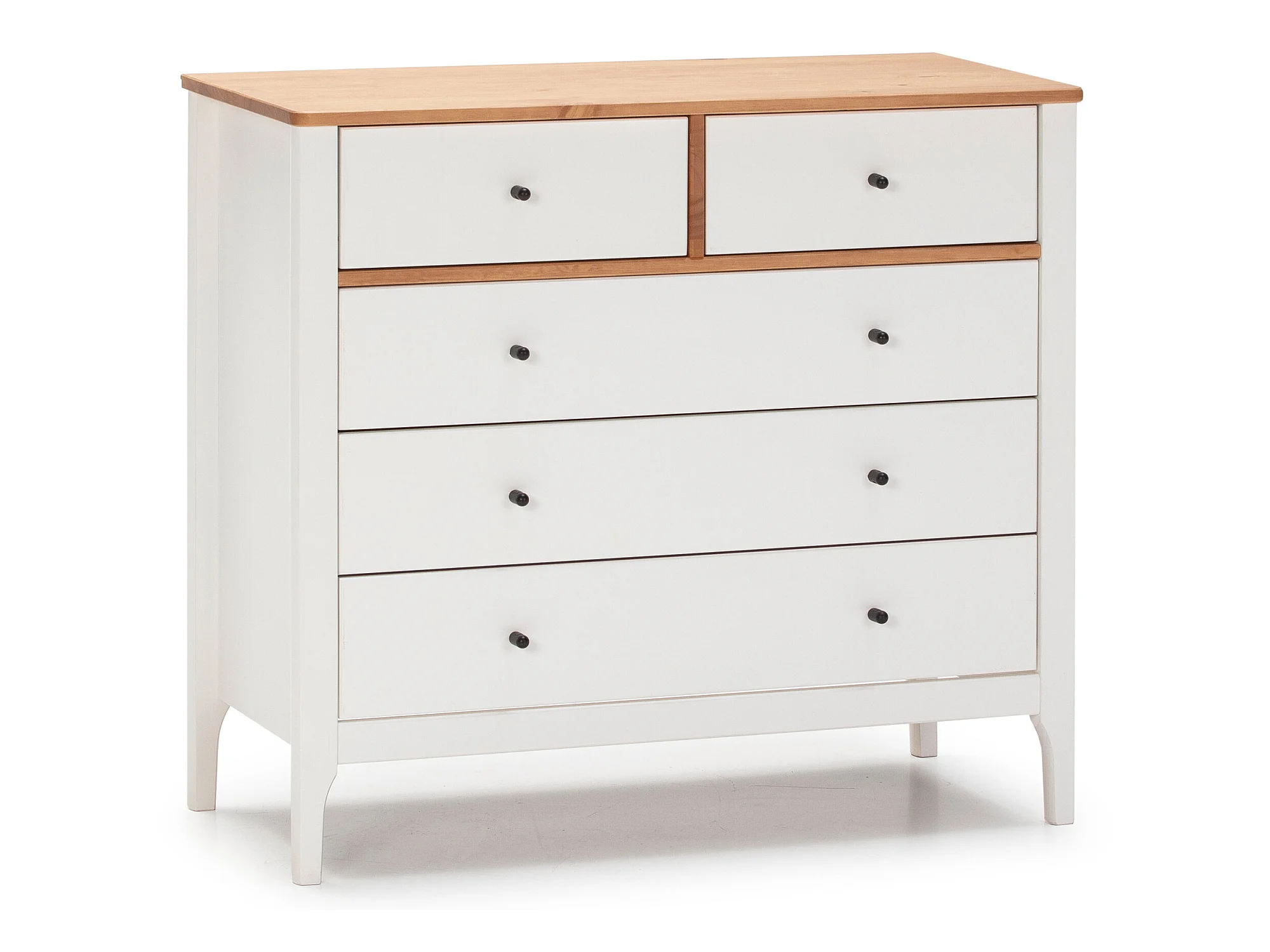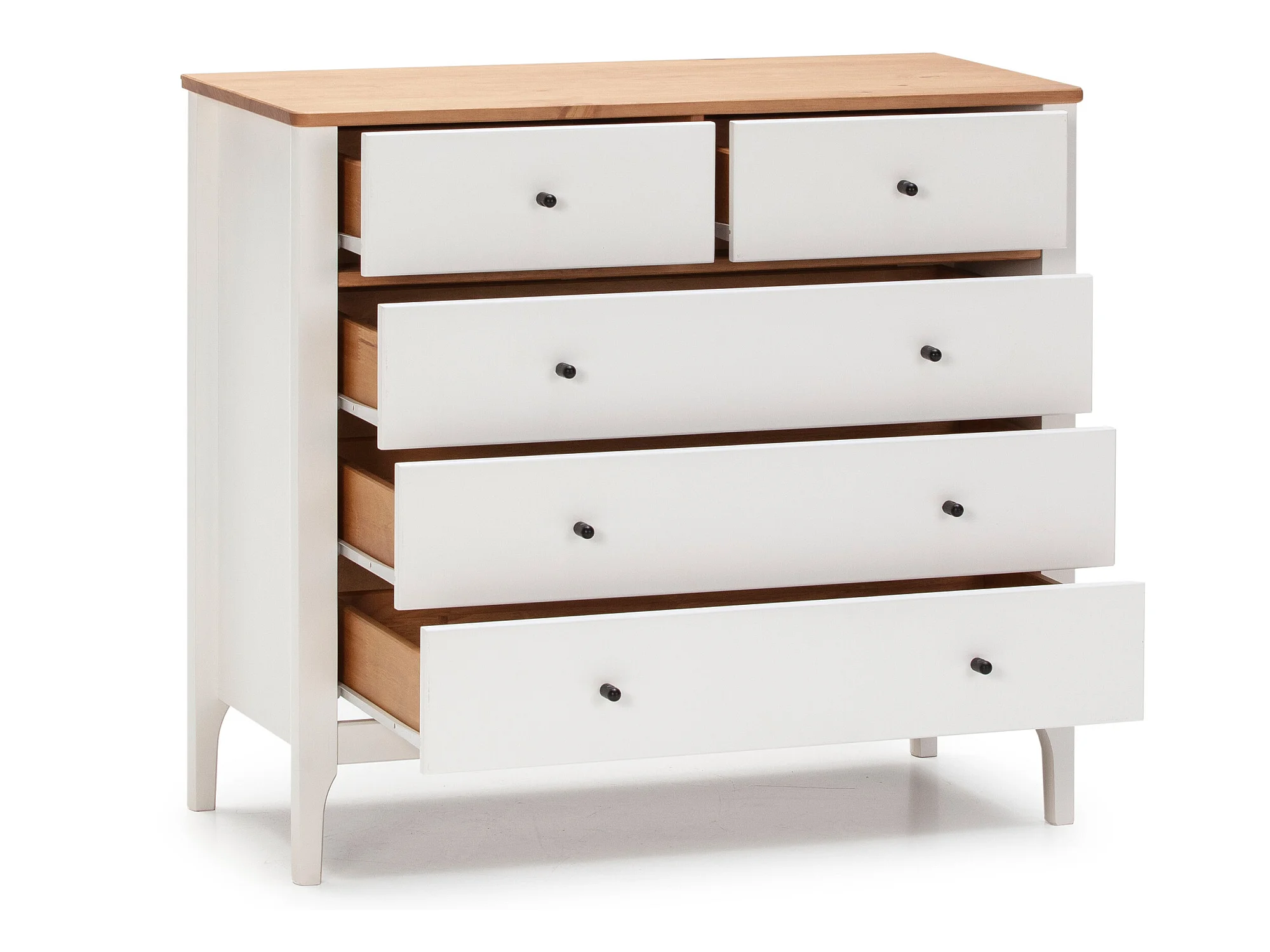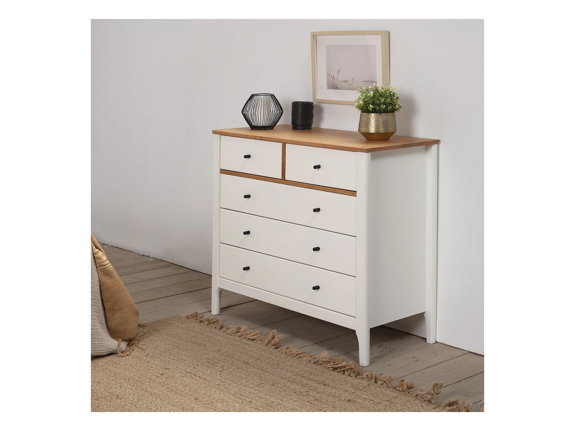 Commode 5 tiroirs Luca dans les tiroirs Blanc/Chêne, 90 cm Longueur