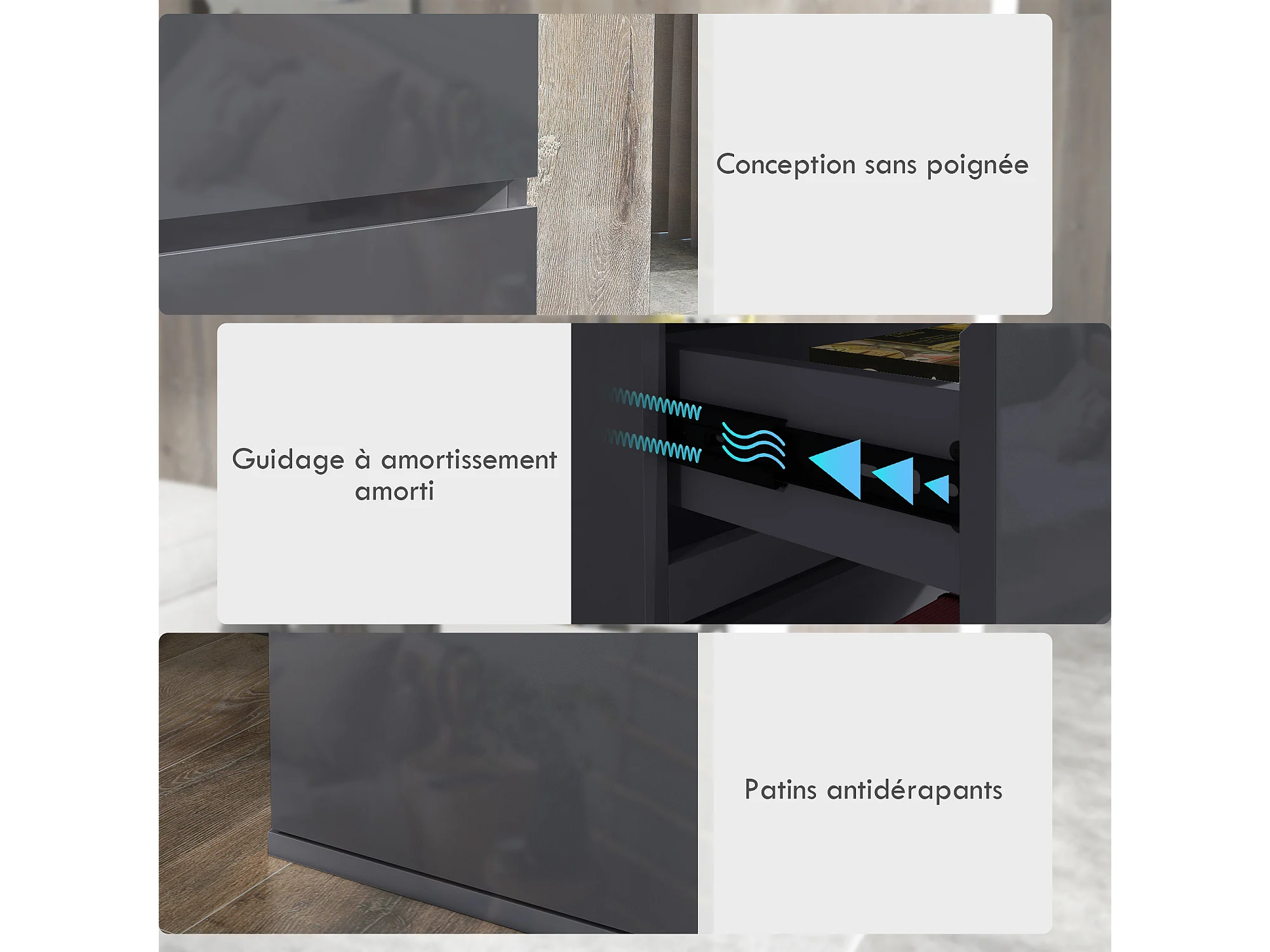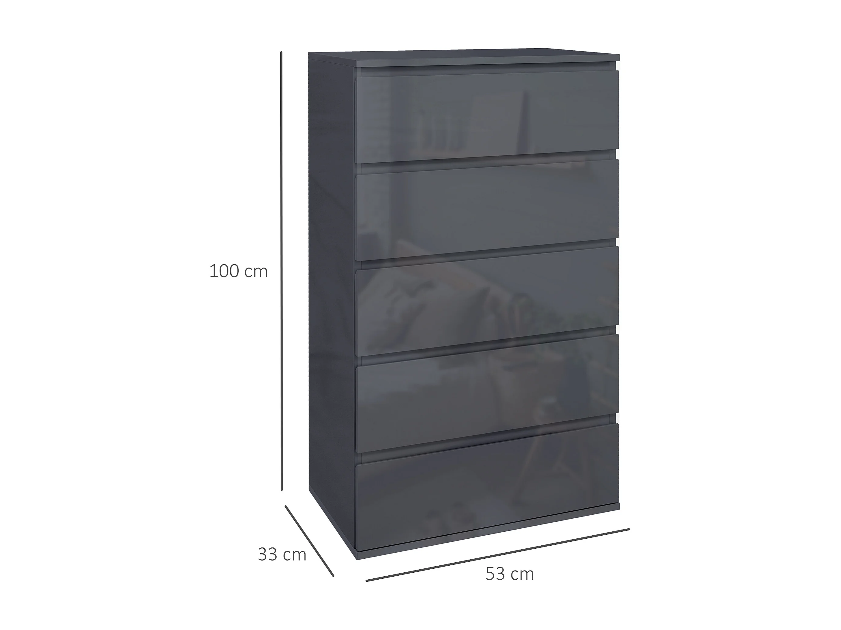 Commode 5 tiroirs style contemporain dim. 53L x 33l x 100H cm laqué gris