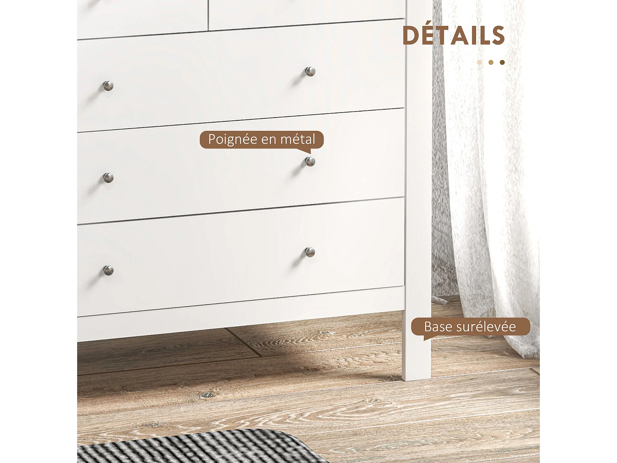 Commode 5 tiroirs style contemporain dim. 79 x 39,5 x 80,5 cm poignées boutons métal MDF blanc