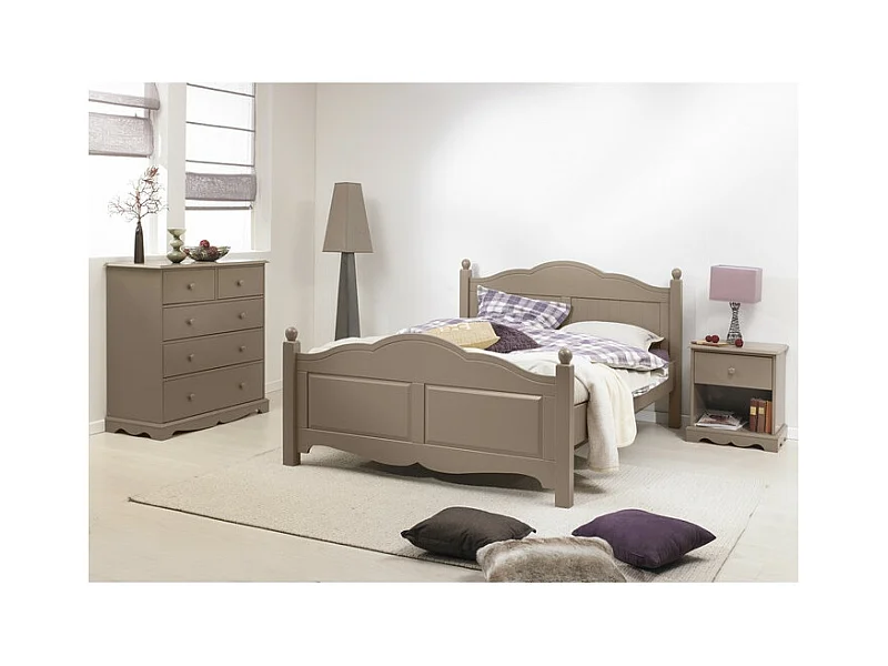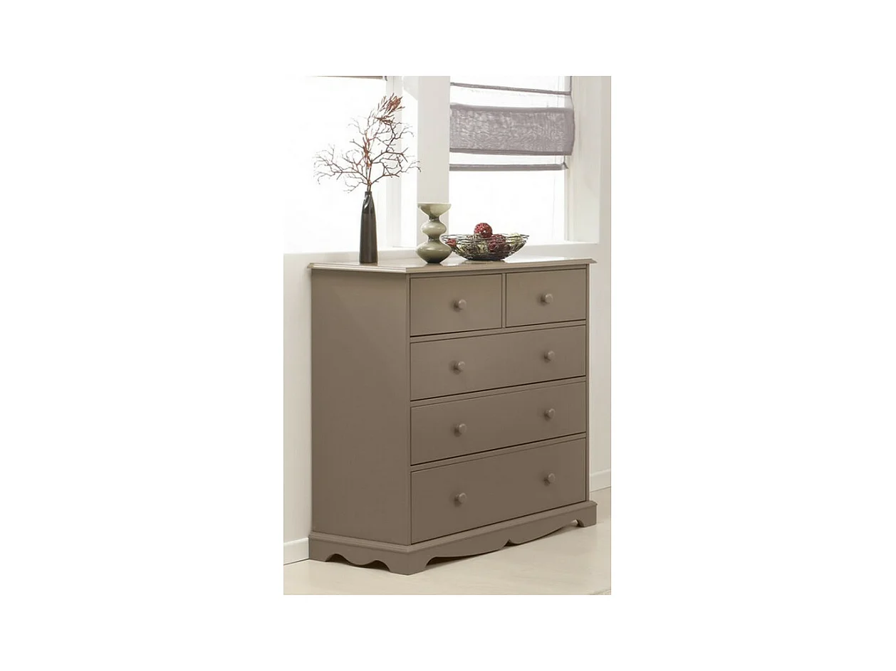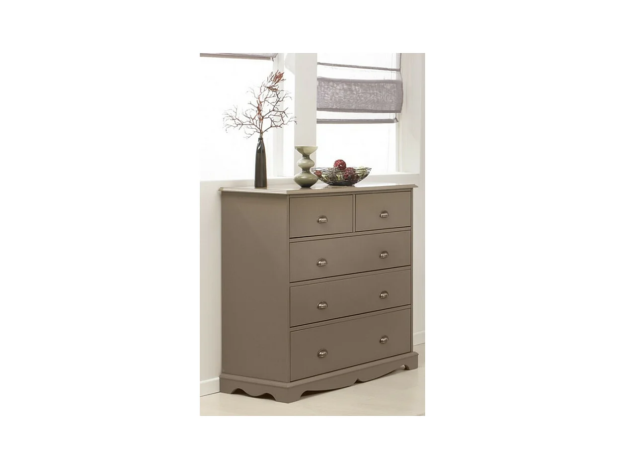 Commode 5 Tiroirs Taupe Style Anglais L 96.2 H 97.4 P 42.5 cm