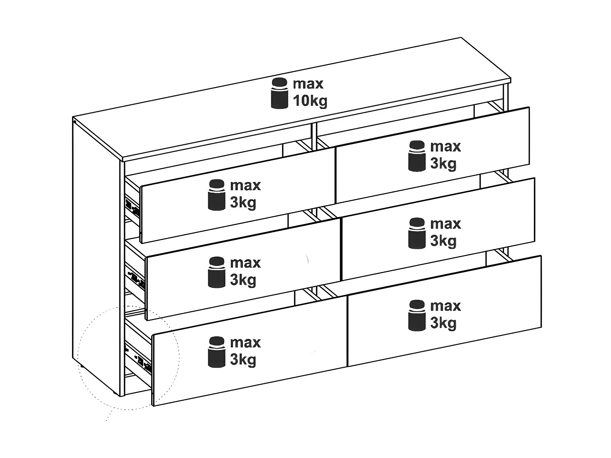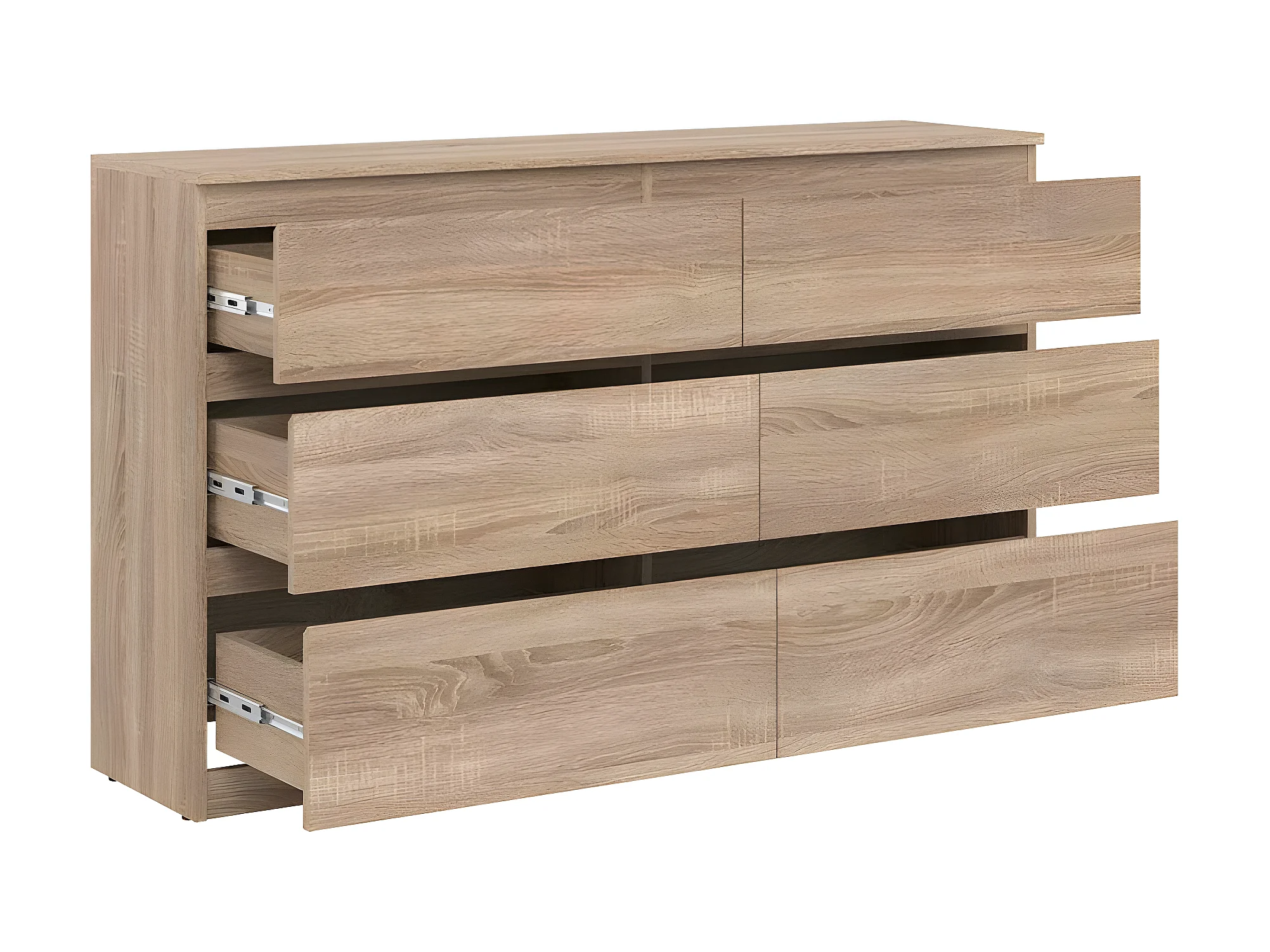 Commode 6 tiroirs Chêne clair - QIZ - L 137 x l 35 x H 84 cm