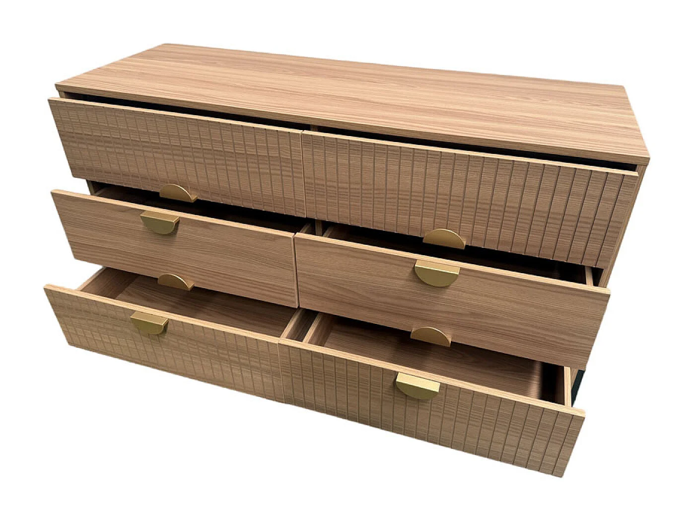 Commode 6 tiroirs décor bois rainuré 124cm VALLO