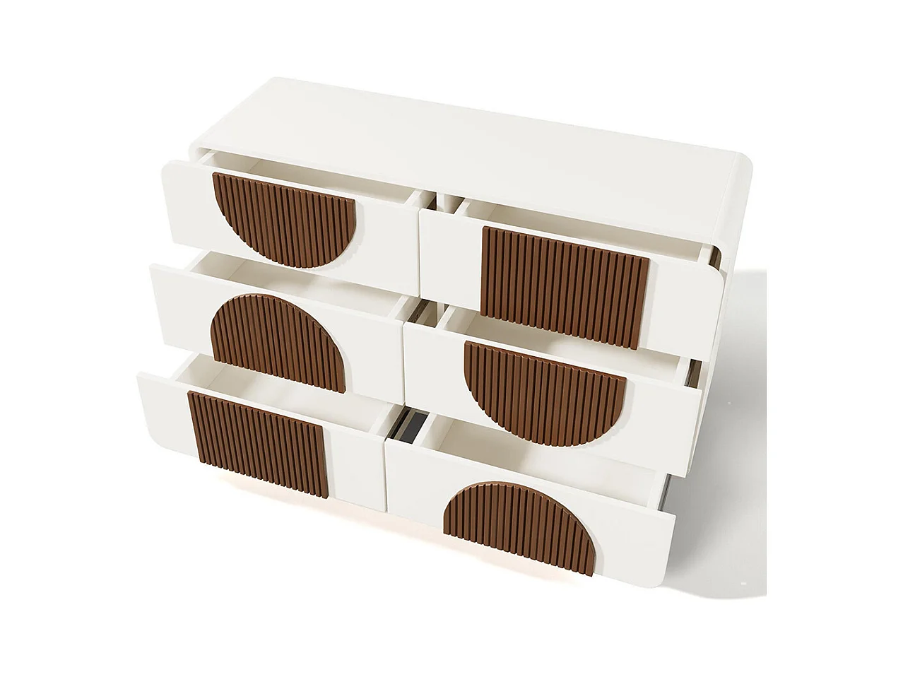 Commode 6 tiroirs design incurvé buffet blanc baguettes bois chocolat tiroirs coulissants silencieux anti-basculement