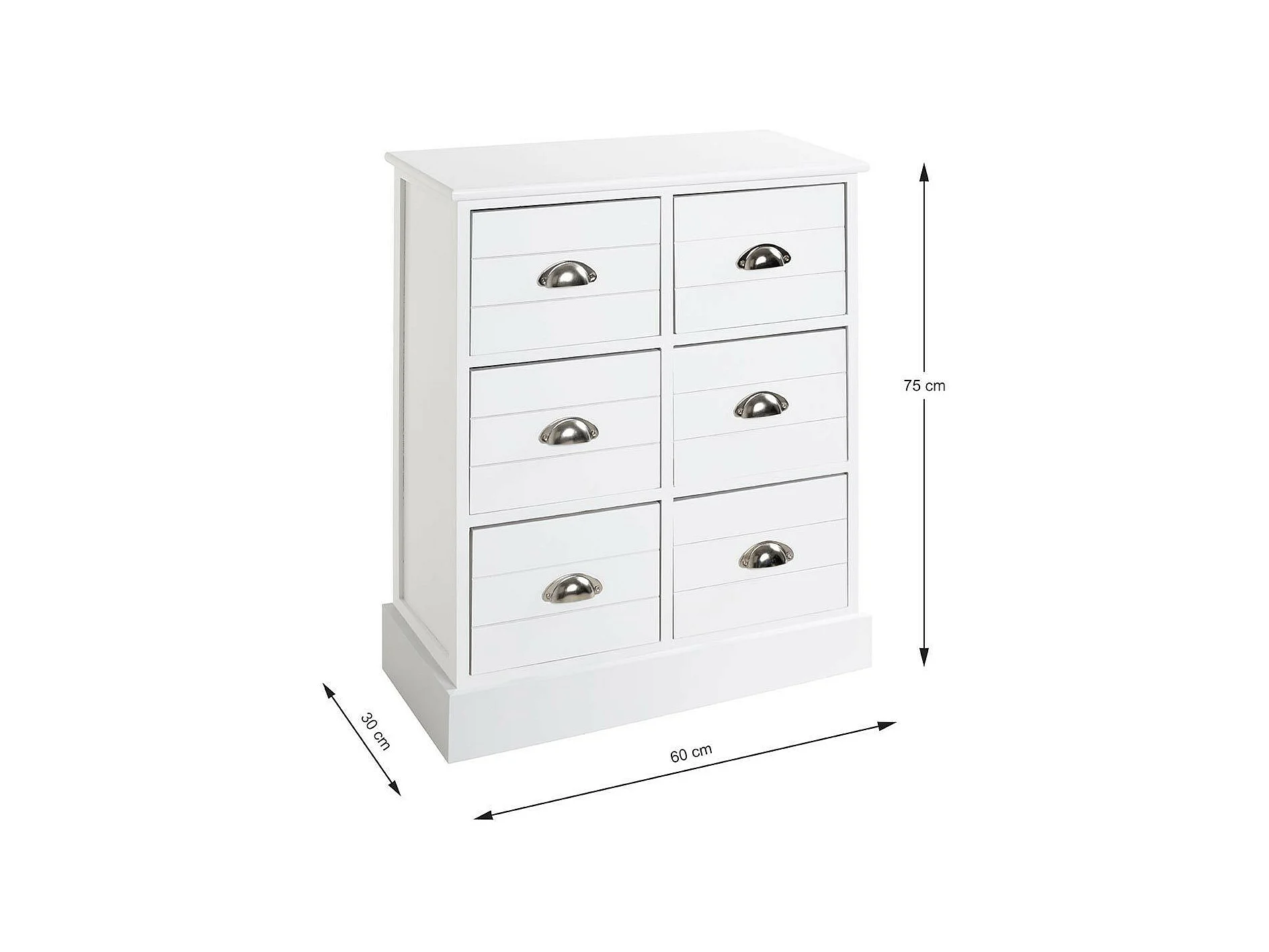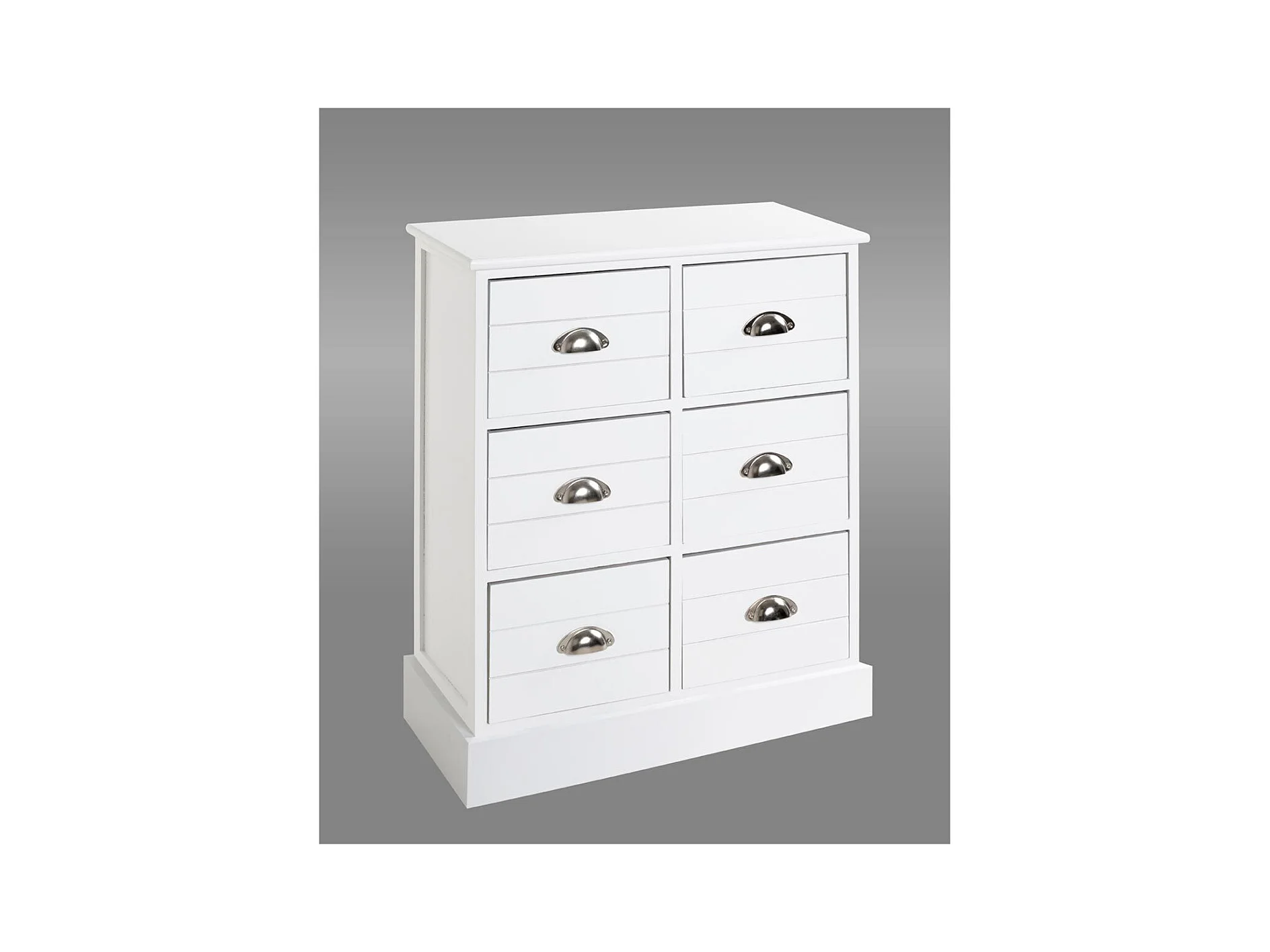 Commode 6 Tiroirs "Lavido" 75cm Blanc Laqué