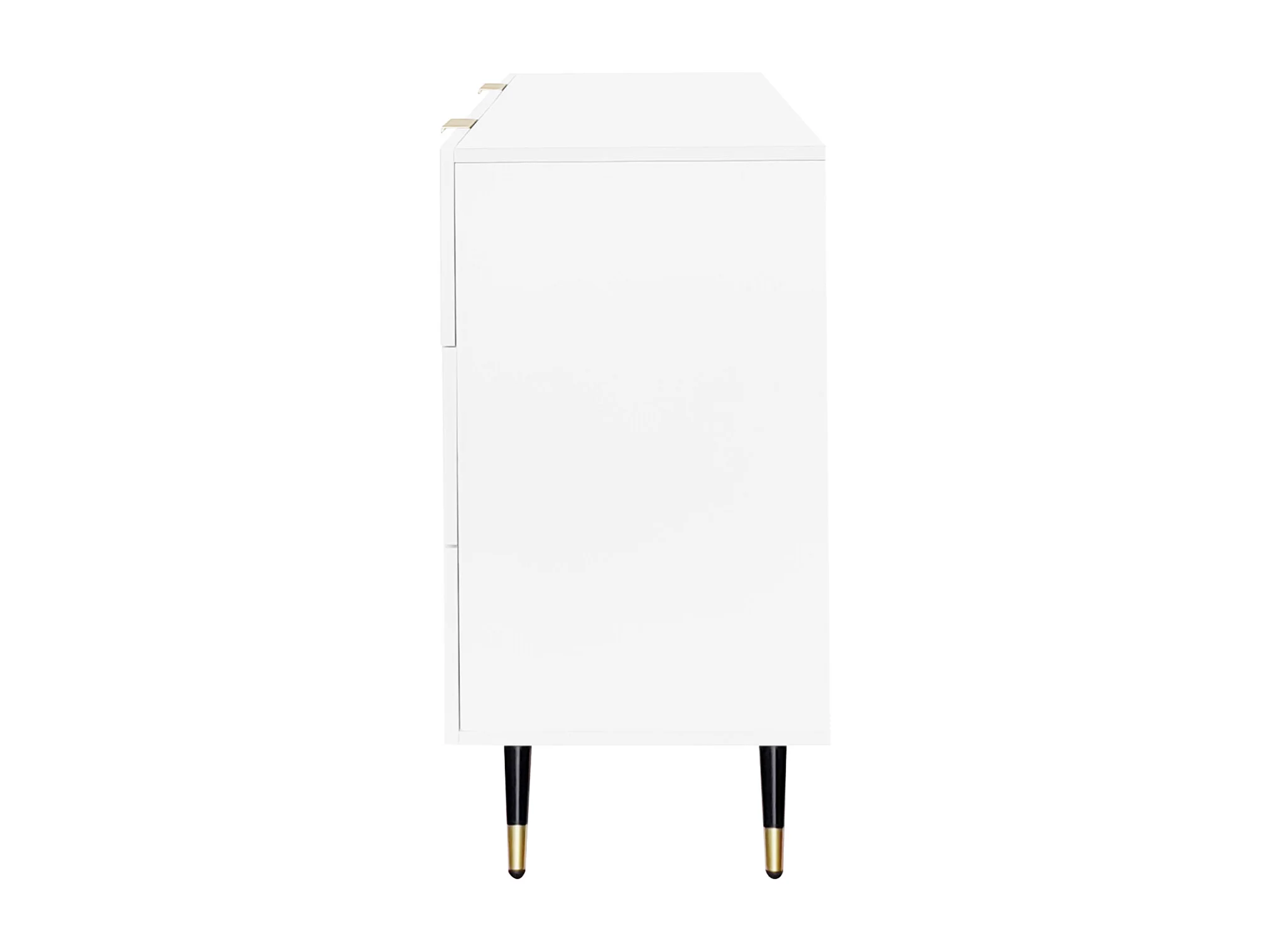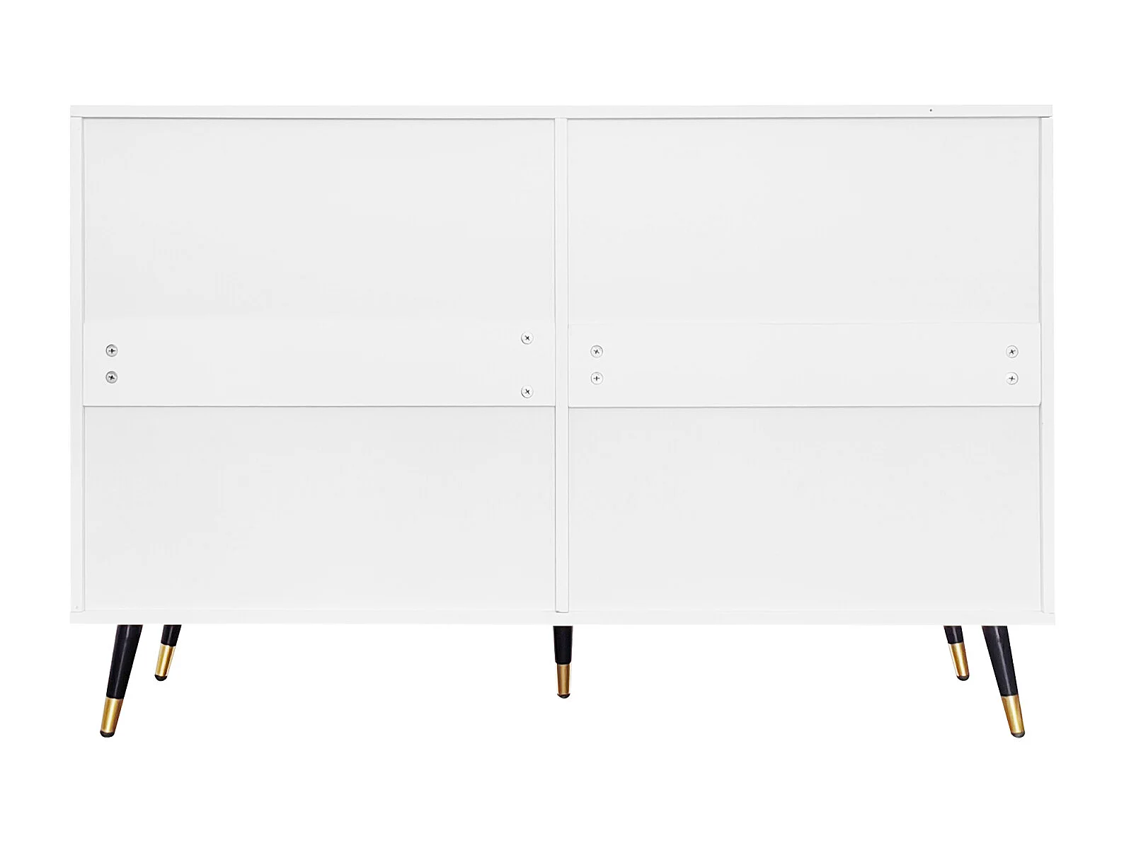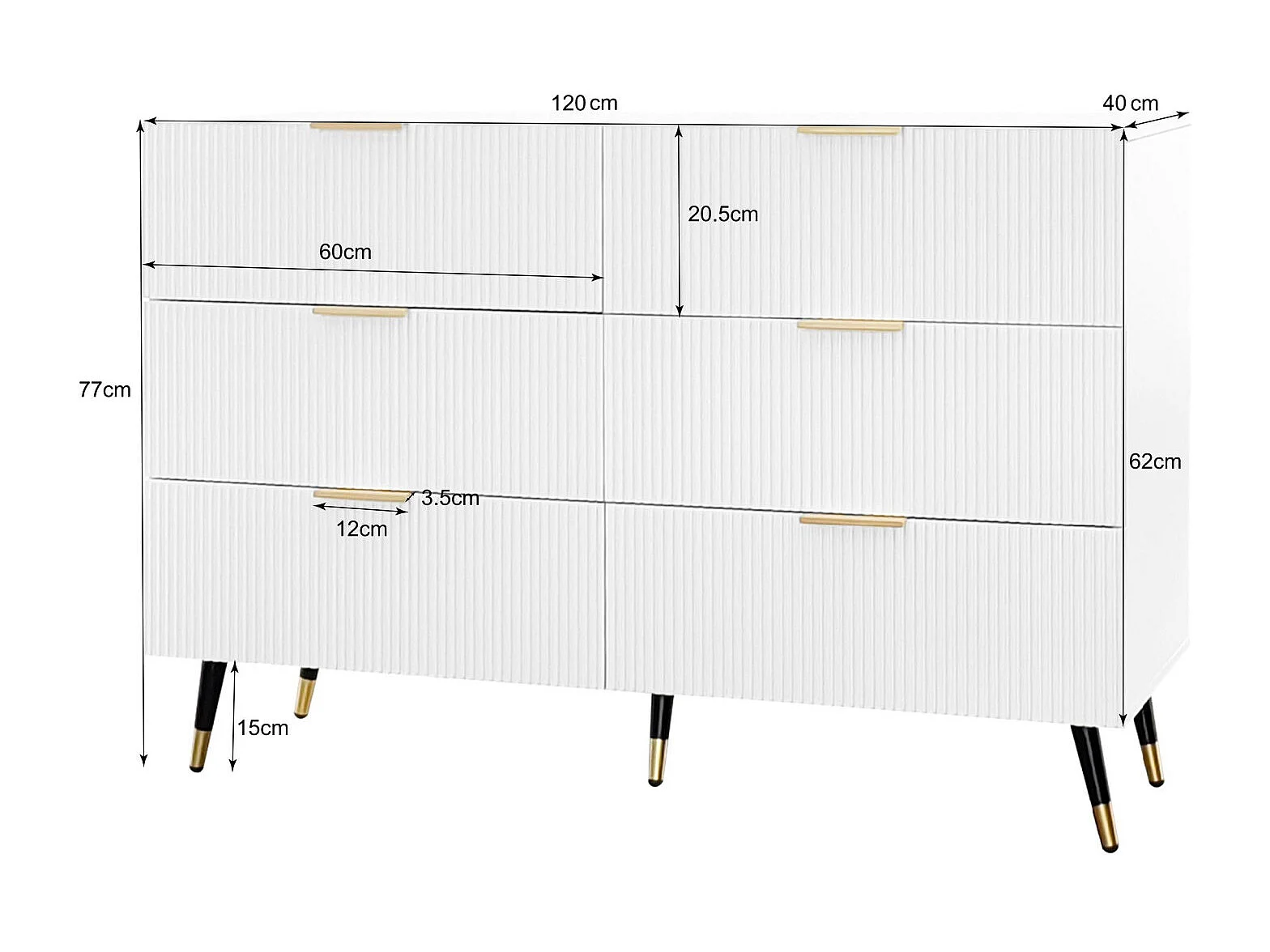 Commode 6 tiroirs Meuble tiroir Rangement Blanc avec Pieds et poignées dorés Meuble