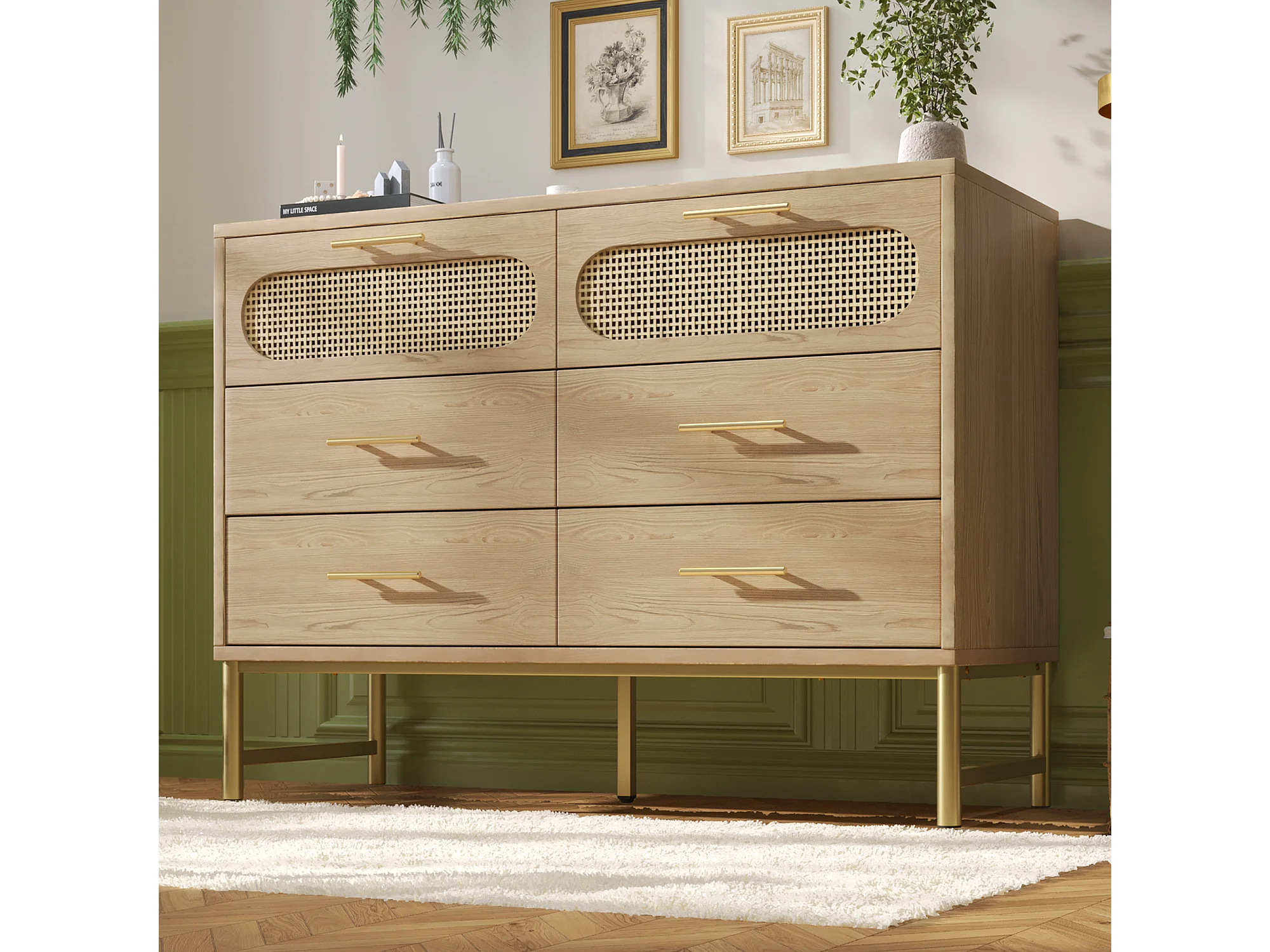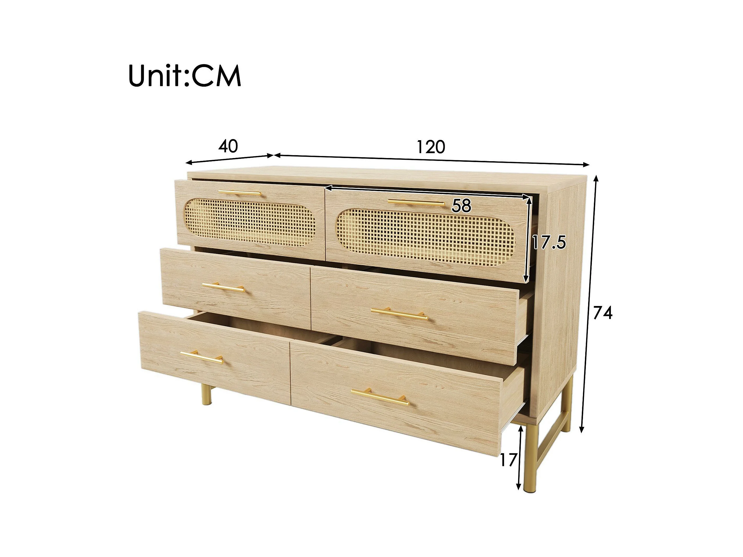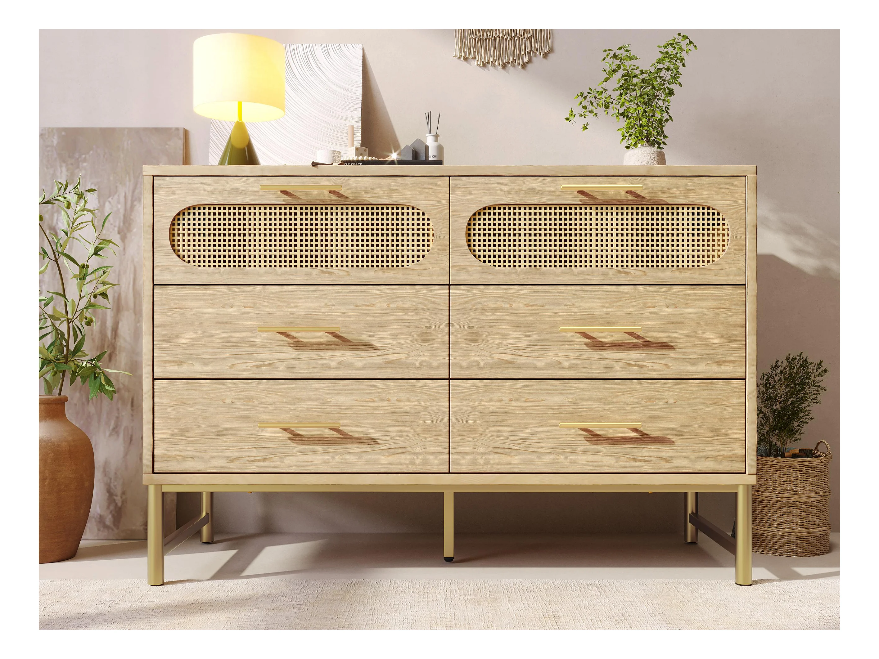 Commode 6 tiroirs - panneaux de particules - Naturel