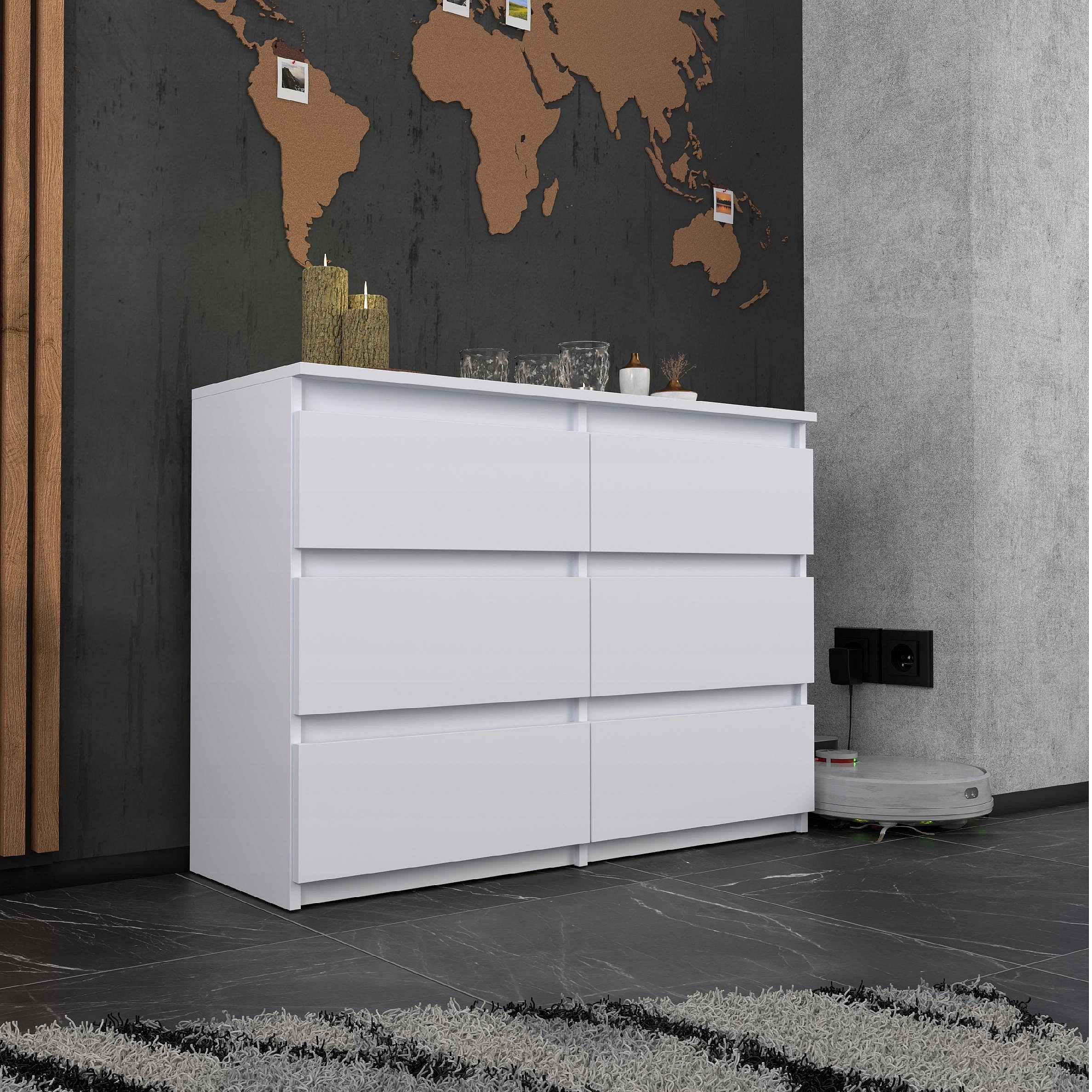 Commode à 6 tiroirs ASSISI Blanc