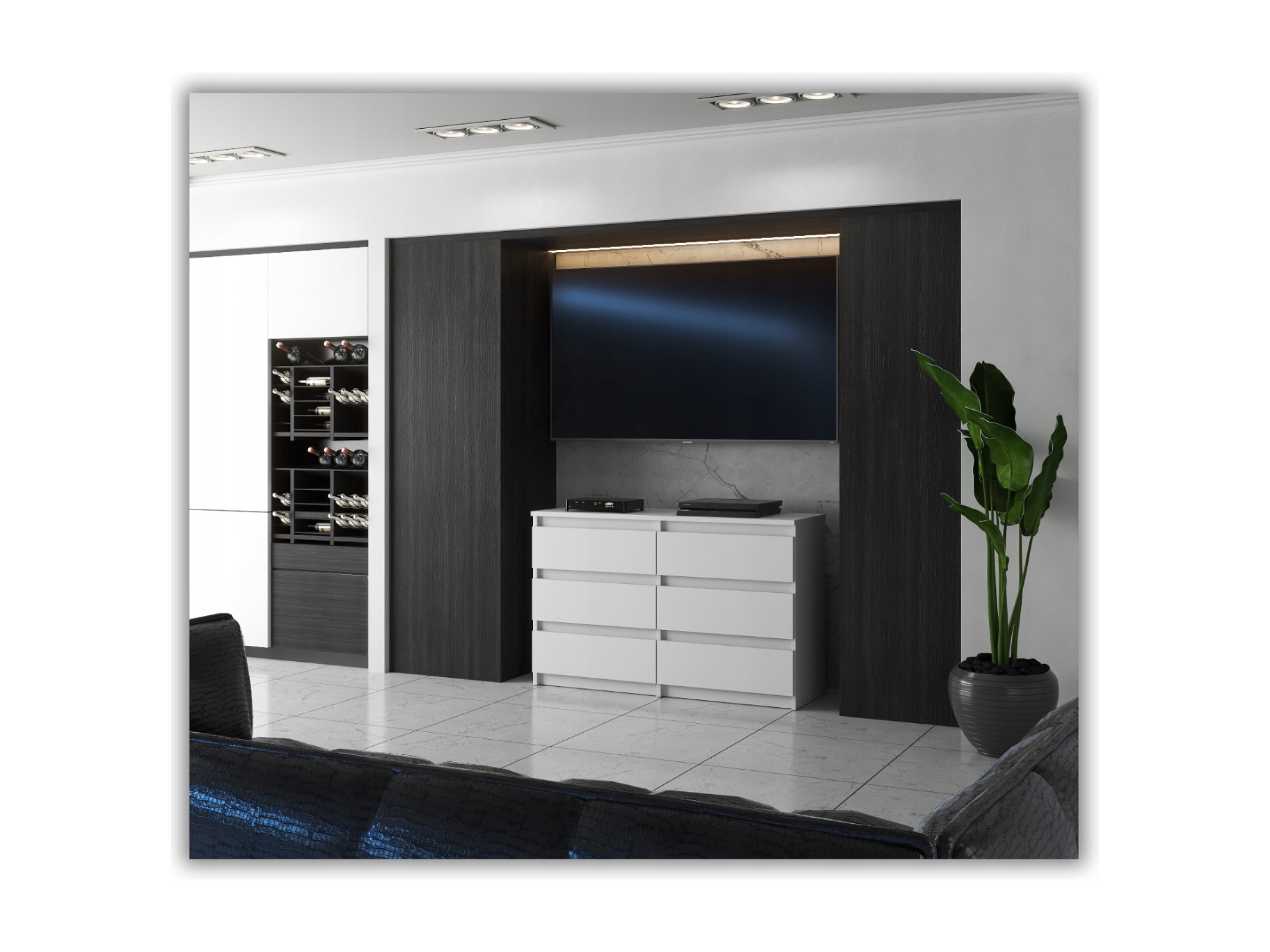Grande commode blanche mat 120 cm avec 8 tiroirs – Meuble TV moderne pour salon