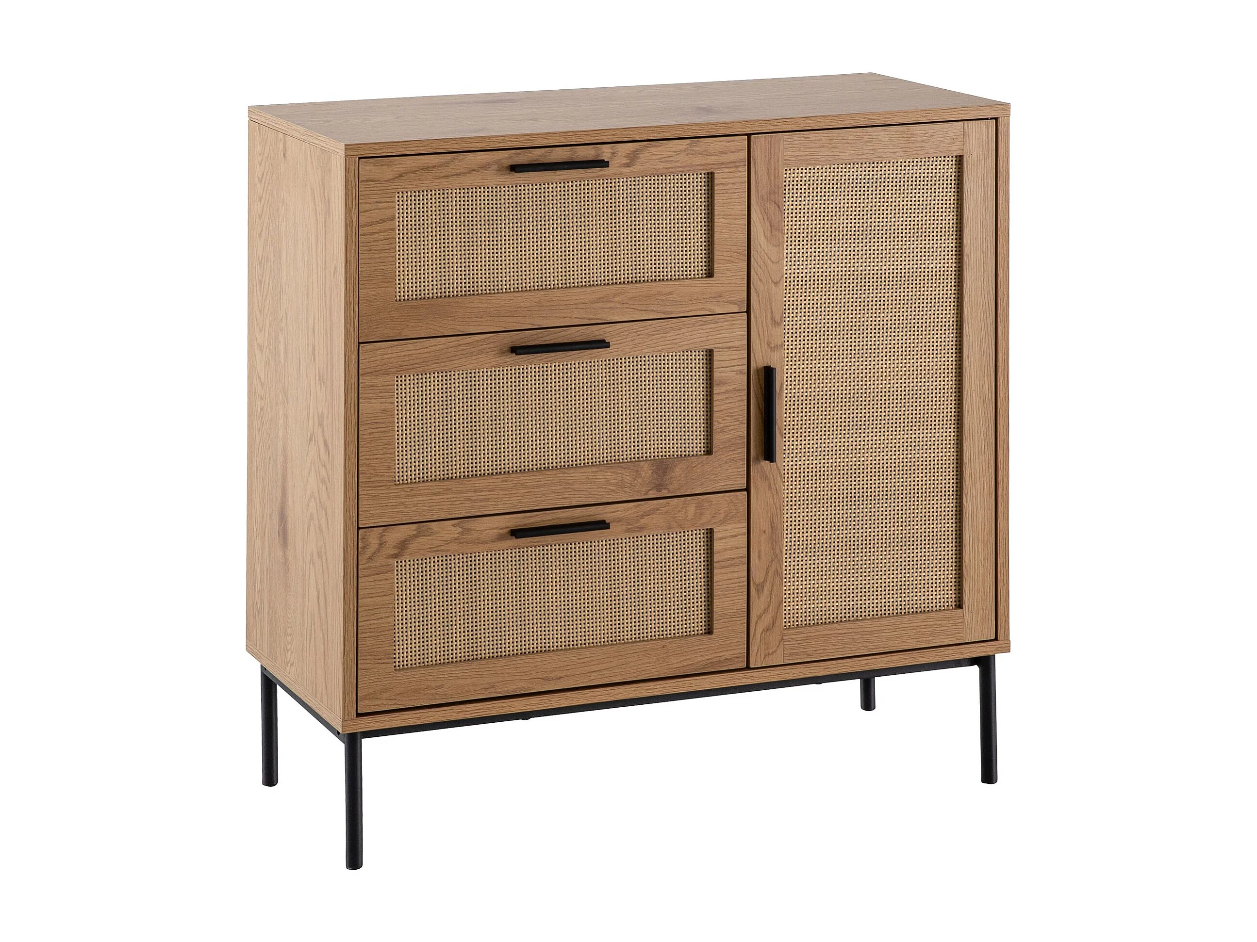 Commode 80 cm Décor Chêne Rotin Meuble d’entrée Armoire Rangements