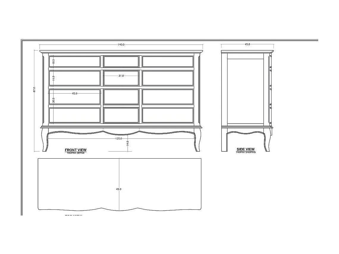 Commode 9 tiroirs Maddy beige
