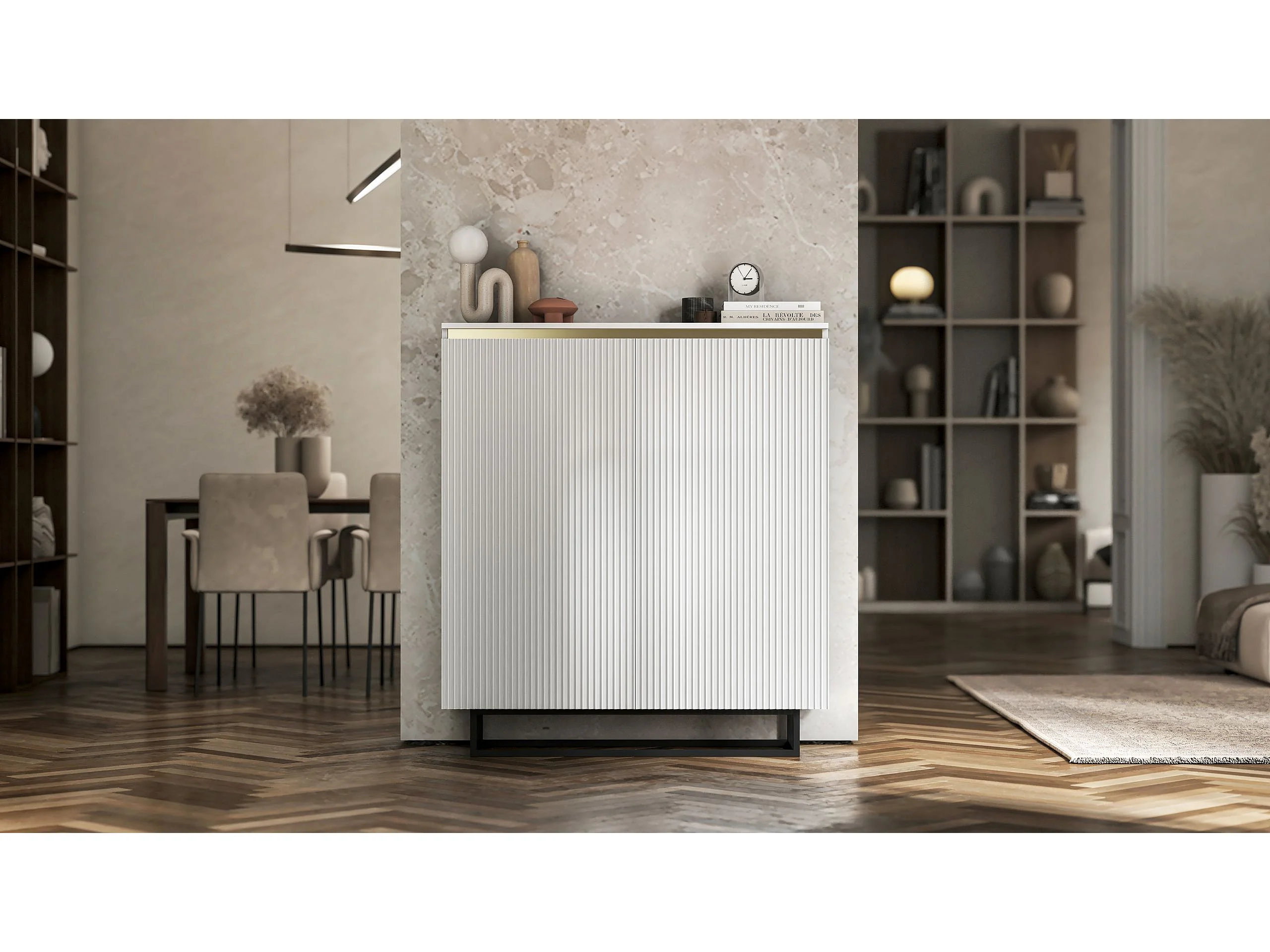Commode à 2 portes – corps blanc mat, façades rainurées blanc mat – 110,8 cm, Cadre en métal noir