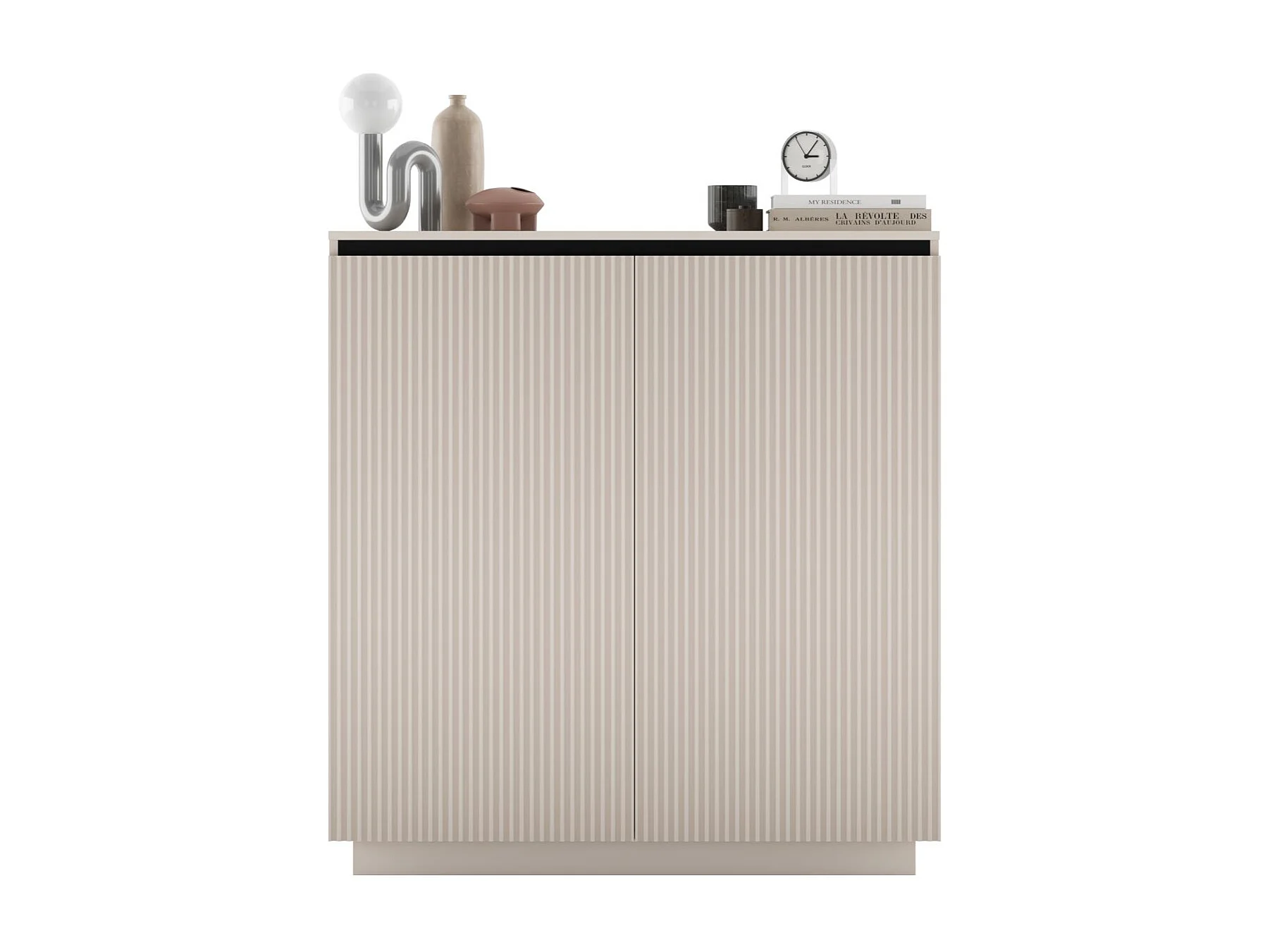 Commode à 2 portes – corps cachemire mat, façades rainurées cachemire mat – 110,8 cm, sur socle