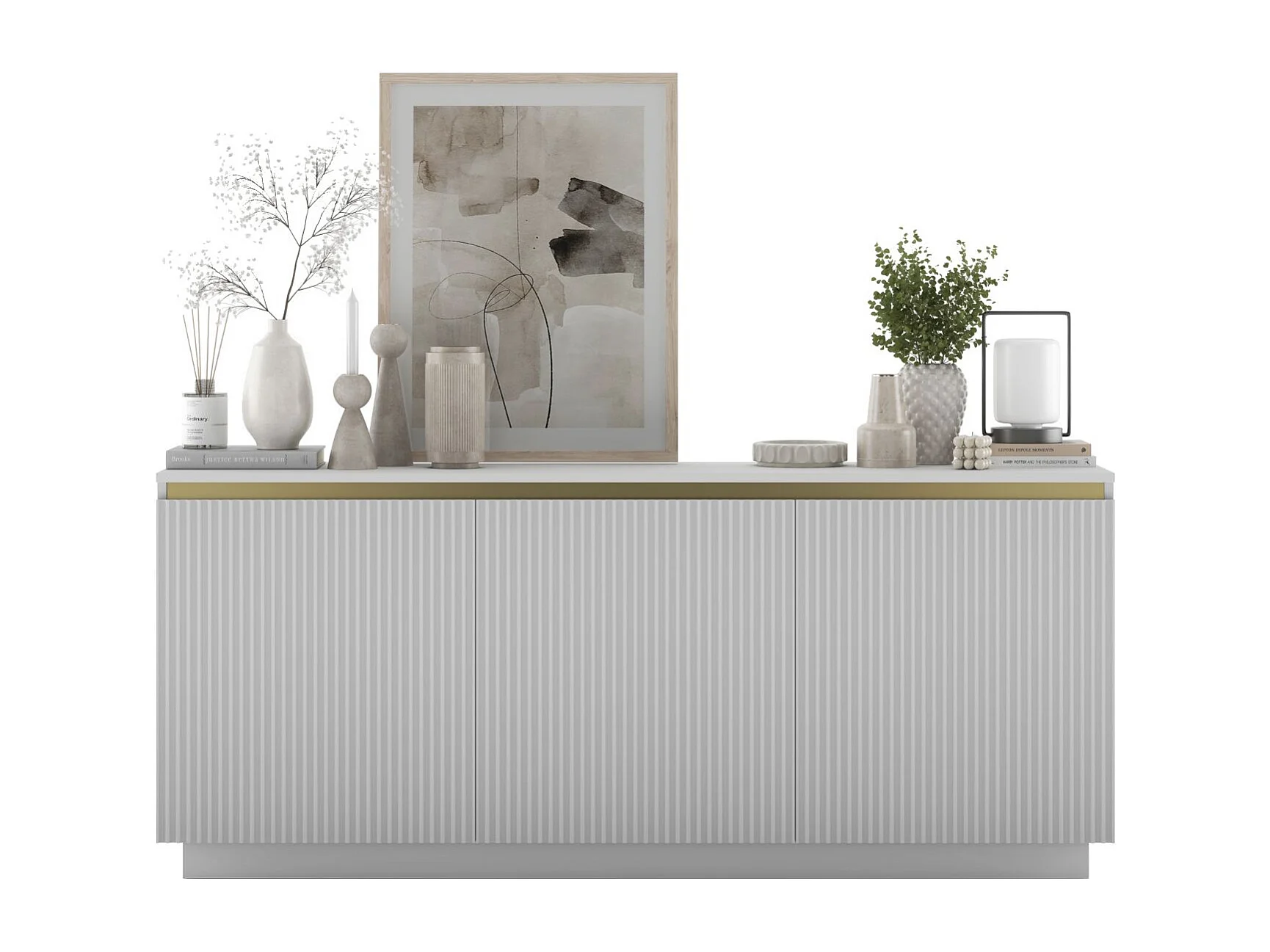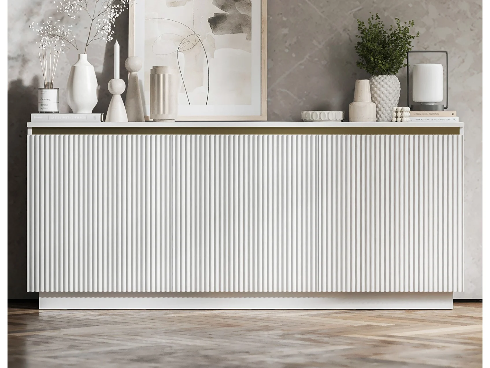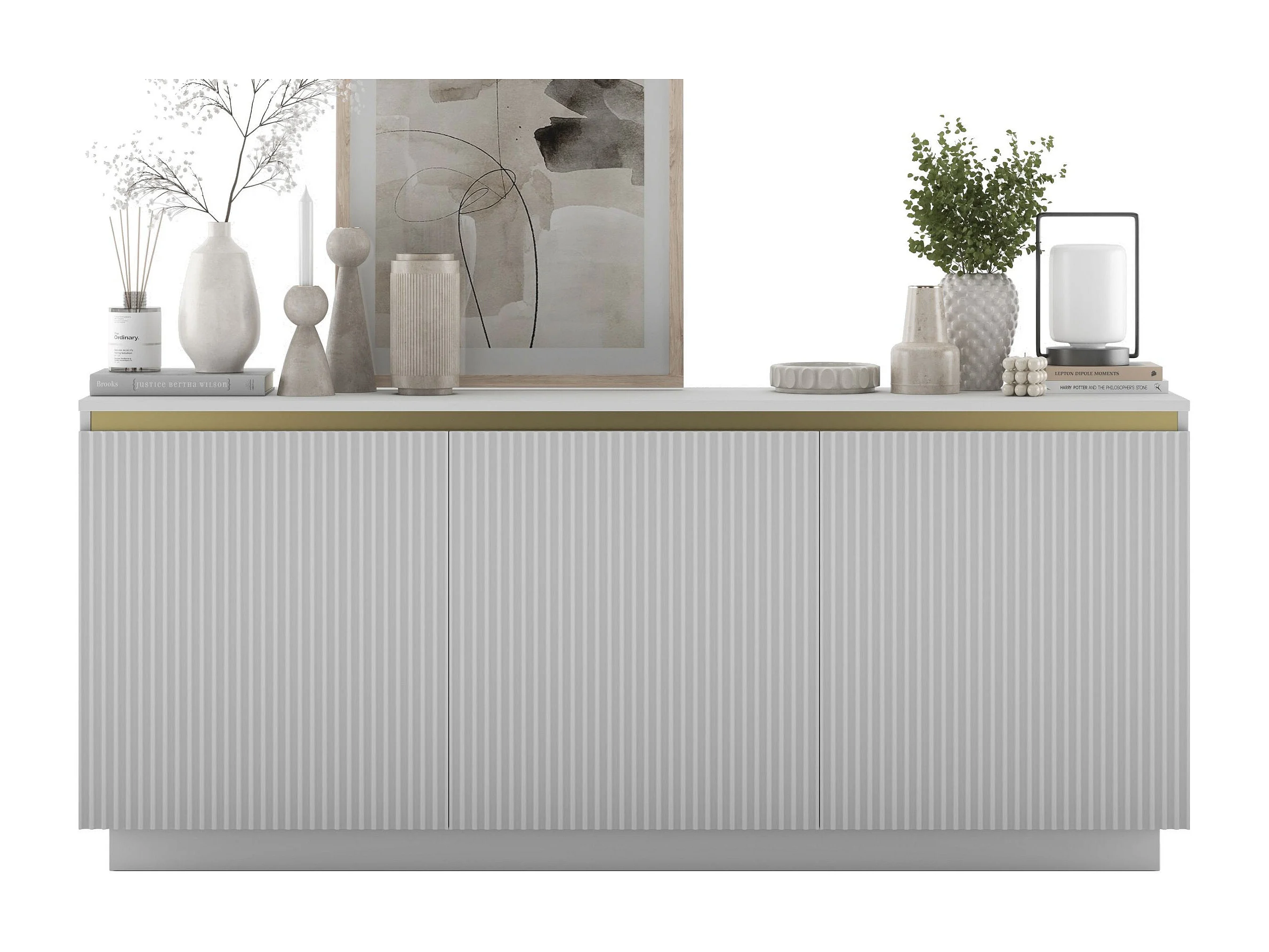 Commode à 3 portes – corps blanc mat, façades rainurées blanc mat – 166.8 cm, sur socle