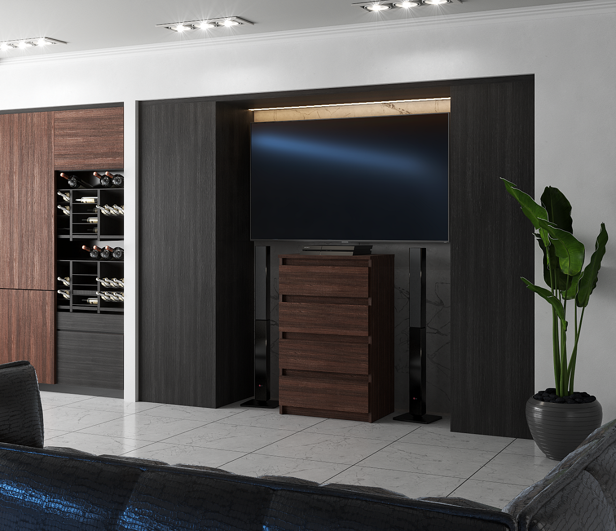 Commode à 4 tiroirs Chêne Wengé 60 CM Meuble TV – Meubles pour salon et chambre