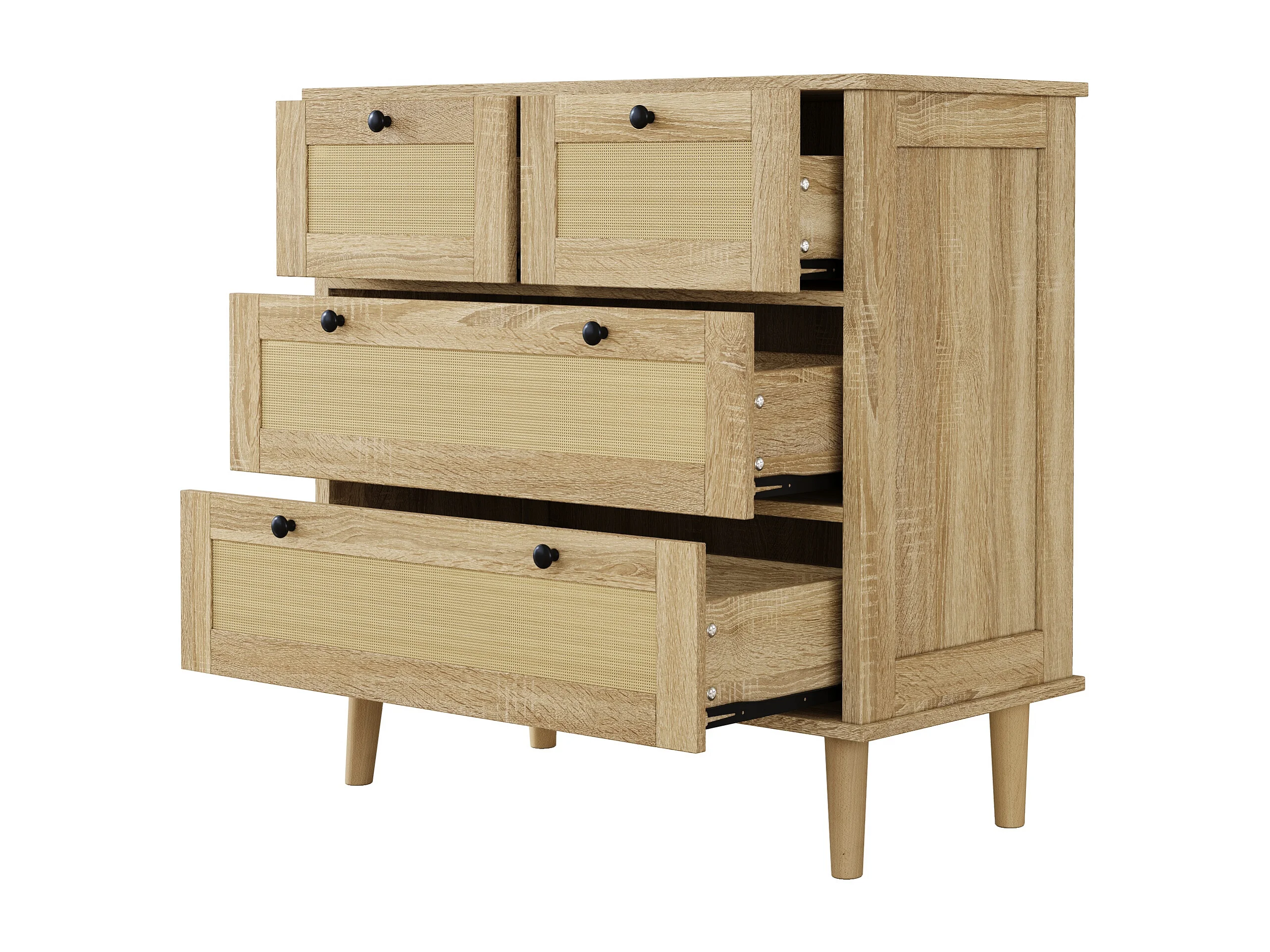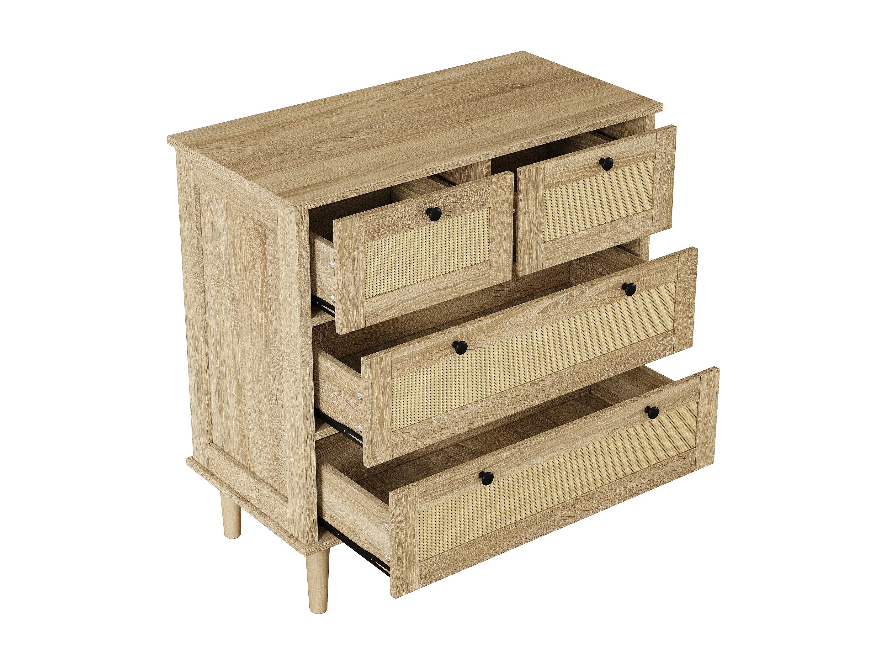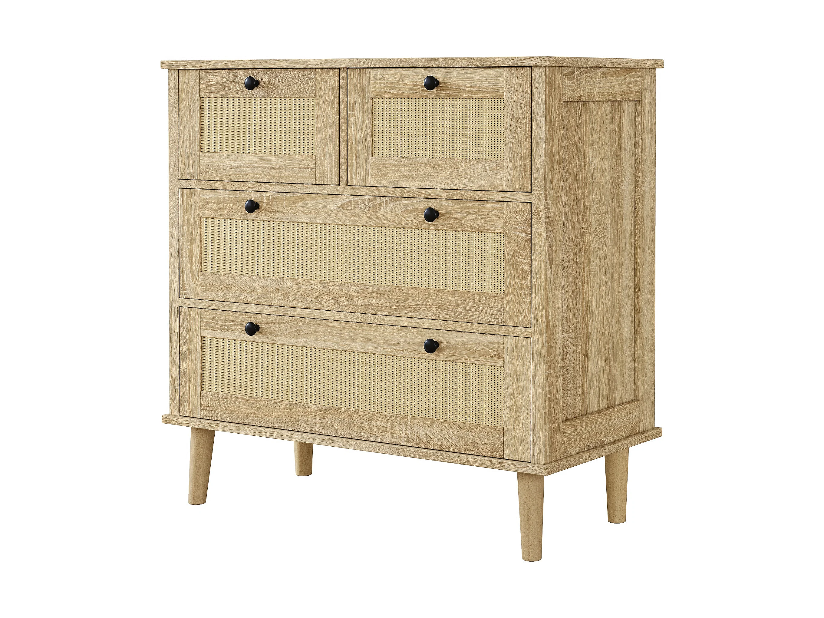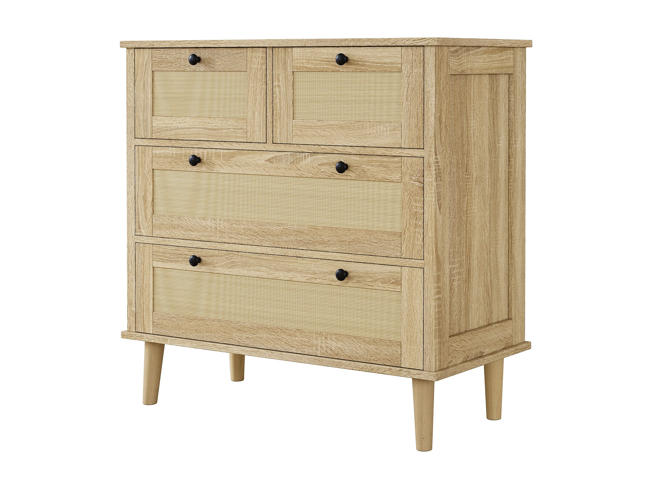 Commode à 4 tiroirs en rotin - Pieds en bois - Couleur bois
