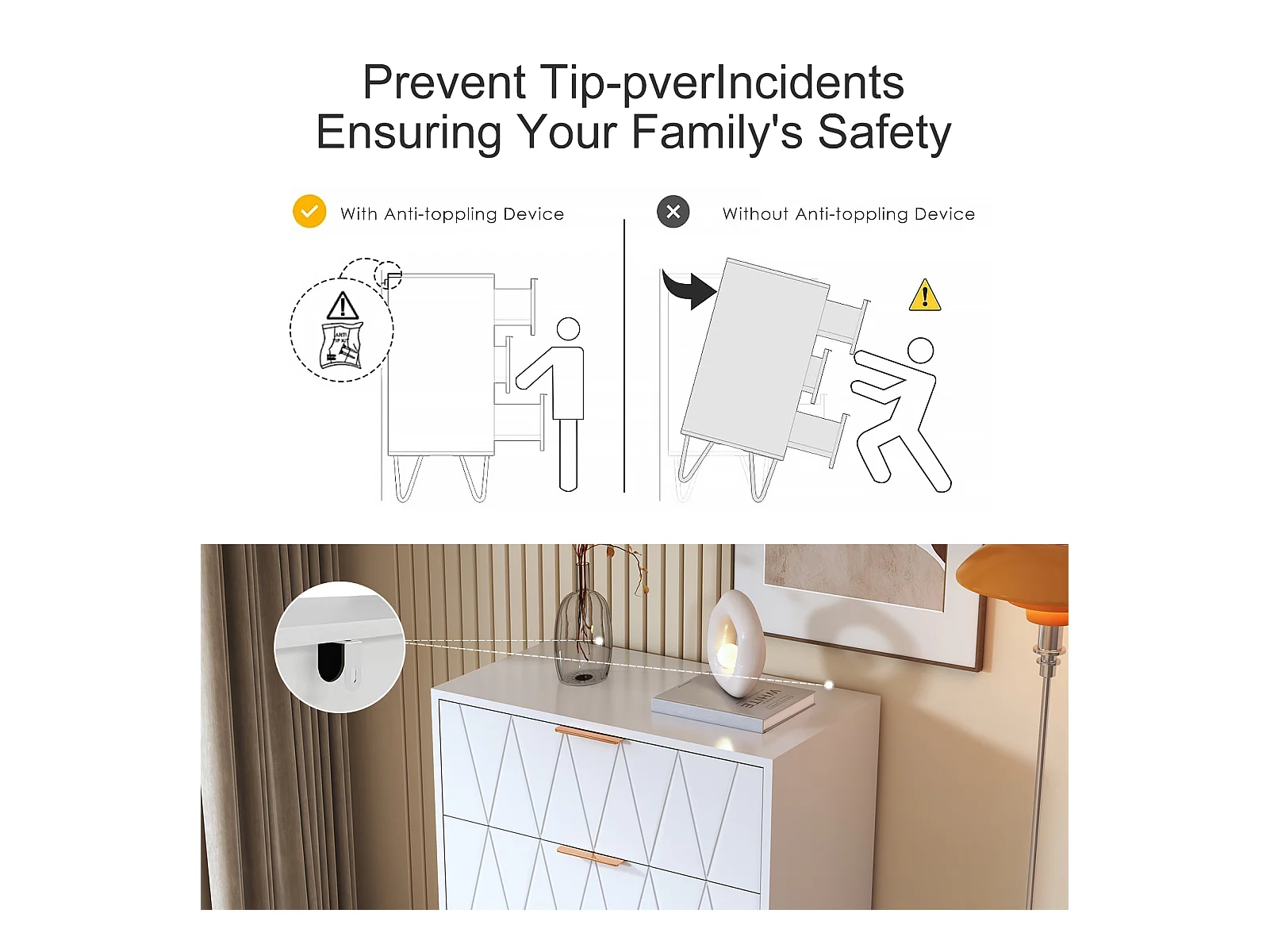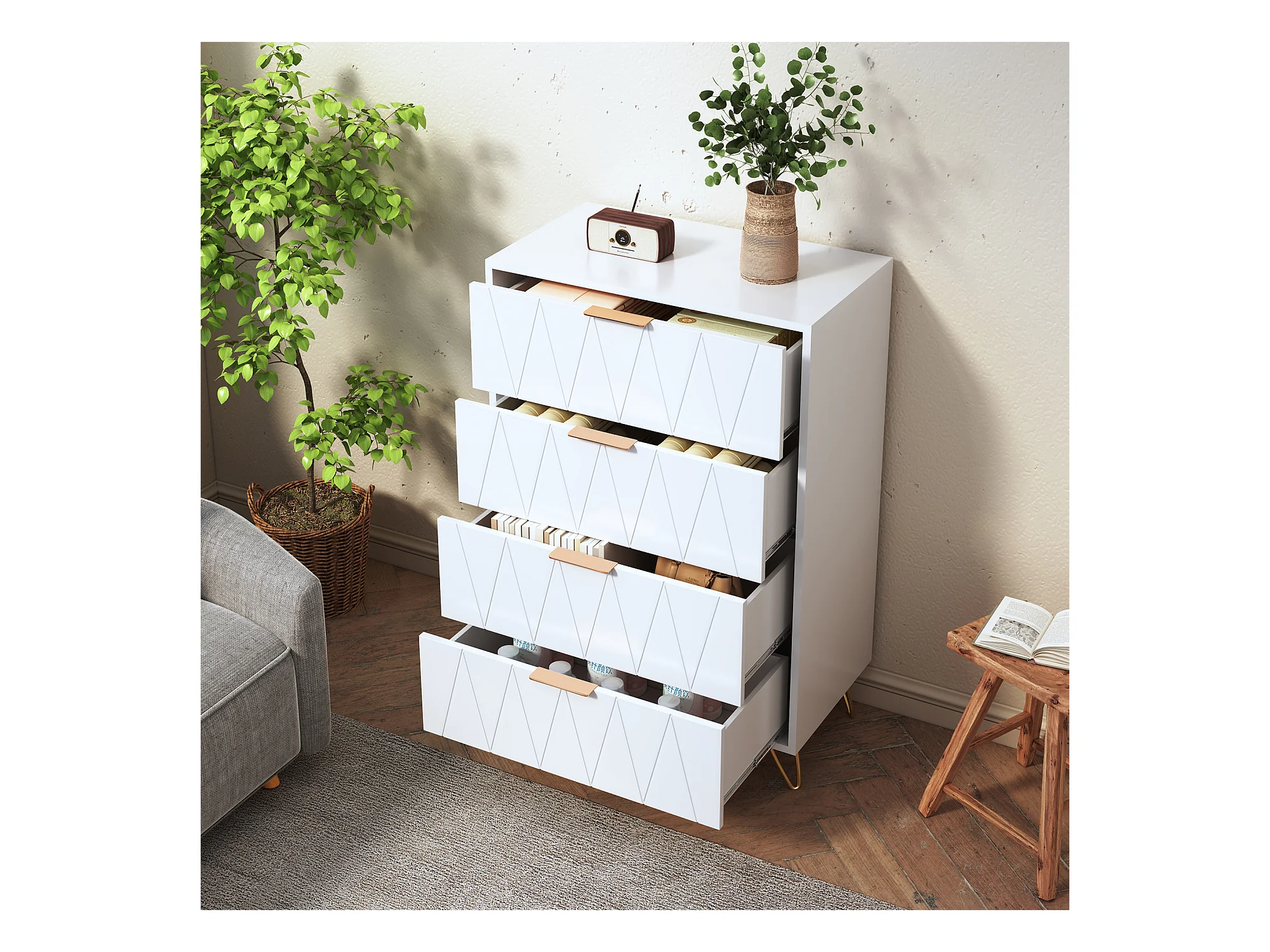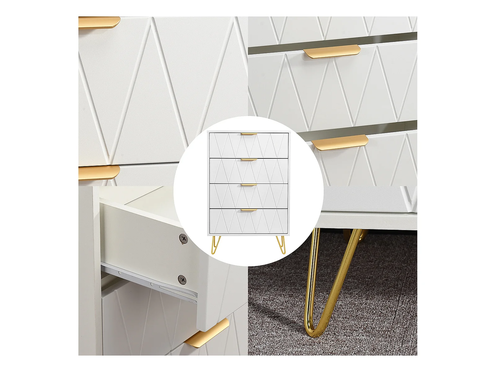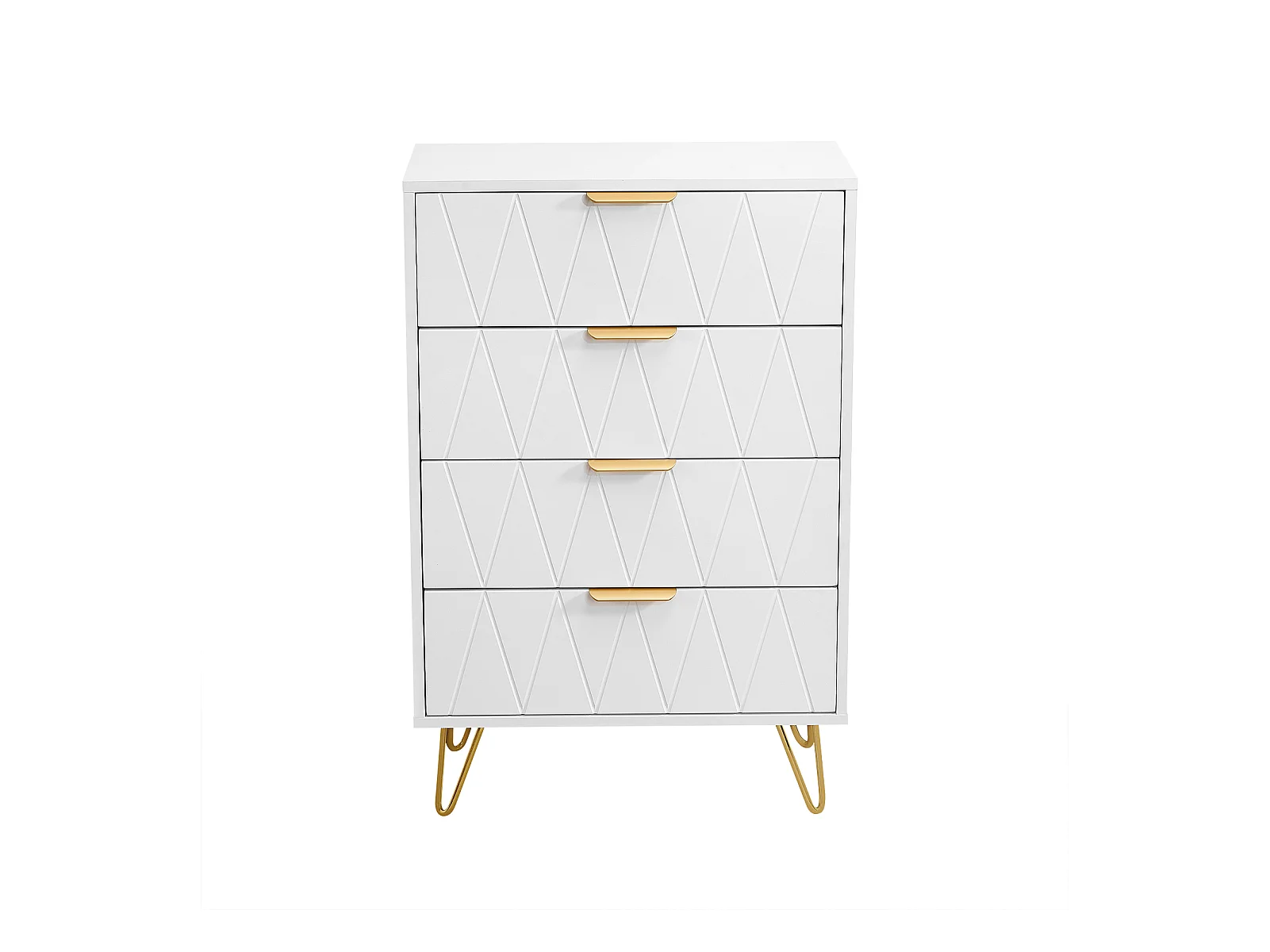 Commode à 4 tiroirs, Meuble de Rangement avec Pieds et Poignées en Métal Doré, Moderne, pour couloir, cuisine, Blanc