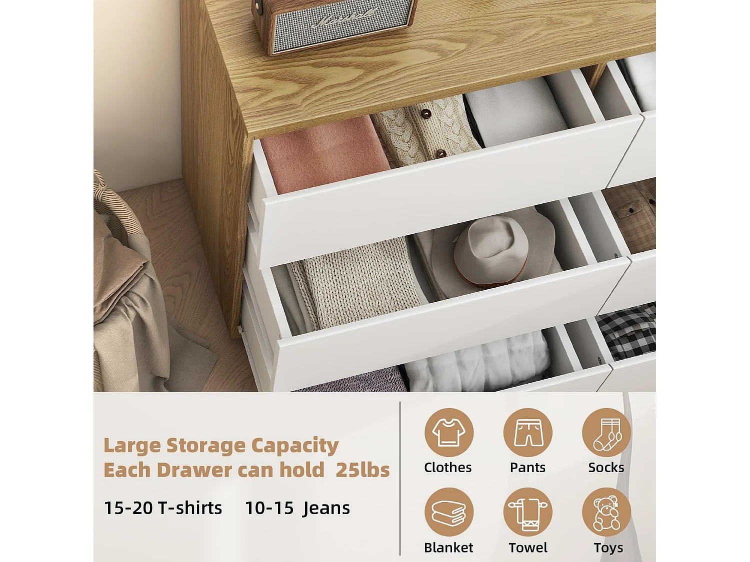 Commode à 6 Tiroirs Style Moderne Commode à 6 Tiroirs de Rangement pour Chambre à Coucher, Salon 75H x 110L x 40D cm Bois