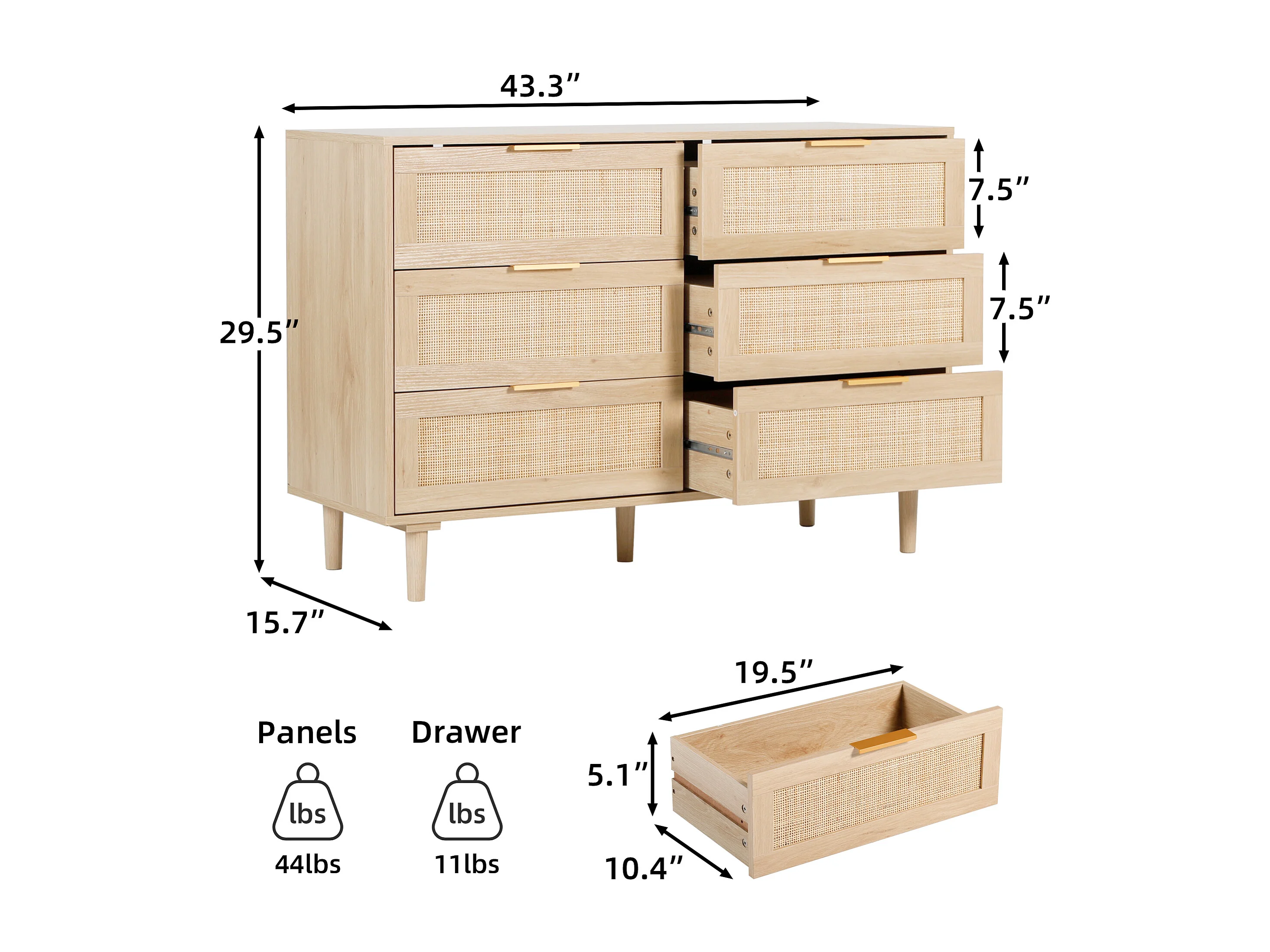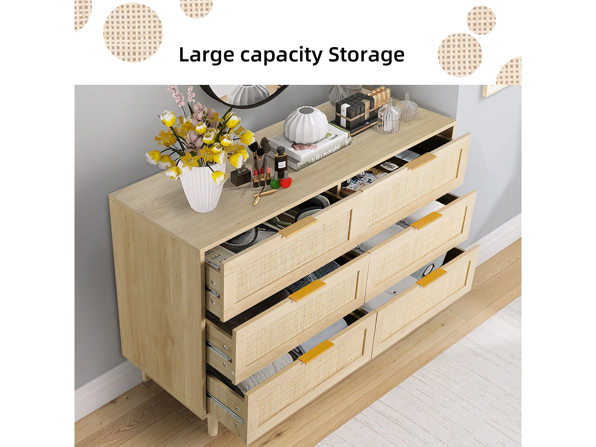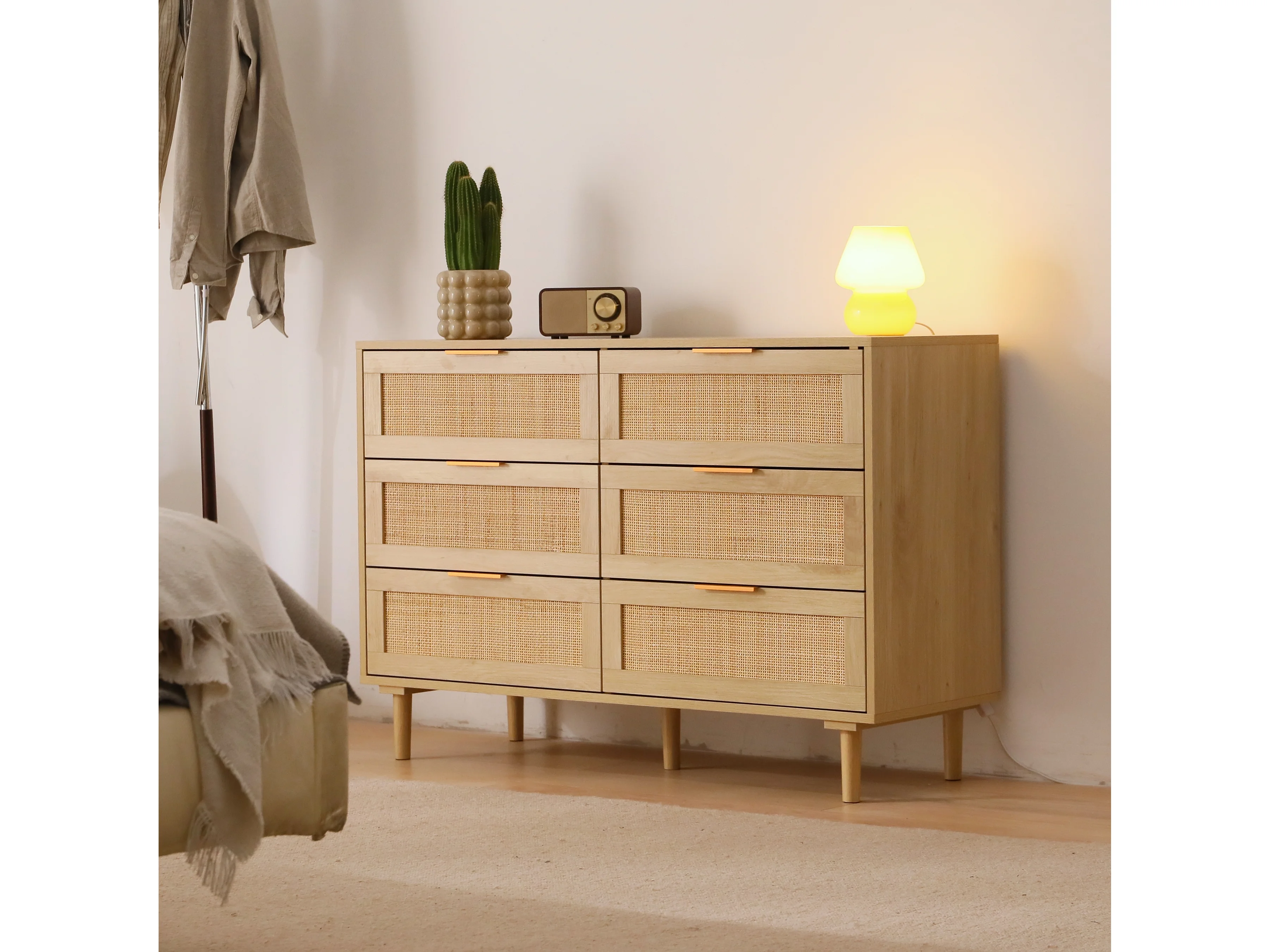 Commode à 6 Tiroirs Style Moderne Commode à 6 Tiroirs de Rangement pour Chambre à Coucher, Salon 75H x 110L x 40D cm Rotin
