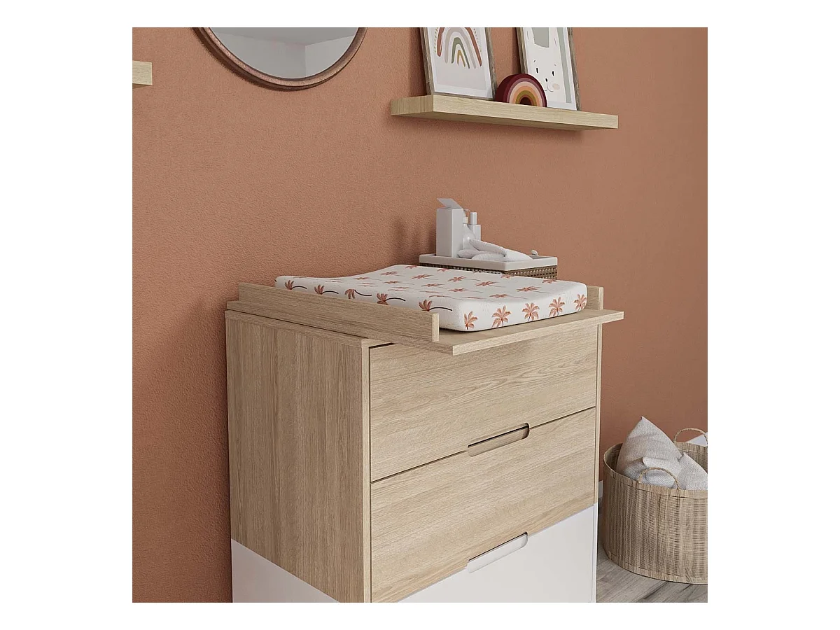 Commode à langer 3 tiroirs panneaux de fibres blanc et bois DIXIE