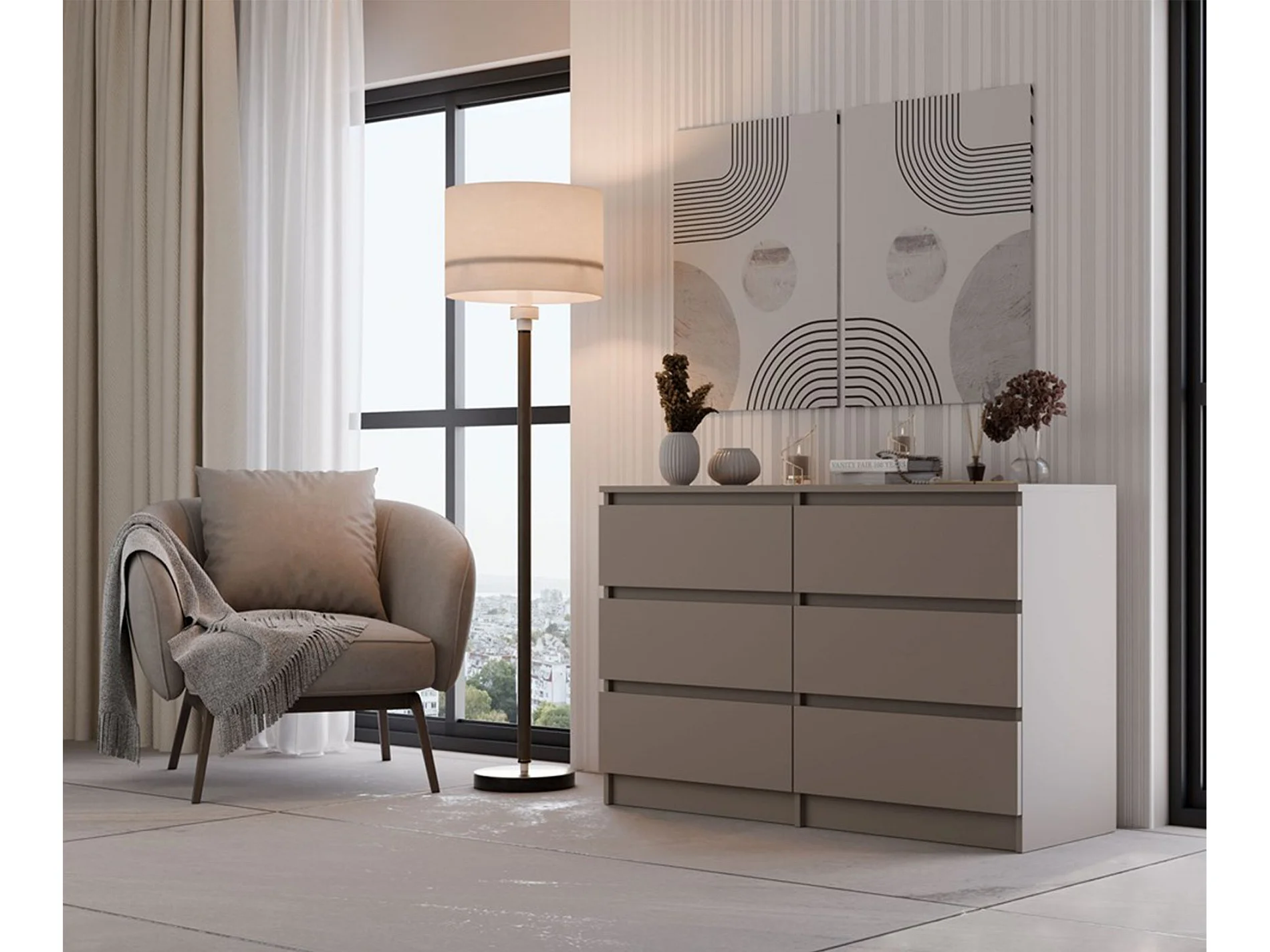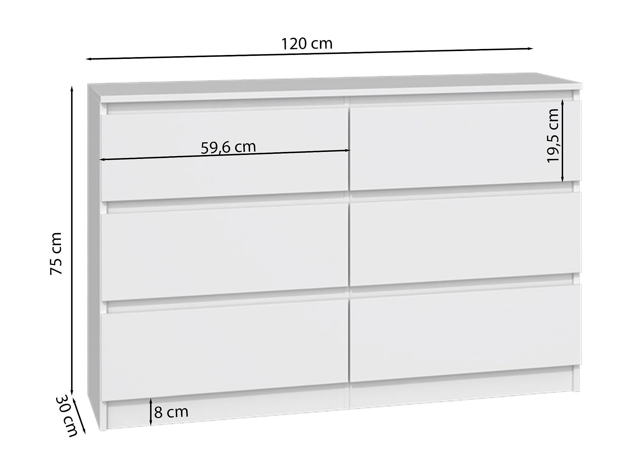 Commode à six tiroirs - 120 cm - gris - MALWA