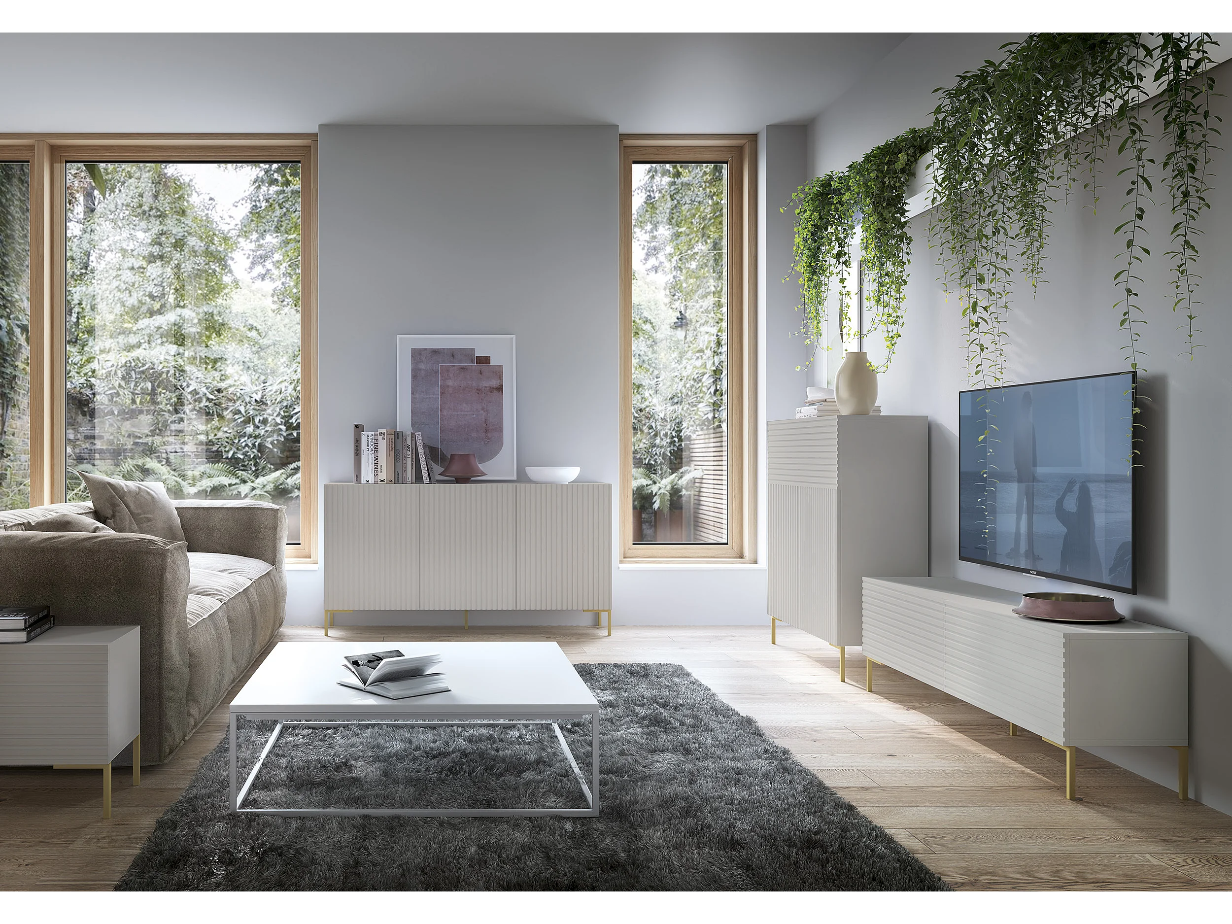 Commode à trois portes - 140 cm - taupe (gris-beige) -LAMMELO