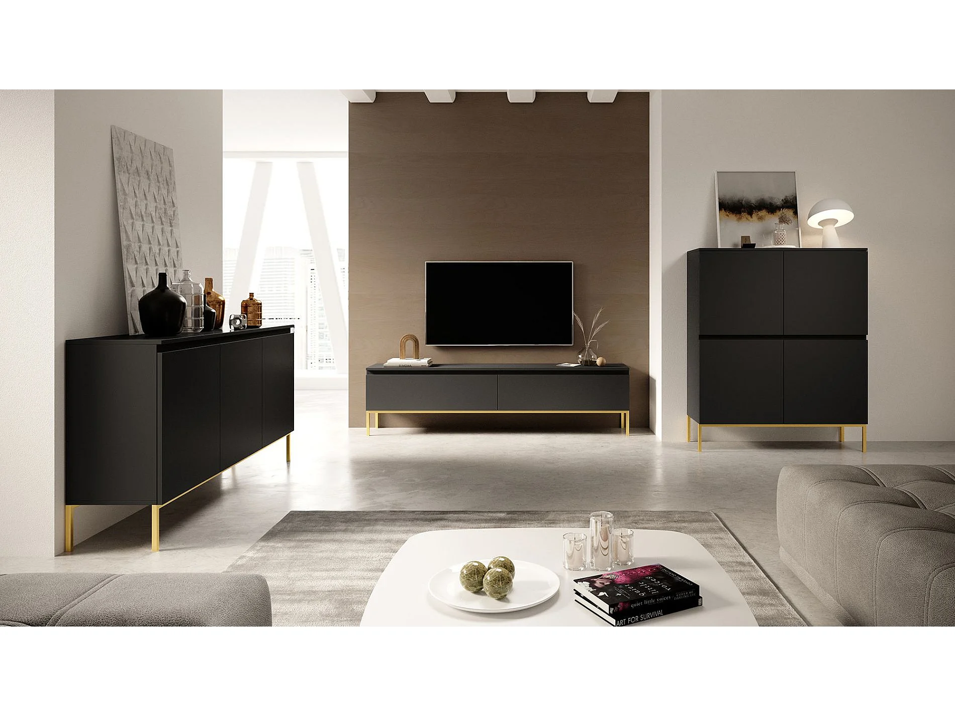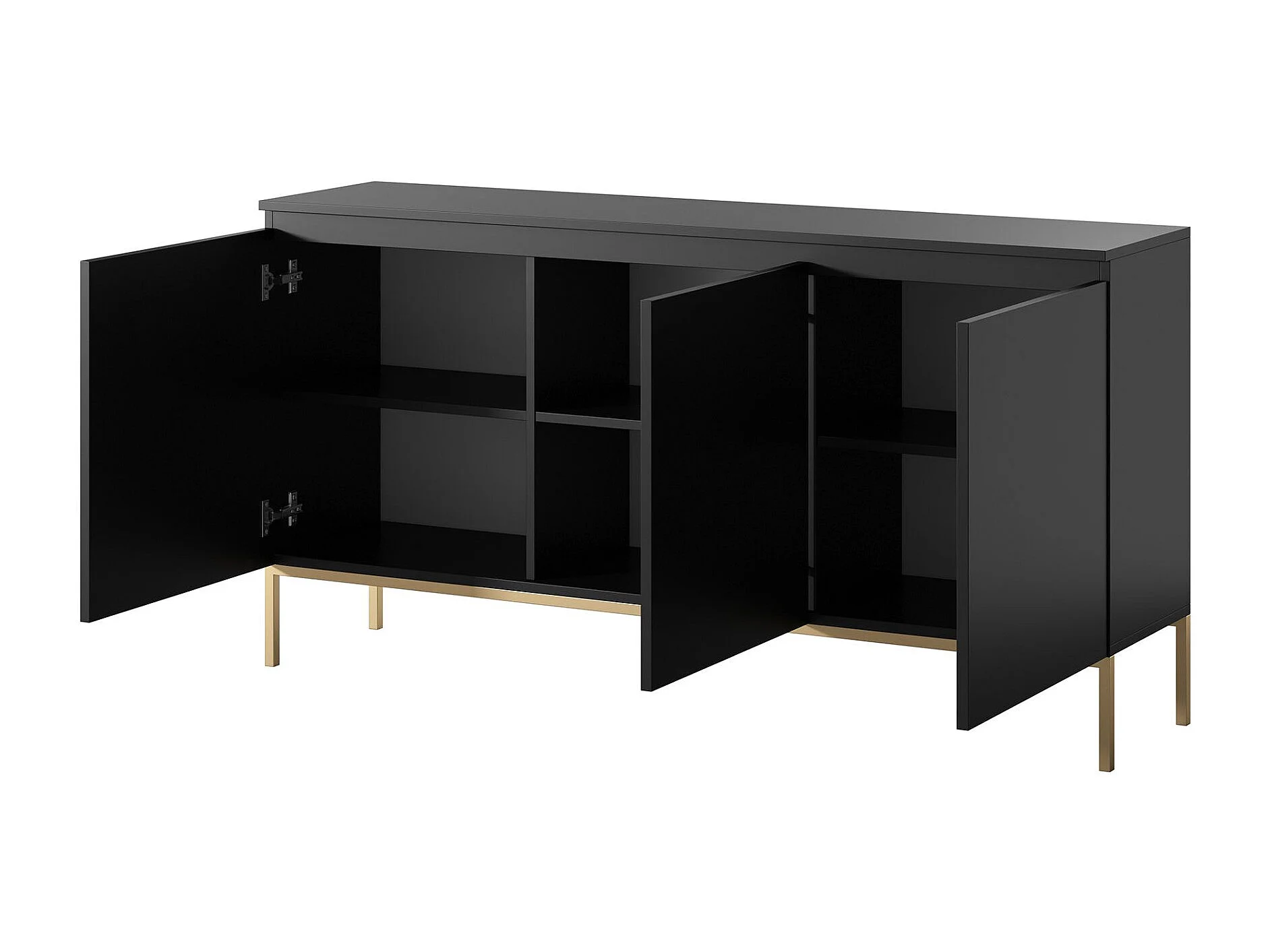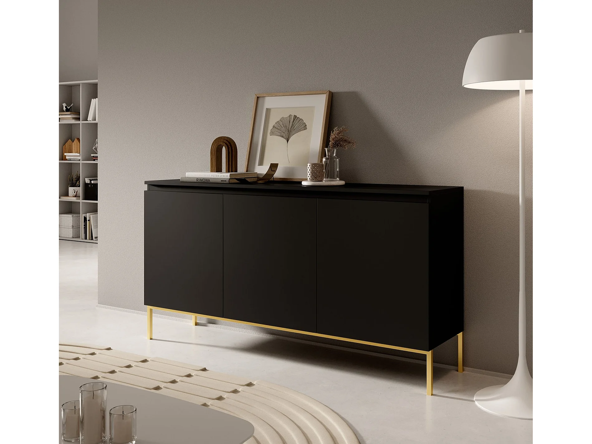 Commode à trois portes 150 cm – noir, pieds dorés – BEMMI