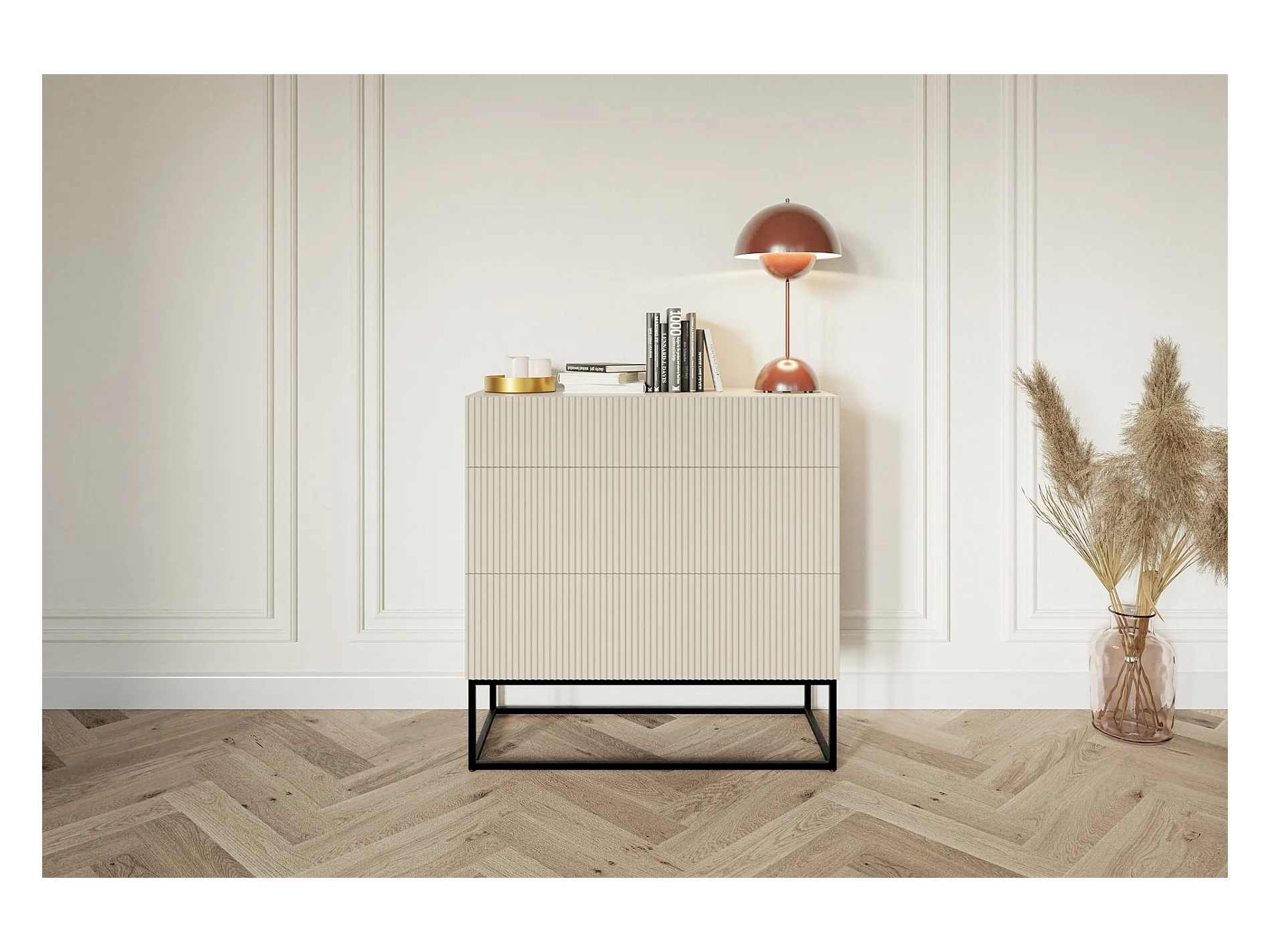 Commode 3 tiroirs - 90 cm - grège avec pieds noirs - VELDIO