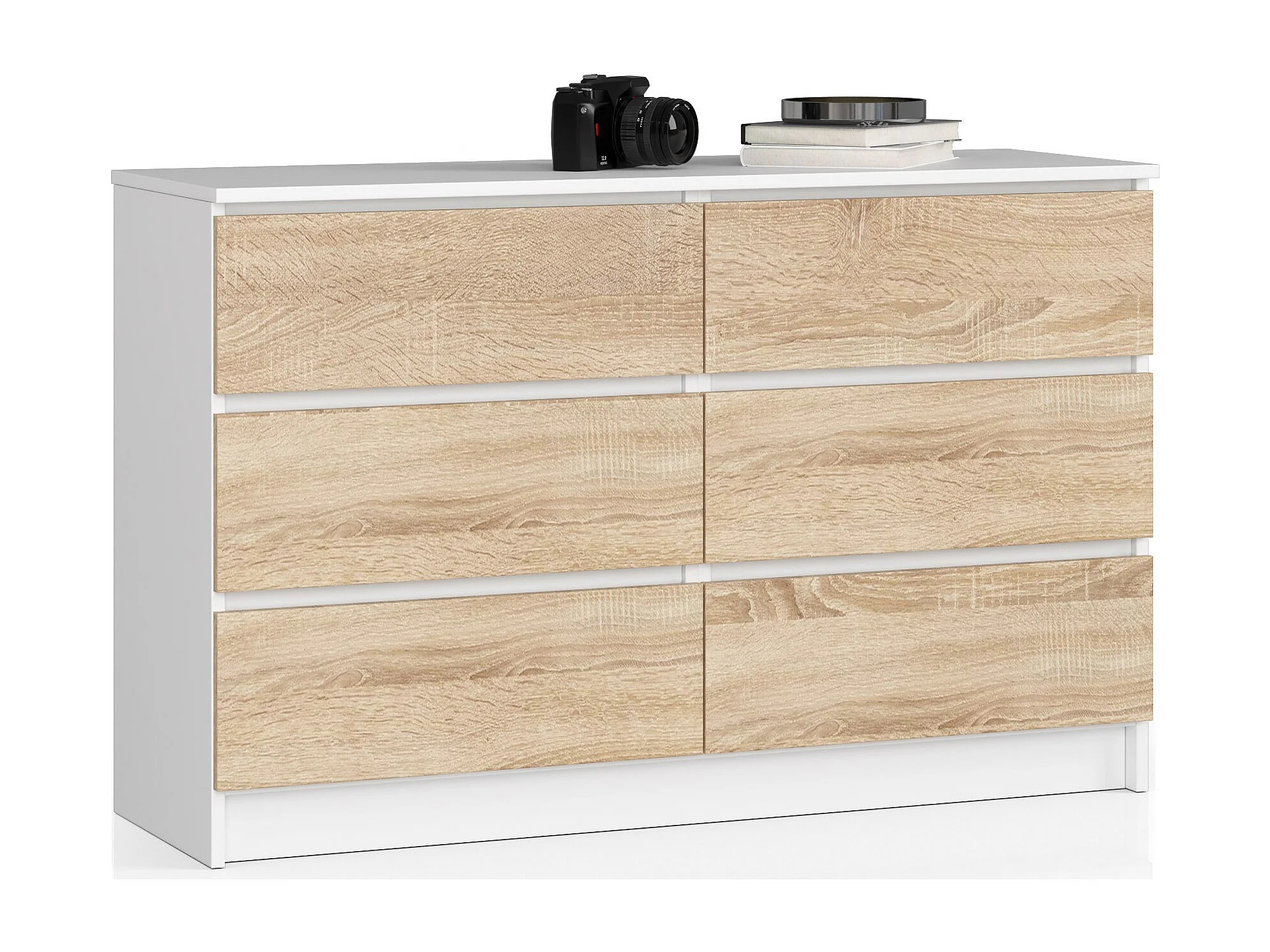 Commode AKORD K120 Blanche 120 cm 6 tiroirs façade Chêne Sonoma 120x40x77 cm