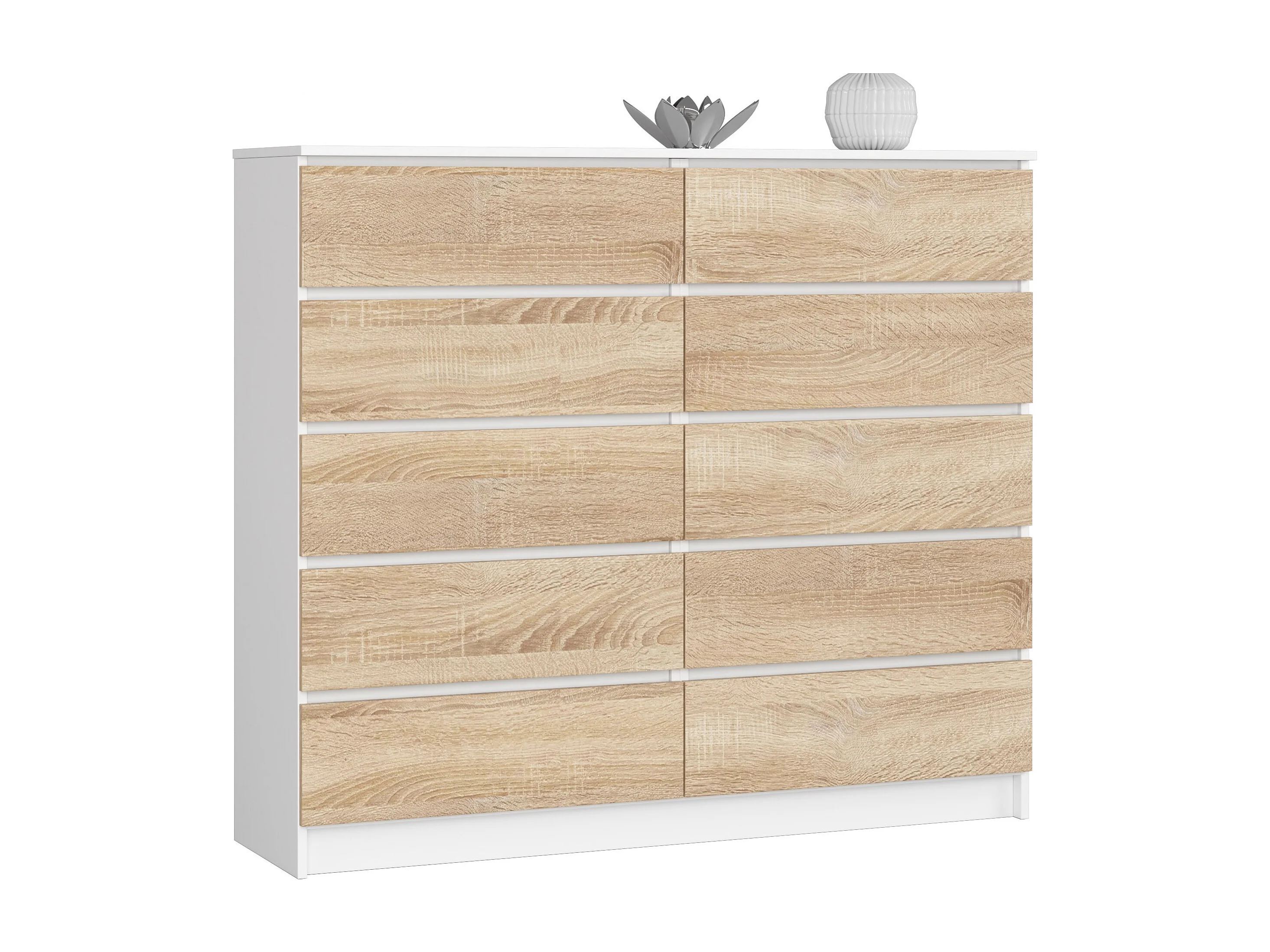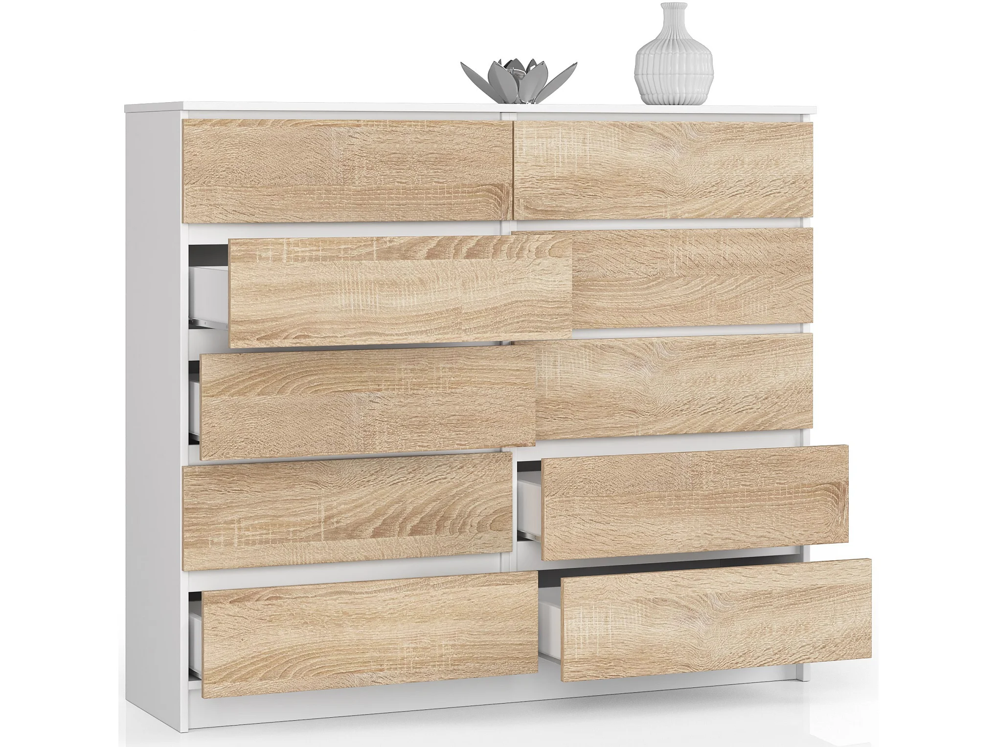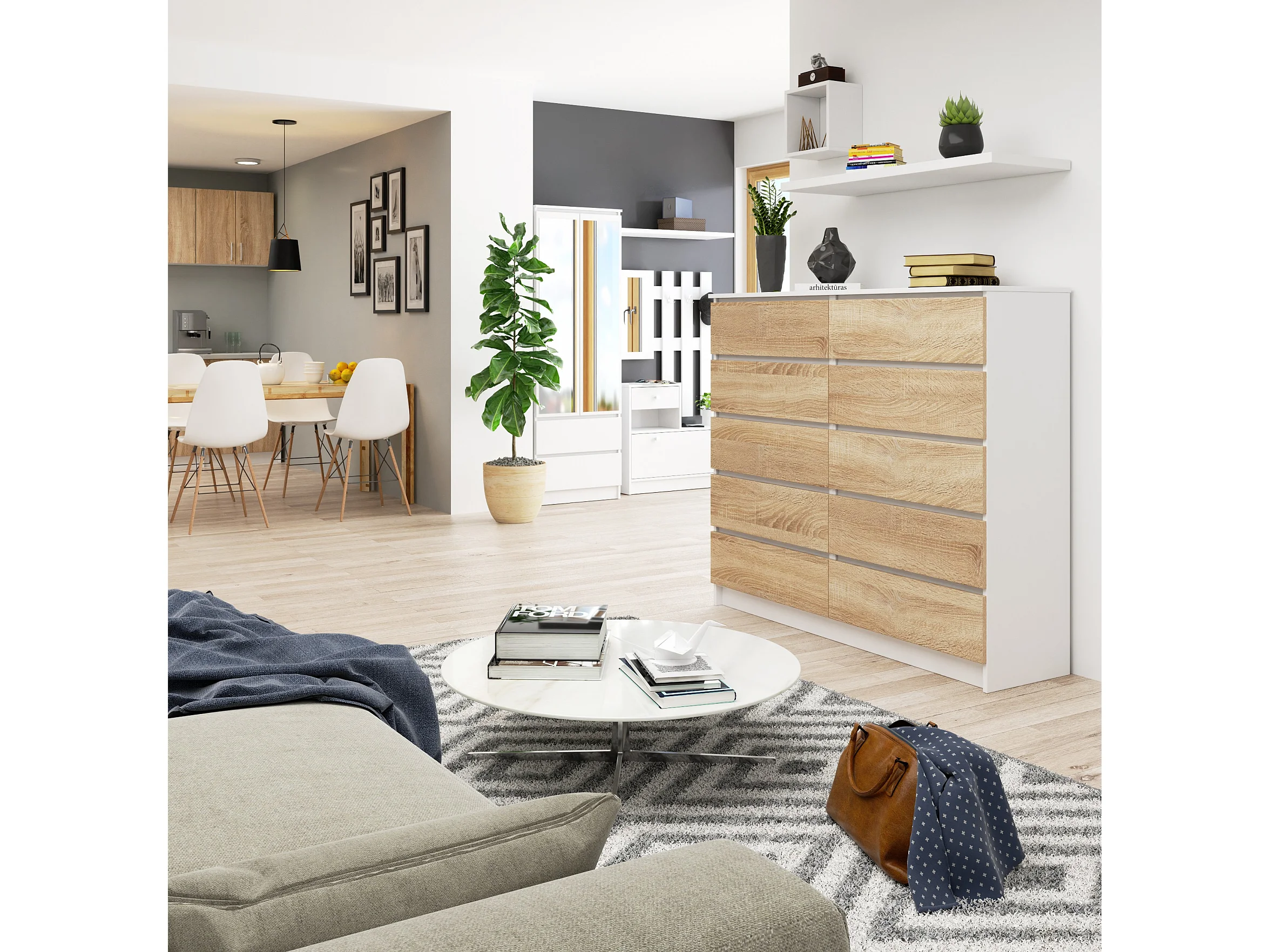 Commode AKORD K140 Blanche 138 cm 10 tiroirs façade Chêne Sonoma 138x40x121 cm