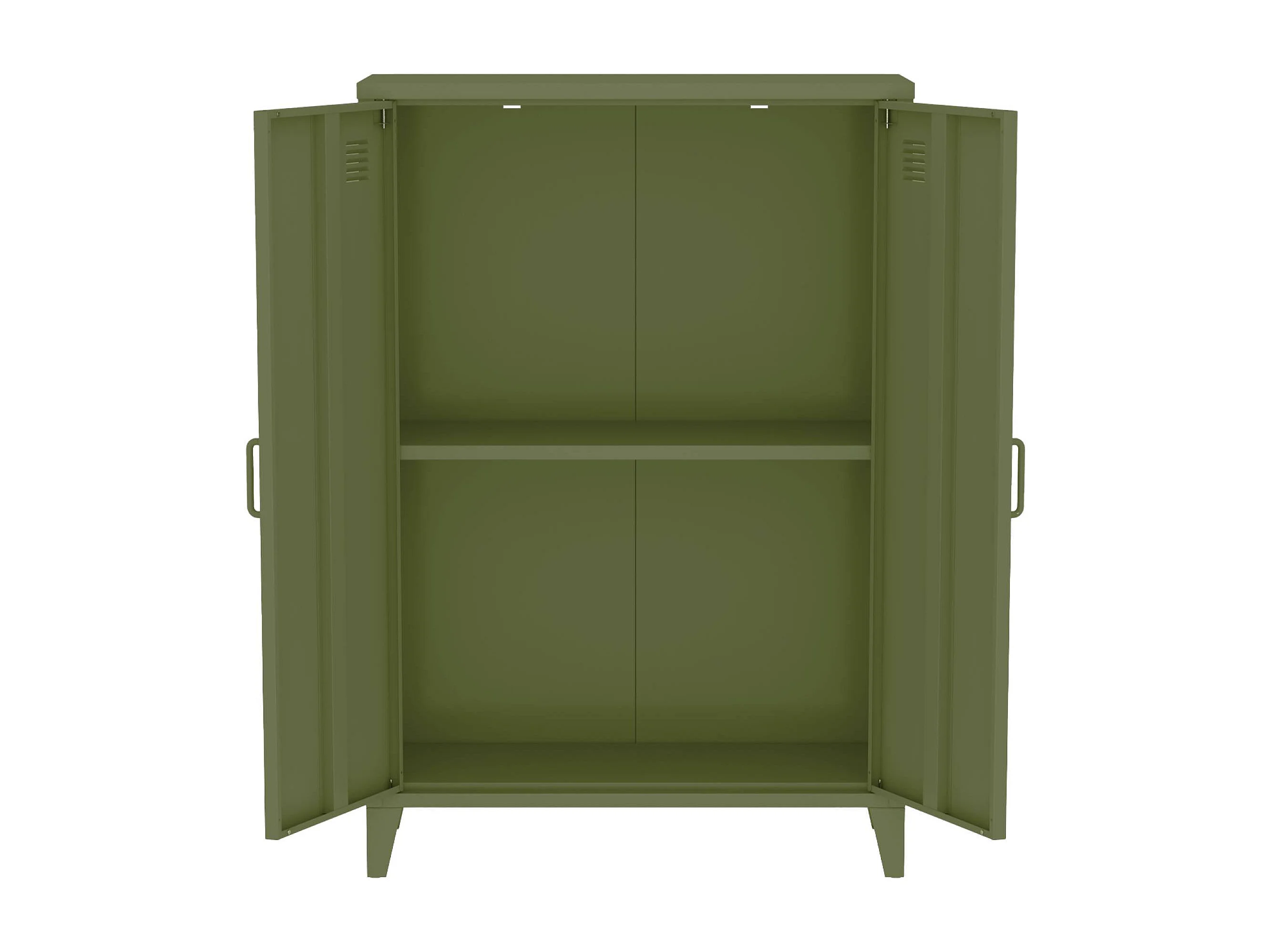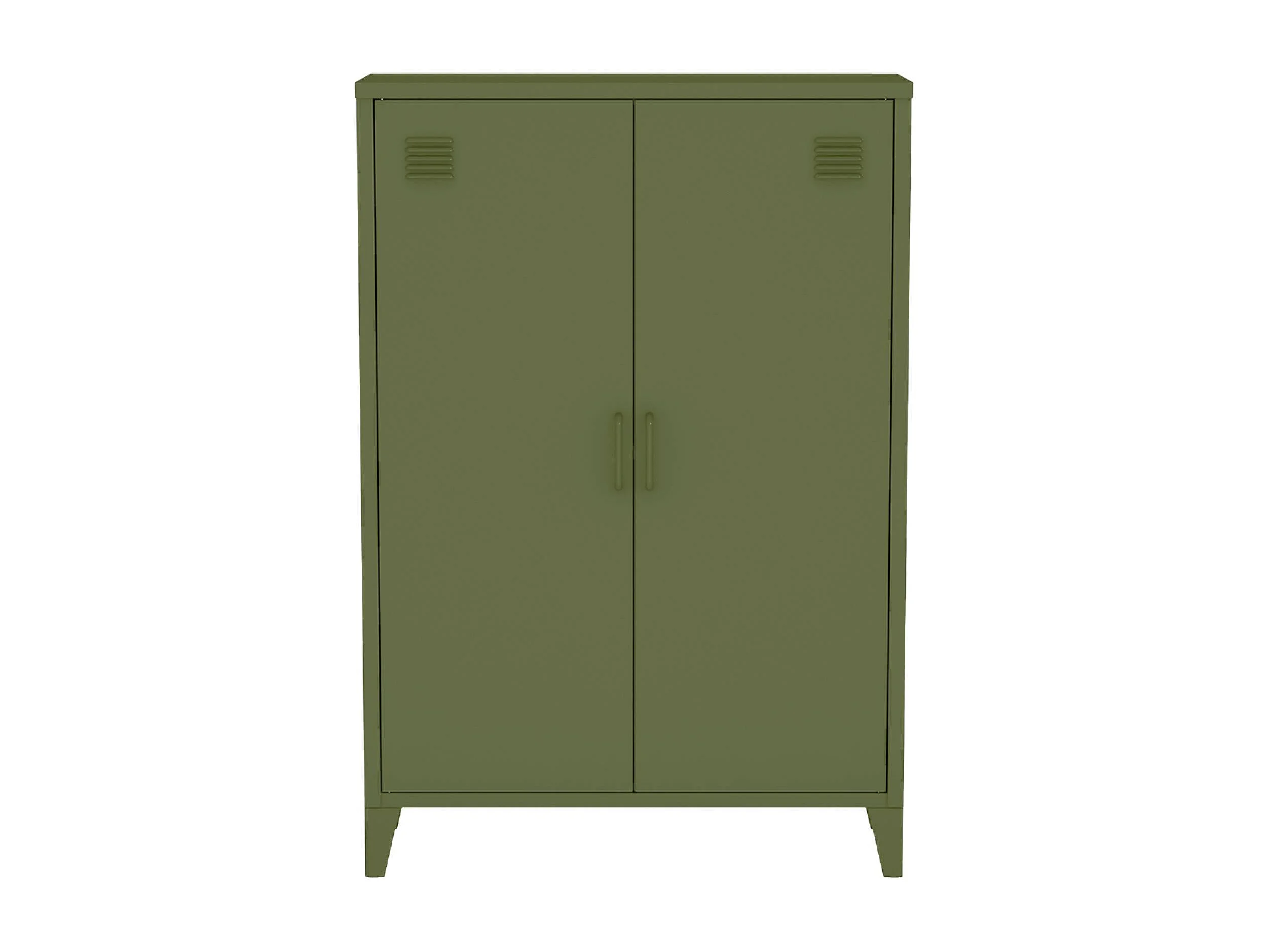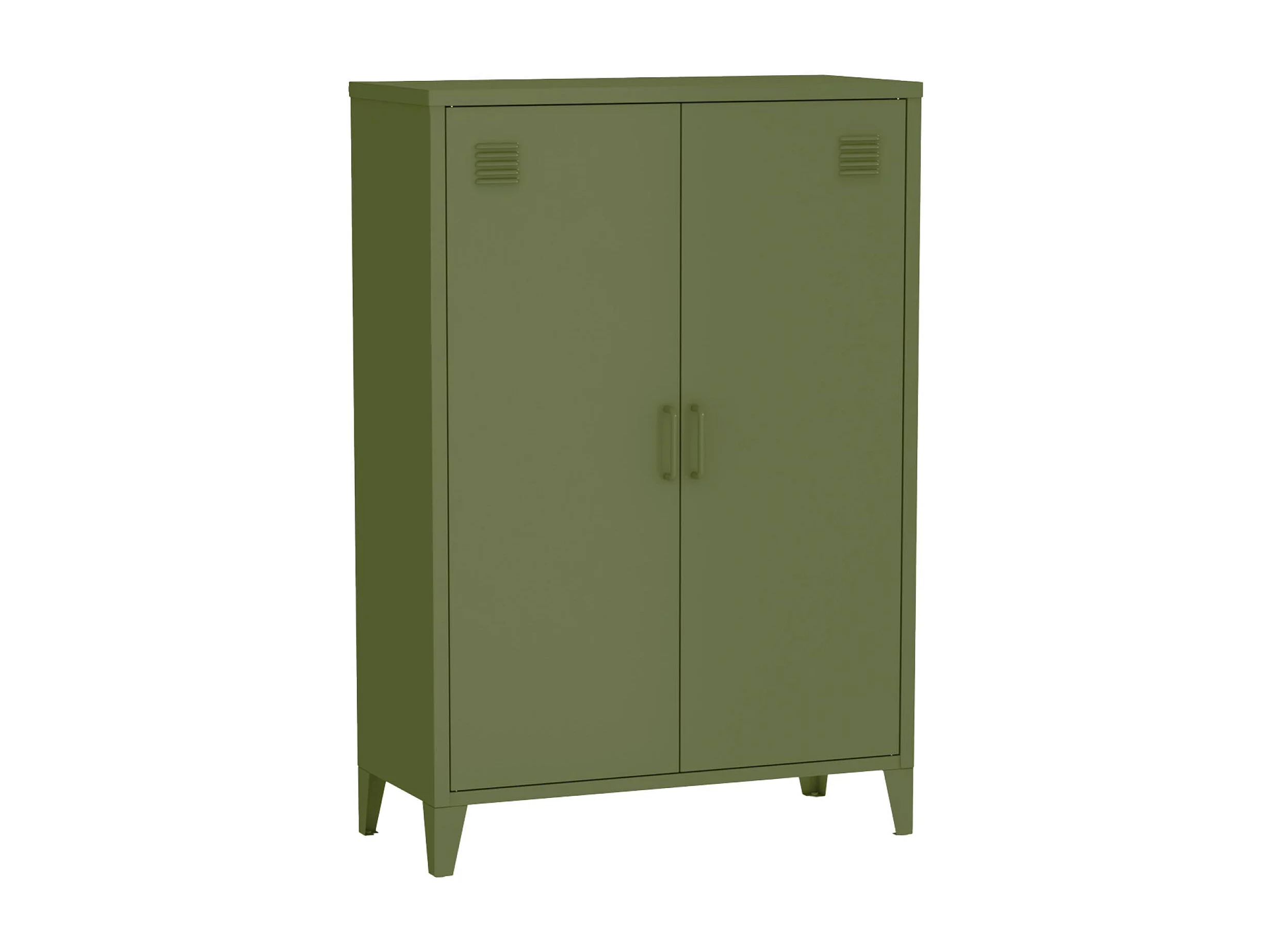 Commode/armoire en métal kaki. 2 espaces de rangement. casiers